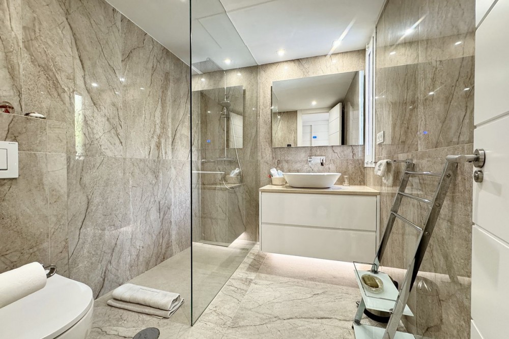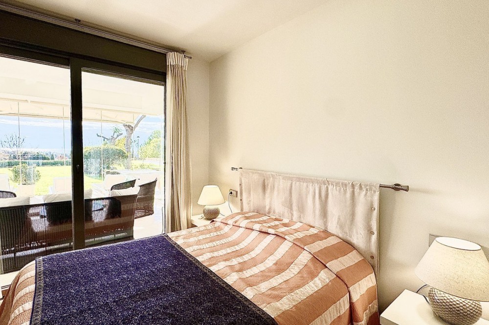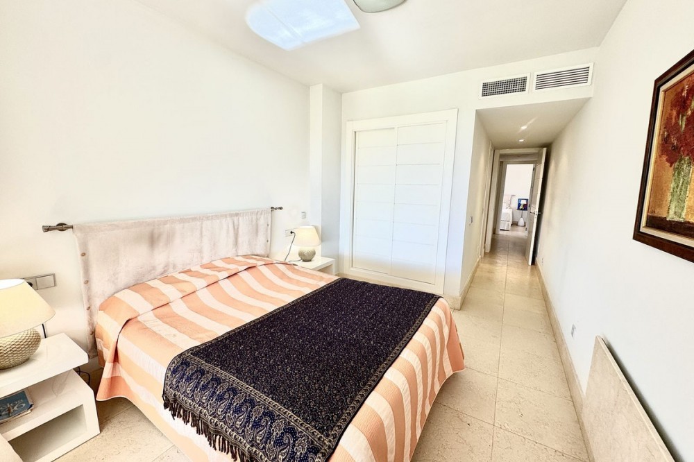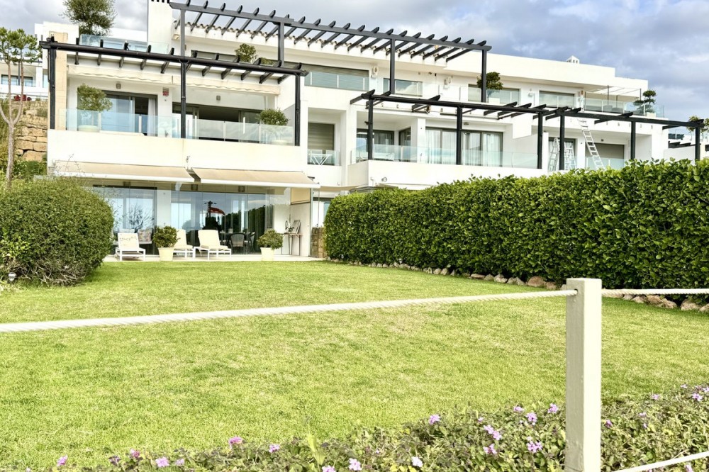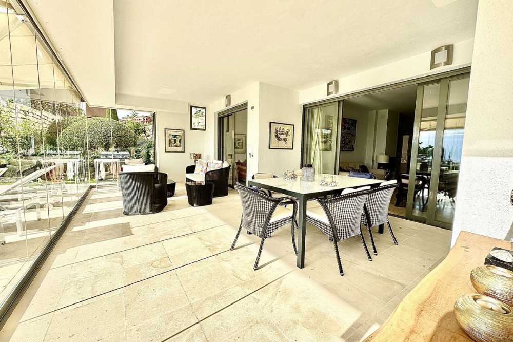 - Beautiful 2-bedroom, 2-bathroom Ground-Floor Corner apartment, fully renovated, located in the exclusive Tee 6 community within the prestigious Villa Padierna – Los Flamingos Golf Resort. The property features a new open-plan kitchen and refurbished bathrooms with high-quality finishes, offering a modern and sophisticated atmosphere. Large windows with electric shutters and glass curtains on the terrace ensure bright, comfortable spaces all year round. The apartment enjoys lovely sea views and direct access to a spacious private garden, ideal for relaxing or entertaining guests. Its frontline golf position provides tranquillity and an exceptional lifestyle surrounded by nature. The community offers a large heated swimming pool, perfect for enjoying at any time of the year. Additional features: Air conditioning (hot/cold) and elegant marble infrared heating panels mounted on the wall One parking space An additional garage space for a golf buggy One storage