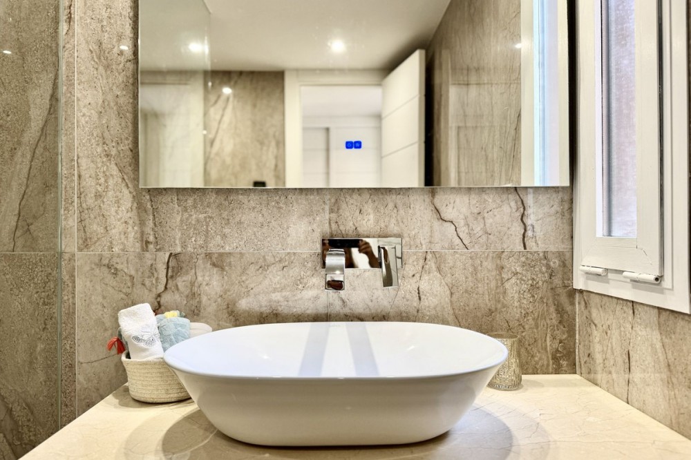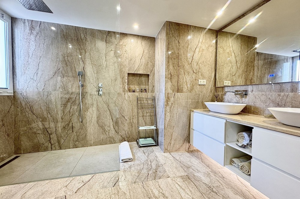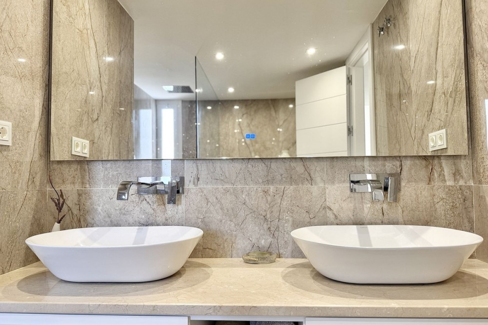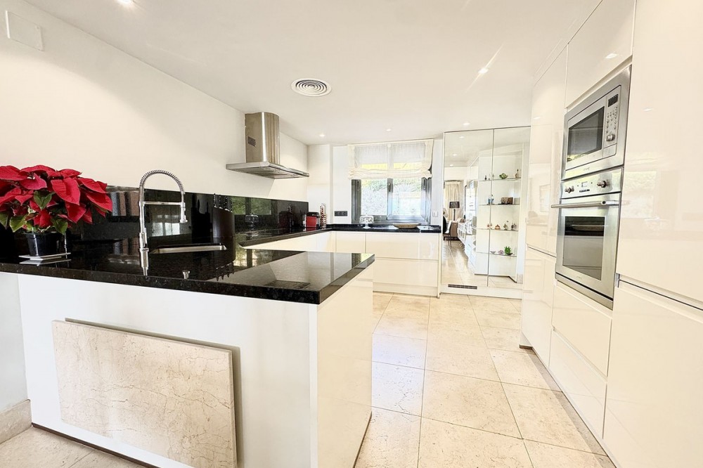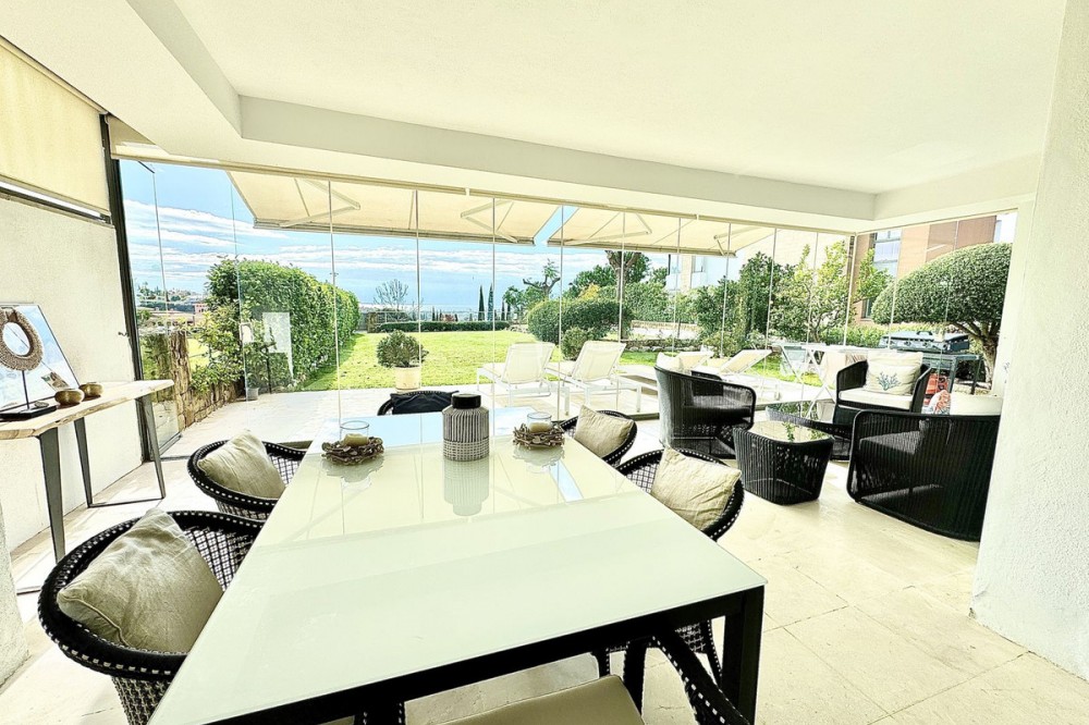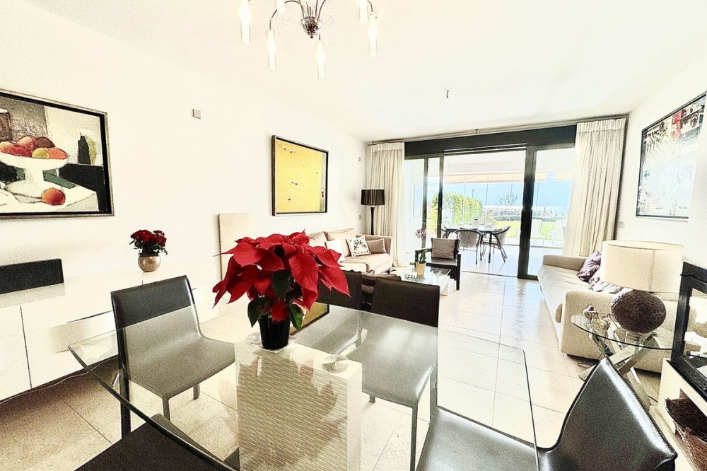 - Beautiful 2-bedroom, 2-bathroom Ground-Floor Corner apartment, fully renovated, located in the exclusive Tee 6 community within the prestigious Villa Padierna – Los Flamingos Golf Resort. The property features a new open-plan kitchen and refurbished bathrooms with high-quality finishes, offering a modern and sophisticated atmosphere. Large windows with electric shutters and glass curtains on the terrace ensure bright, comfortable spaces all year round. The apartment enjoys lovely sea views and direct access to a spacious private garden, ideal for relaxing or entertaining guests. Its frontline golf position provides tranquillity and an exceptional lifestyle surrounded by nature. The community offers a large heated swimming pool, perfect for enjoying at any time of the year. Additional features: Air conditioning (hot/cold) and elegant marble infrared heating panels mounted on the wall One parking space An additional garage space for a golf buggy One storage