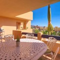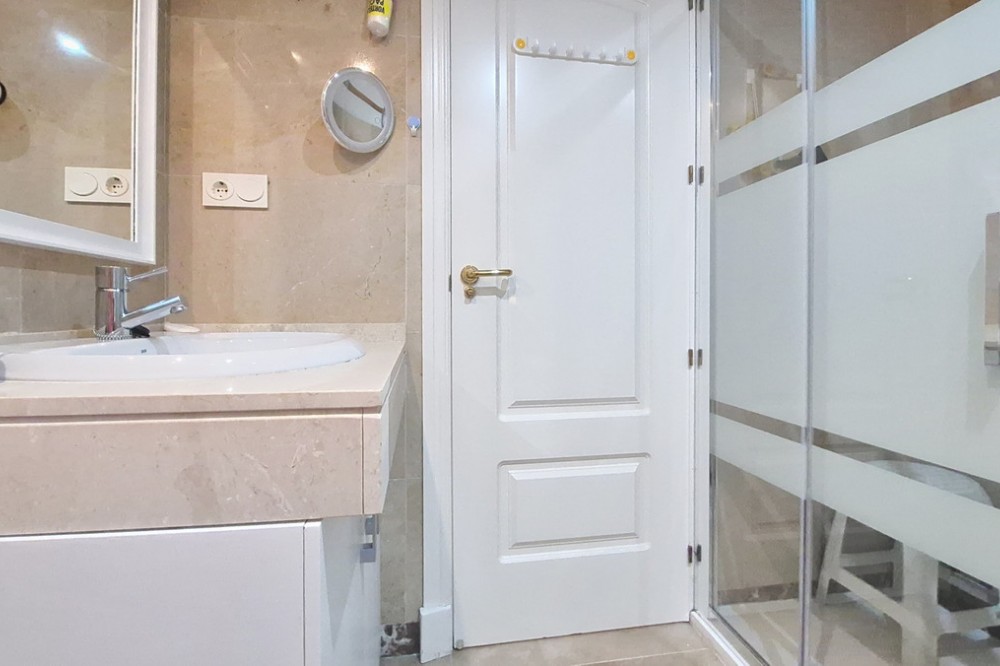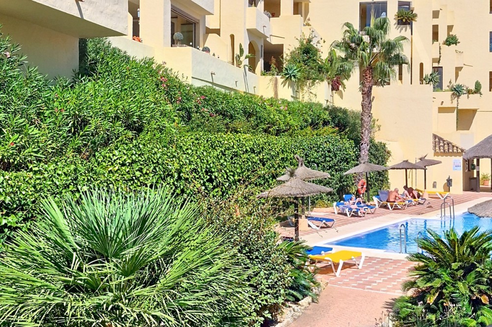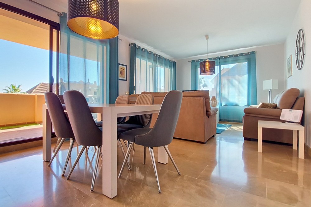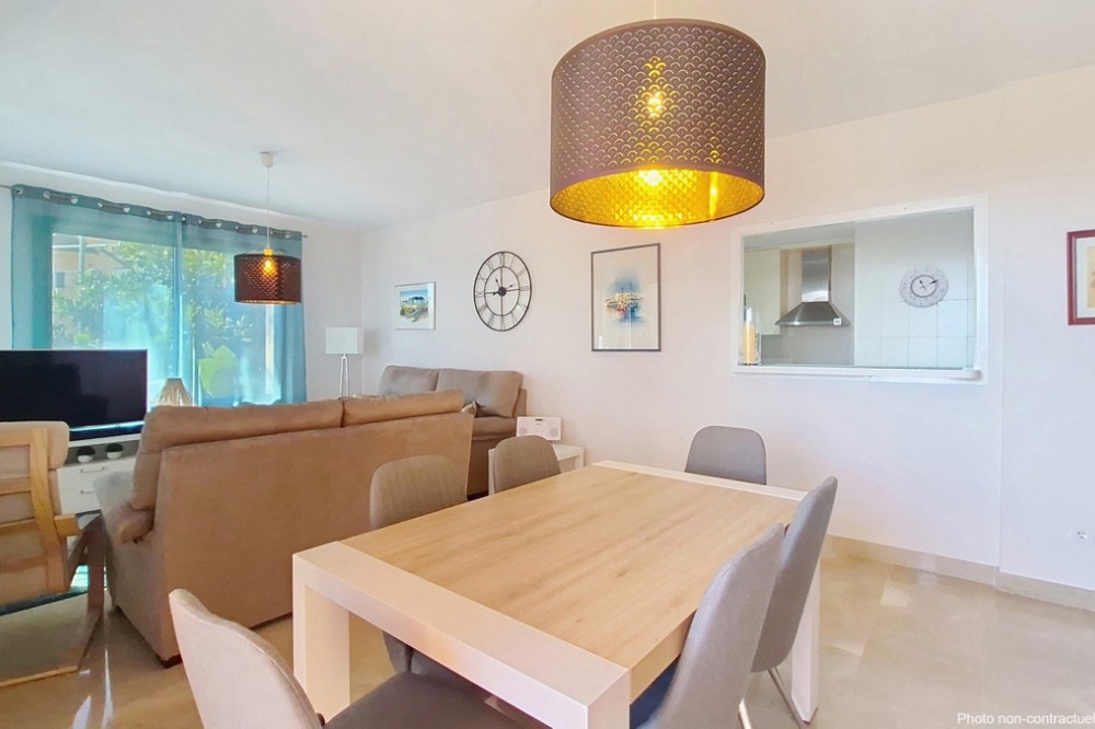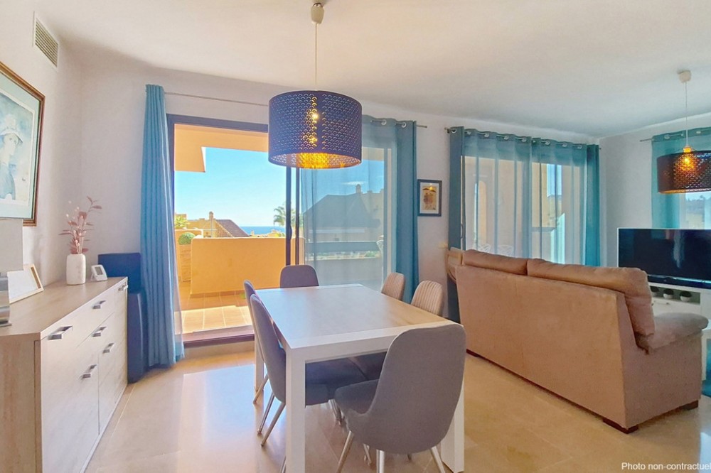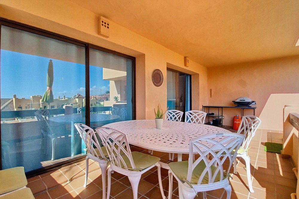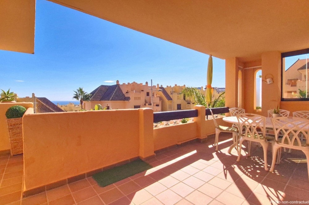 - Located in a prestigious residential area close to the Duquesa marina, this apartment offers beautiful views of the sea and the golf course. It is a very bright first floor with an ideal layout. Its 50-square-metre terrace allows you to enjoy the outdoors all day long. It consists of three bedrooms, the master one being en-suite. The other two share the same bathroom and enjoy views of the green areas of the development. It also features a large fully-equipped kitchen, a laundry room and a spacious living room with sea views. A parking space and a large storage room are included in the price. The residential complex offers 24-hour security, five swimming pools, a children’s play area and paddle-tennis courts. With an ideal location for golf lovers, the beautiful beaches of La Duquesa are only a few minutes away from the property. The apartment is just a few kilometres from Estepona, Sotogrande, and 30 minutes from Gibraltar and Marbella. Amenities such as supermarkets, restaurants, schools and motorways are close by.