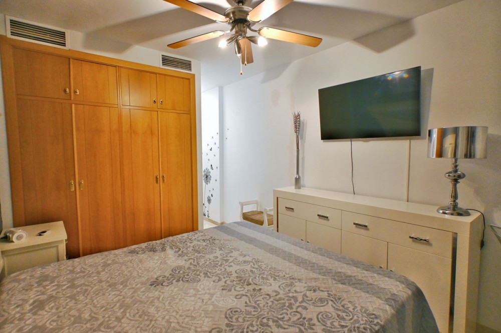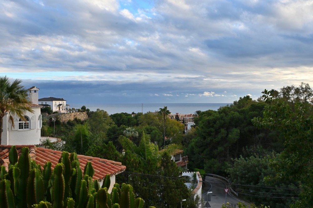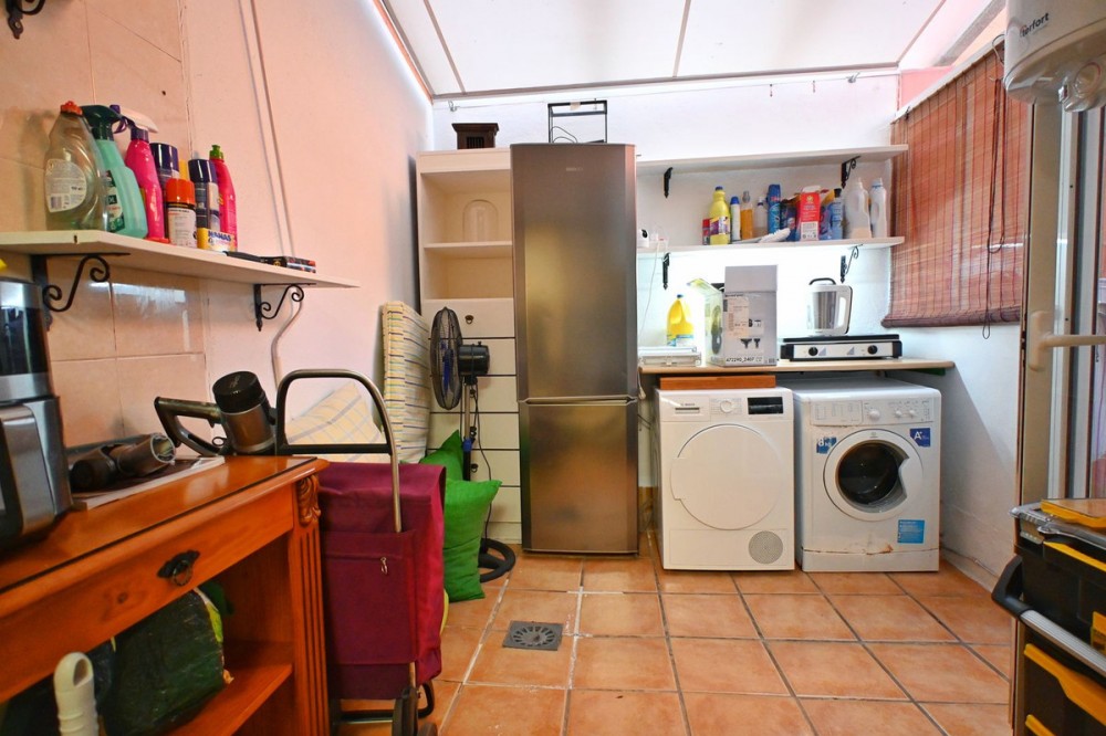 - Apartment for Sale in Torreblanca with Terrace and Sea Views Exclusive apartment located in Torreblanca, set on a first floor with the height of a second floor, offering enhanced privacy and natural light. A property that stands out for its spacious layout, excellent distribution, and sea views, in one of Fuengirola’s most sought-after residential areas. The apartment offers approximately 90 m² of living space, plus a separate laundry room of around 20 m² and an impressive 25 m² terrace, perfect for enjoying the afternoon sun thanks to its west-facing orientation and pleasant Mediterranean views. The interior is distributed into 3 bedrooms, all with fitted and lined wardrobes, 2 full bathrooms (one en suite), and an additional guest toilet, providing comfort for families or those seeking extra space. The kitchen is independent and fully equipped, designed for practical everyday use. The property also features a fireplace and centralized air conditioning, ensuring comfort throughout the year. The apartment includes a private garage space and a storage room, a valuable addition in this area. An ideal property as a permanent residence, second home, combining location, space, views, and comfort on the Costa del Sol.