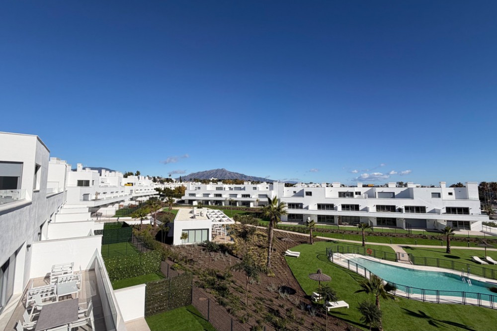- Welcome to this exceptional 3-bedroom penthouse situated in the modern and highly desirable Urbanización Acqua Gardens, nestled in the heart of Cancelada. This stylish top-floor residence combines contemporary design, spacious interiors, and an unbeatable location—perfect for those seeking a refined yet relaxed Mediterranean lifestyle. The property offers a well-appointed layout featuring three bright double bedrooms, including a serene master suite complete with its own private en-suite bathroom. A second full bathroom serves the remaining bedrooms and guests. High-quality finishes, large windows, and an open-plan living and dining area create an inviting atmosphere filled with natural light. One of the key highlights is the expansive 31m² private terrace with partial sea and mountain views, seamlessly connected to the living space and ideal for alfresco dining, entertaining, or simply unwinding while enjoying the warm Costa del Sol climate. Additional conveniences include underground parking and a private storage room, providing practicality and extra space. Residents of Acqua Gardens enjoy access to a fantastic range of on-site amenities, including a salted water exterior swimming pool, a fully equipped gym, a co-working area, beautifully maintained communal gardens, and secure gated access for full peace of mind. The location is truly hard to beat—set within walking distance of a wide selection of amenities, charming cafés, shops, and the beach, which is just a pleasant 10-minute stroll away. For those who enjoy exploring the coast, both Marbella and Estepona are reachable within a 10-minute drive, placing world-class dining, shopping, and leisure options right at your doorstep. Whether you’re looking for a full-time residence, a stylish holiday home, or a smart investment opportunity, this penthouse delivers outstanding value, luxury, and lifestyle in one of the Costa del Sol’s most up-and-coming areas.