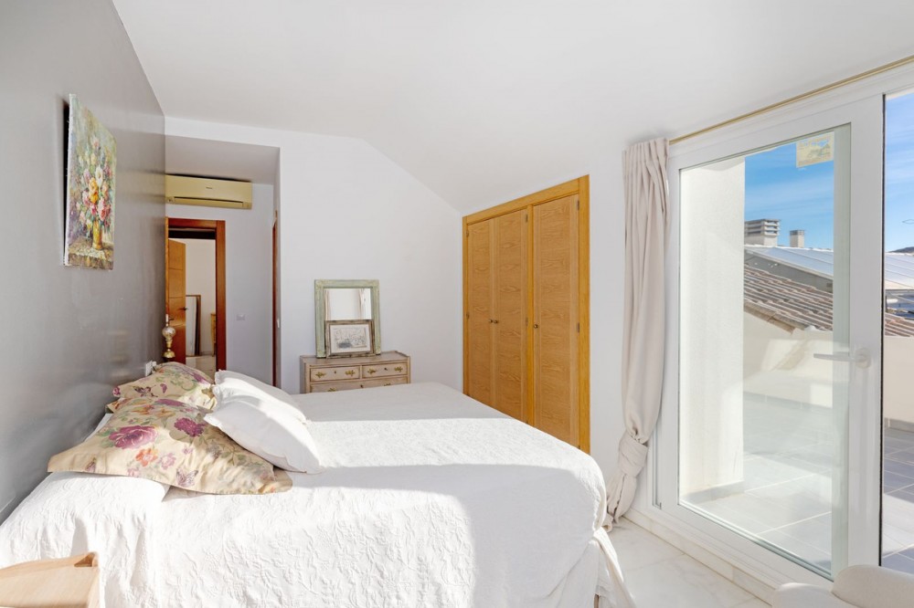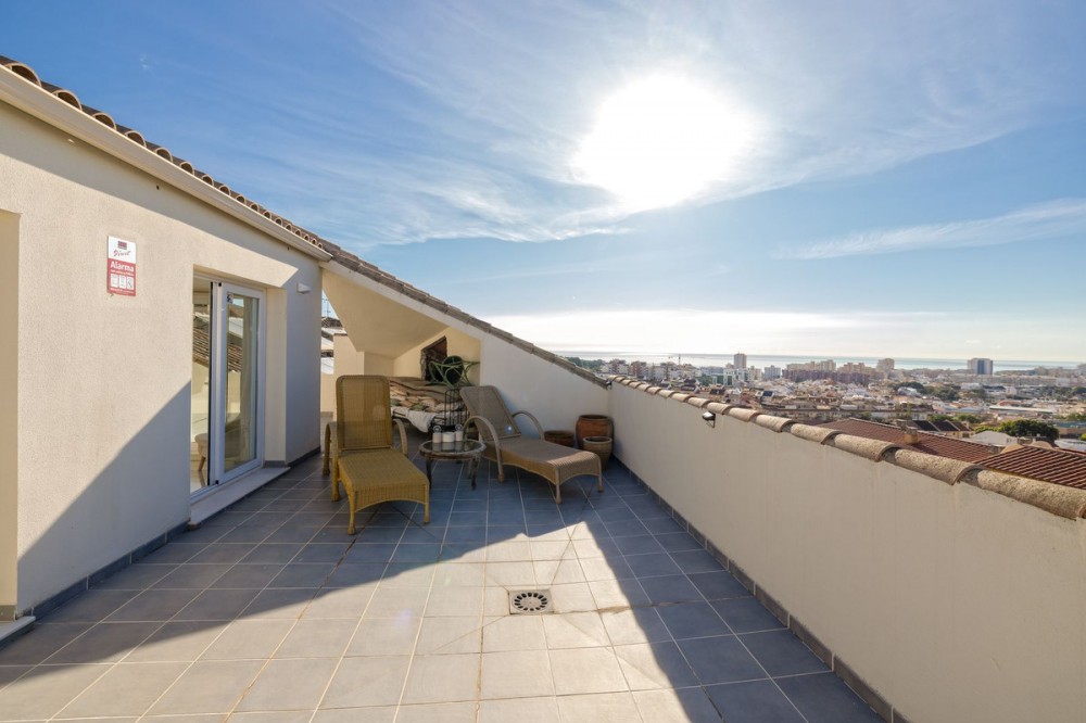 - Discover this stunning penthouse located in the highly sought-after municipality of Fuengirola, Málaga. With a built area of 155 m², this property stands out for its modern design and functionality. It features three spacious bedrooms, two full bathrooms, a fully equipped kitchen, and an impressive 150 m² terrace that provides abundant natural light and a west-facing orientation—perfect for enjoying the best sunset views. In addition, it includes a private parking space, a communal swimming pool, and an elevator, offering every comfort for a luxurious and convenient lifestyle. Built in 2009, the penthouse combines elegance and quality thanks to its marble finishes and details such as air conditioning, fitted wardrobes, reinforced door, and video intercom. The property is designed to meet the highest standards, making it ideal for families or anyone seeking a privileged space to relax and enjoy the Mediterranean climate. Located in Fuengirola, the municipality is known for its quality of life, excellent services, and rich cultural and leisure offerings. The area boasts outstanding public transport connections. The Fuengirola commuter train station, just a few minutes away, provides quick access to Málaga city and the airport. For shopping and entertainment enthusiasts, the Miramar Shopping Centre—with a wide range of shops, restaurants, and activities—is also very close by. Fuengirola is a vibrant enclave that blends tradition with modernity. Its long beaches, seafront promenade, and exceptional gastronomy make it a true gem on the Costa del Sol. Moreover, the town stands out for its safety and for being a reference point for those seeking an active and healthy lifestyle.