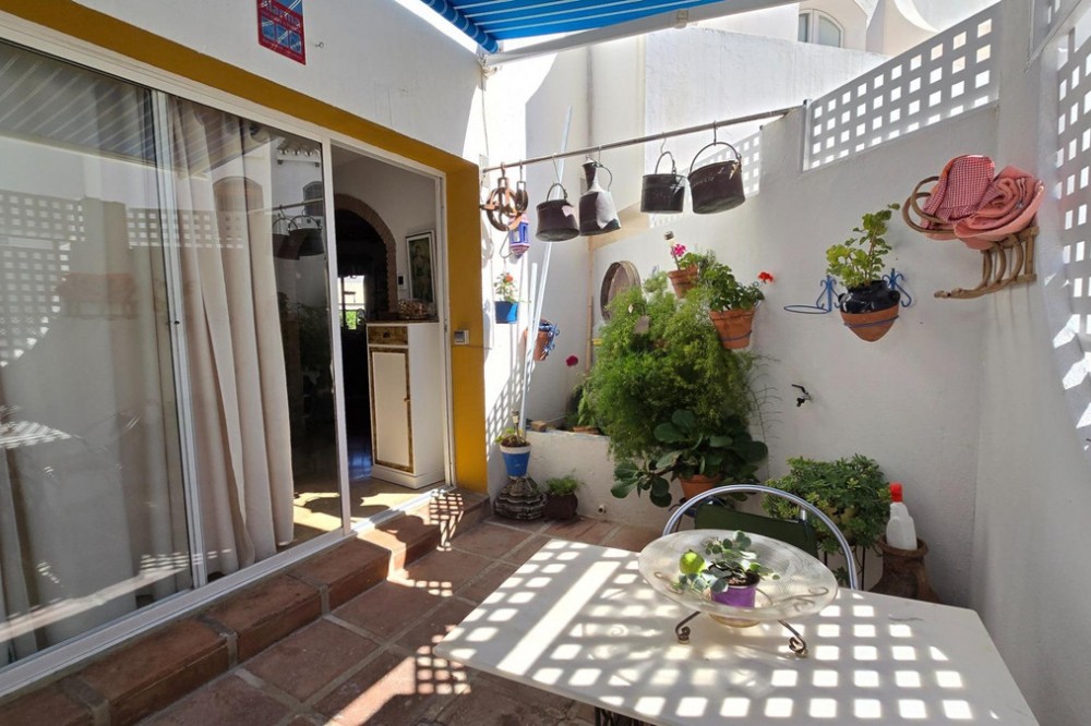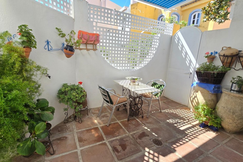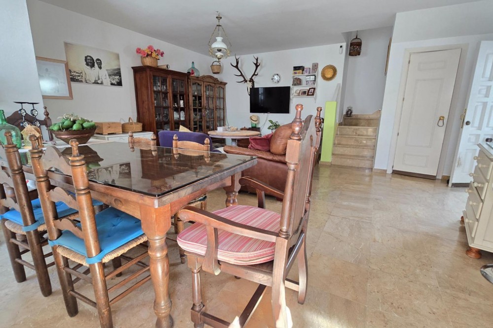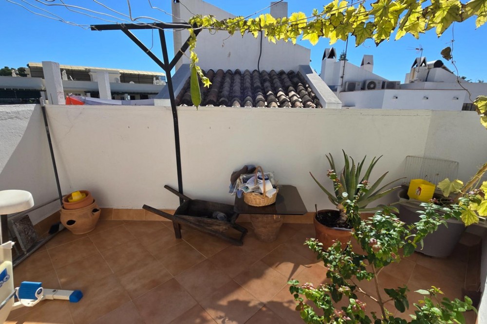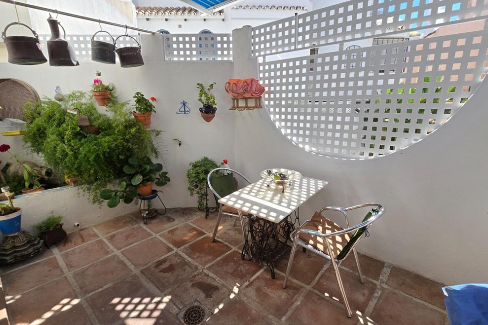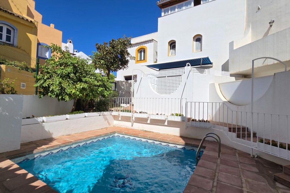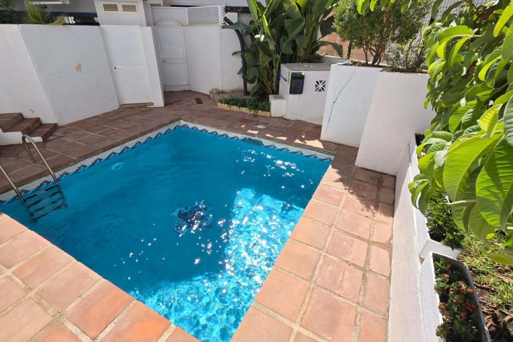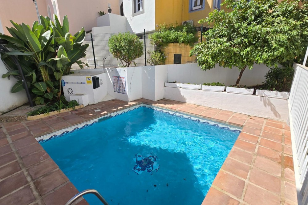 - Charming three-storey Andalusian-style townhouse, located in a privileged and rapidly growing area of Marbella, between Marbella and San Pedro de Alcántara. On the first floor you will find a spacious living room with a semi-open kitchen, a guest toilet, a pantry, and a small terrace with direct access to the communal pool, which is shared by only three homes. On the second floor, there are two bedrooms, one of them with an en-suite bathroom, and on the solarium level an additional built room has been added, with access to the terrace. A property full of potential, ideal both for living or investing in the area. Although it does not include private parking, it is easy to park almost at the doorstep, and parking spaces can be rented in a building just 20 metres away.
