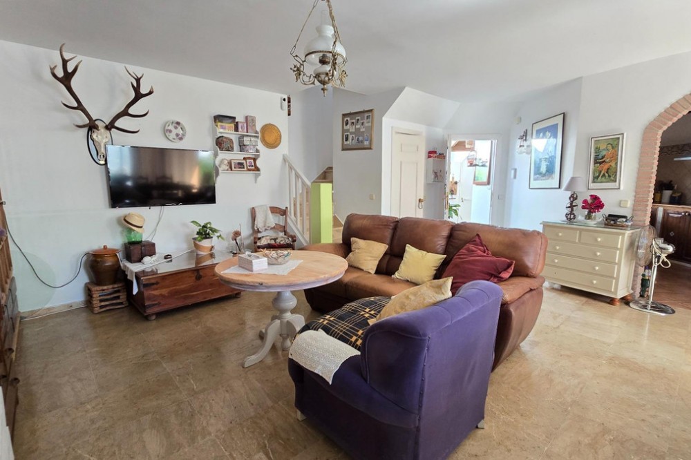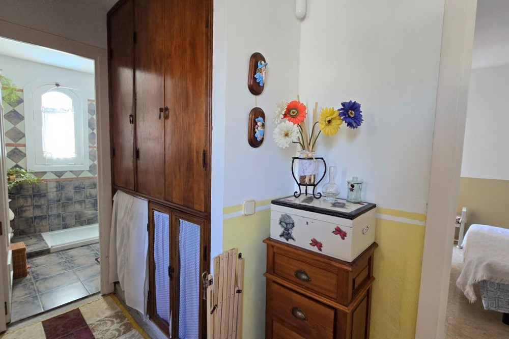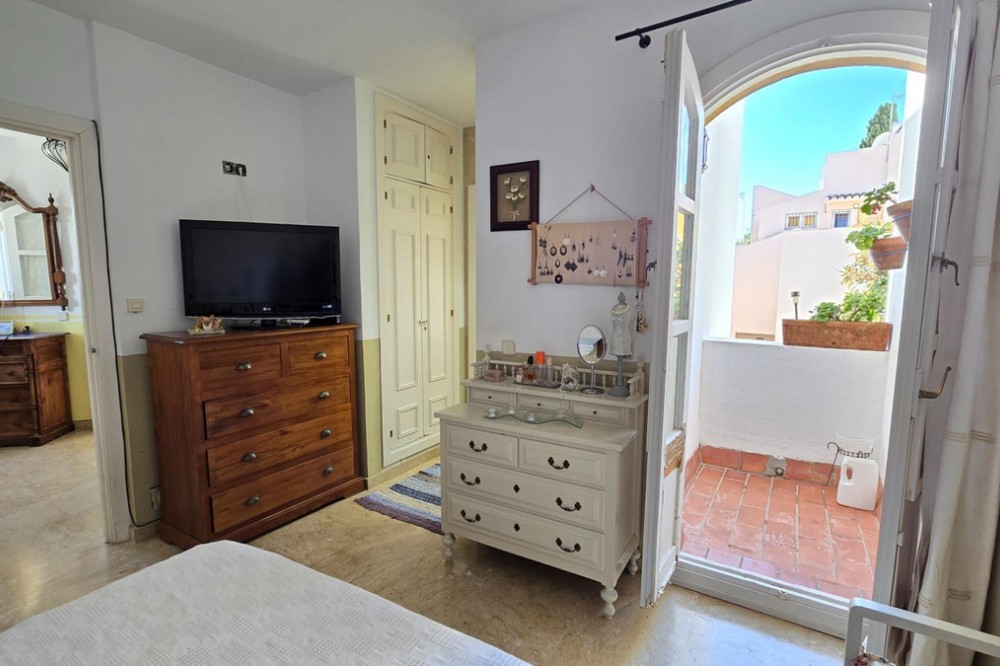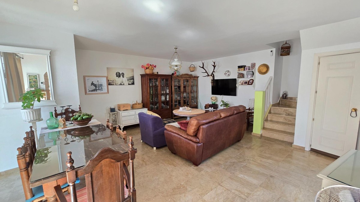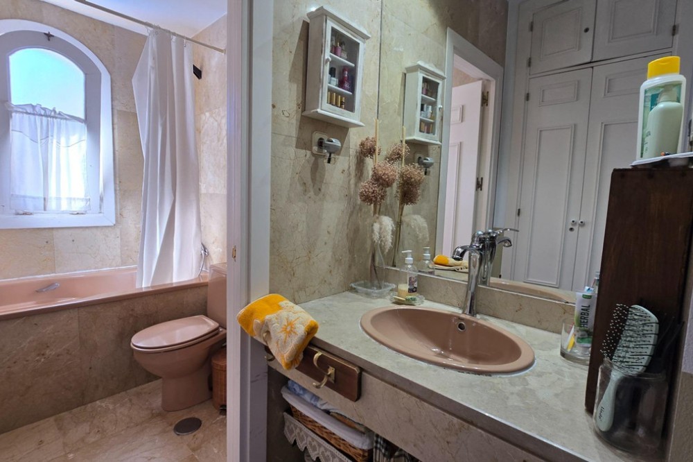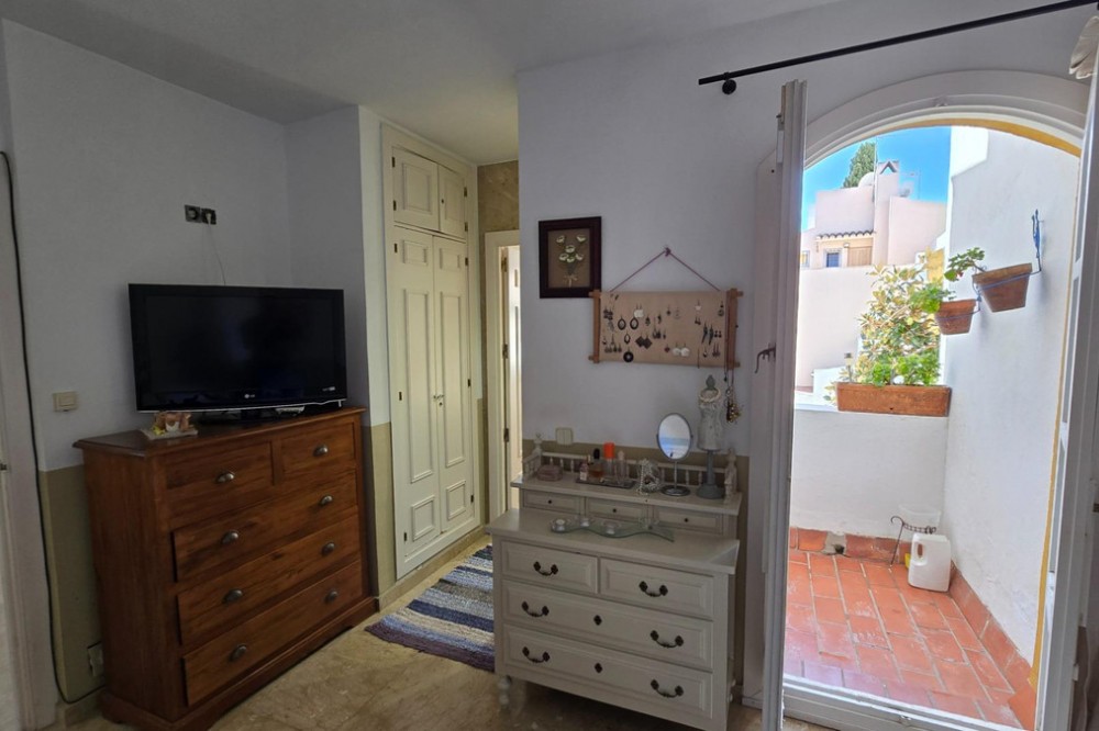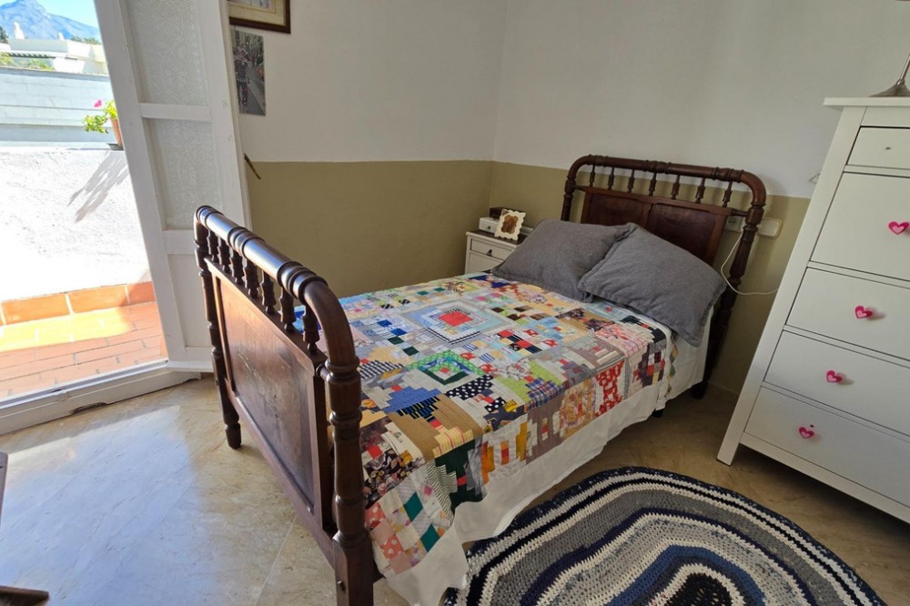 - Charming three-storey Andalusian-style townhouse, located in a privileged and rapidly growing area of Marbella, between Marbella and San Pedro de Alcántara. On the first floor you will find a spacious living room with a semi-open kitchen, a guest toilet, a pantry, and a small terrace with direct access to the communal pool, which is shared by only three homes. On the second floor, there are two bedrooms, one of them with an en-suite bathroom, and on the solarium level an additional built room has been added, with access to the terrace. A property full of potential, ideal both for living or investing in the area. Although it does not include private parking, it is easy to park almost at the doorstep, and parking spaces can be rented in a building just 20 metres away.