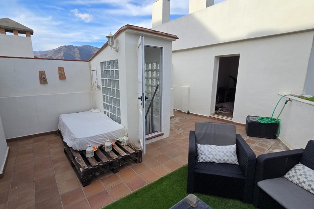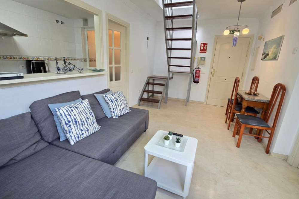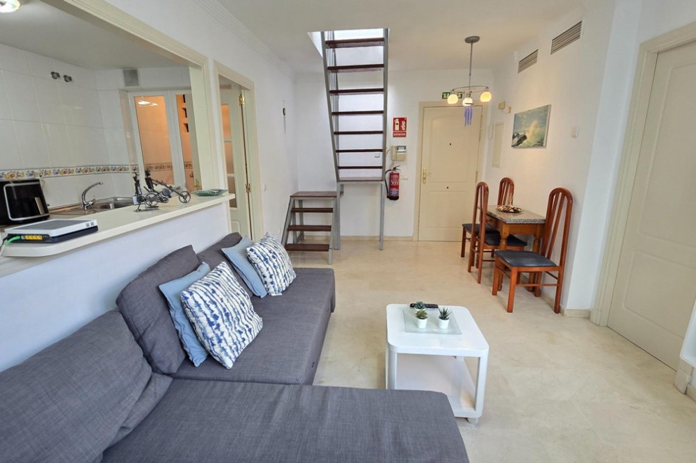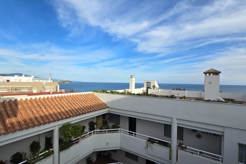 - Discover this charming apartment located on the absolute beachfront, on the Paseo Marítimo of Estepona. With a constructed area of 58 m2, this property is in very good condition and offers a cozy atmosphere ideal for enjoying a coastal and urban lifestyle. The dwelling features a bright double bedroom thanks to its southeast orientation, and also has a fully equipped bathroom. A standout feature is its private terrace-solarium where you can relax while enjoying stunning views of the Mediterranean Sea. Furthermore, on the terrace, there is an additional 9m2 room that is perfect as a guest bedroom. For greater convenience, it includes a parking space and a storage room. The apartment is on the top floor, ensuring abundant natural light throughout the day. It has a tourist license and, due to its privileged location, it is a highly profitable property. Therefore, it is not only perfect as your ideal home but also as an excellent investment or second residence to enjoy holidays. It belongs to a building in perfect condition with a quiet community. Legal Disclosure (Andalusia, Spain): In compliance with Decree 218-2005 of October 11 of the Junta de Andalucía, clients are informed that notary, registry, and I. T. P. (Property Transfer Tax) costs are not included in the price. We remind you that as a consumer, you have the right to be informed and provided with the corresponding informative documentation, as the case may be, based on the provisions of Decree 218/05 of October 11, which regulates the Consumer Information Regulations for the purchase and sale and lease of homes in Andalusia.