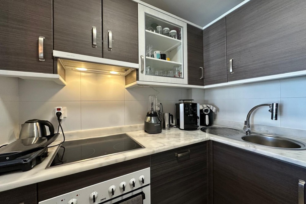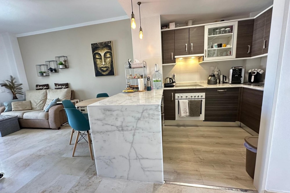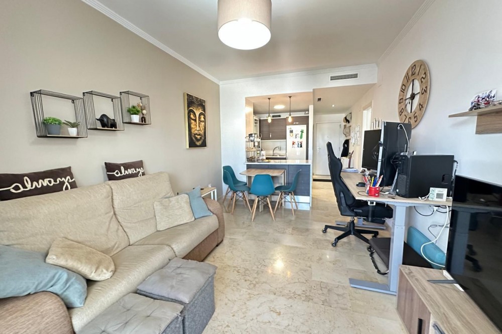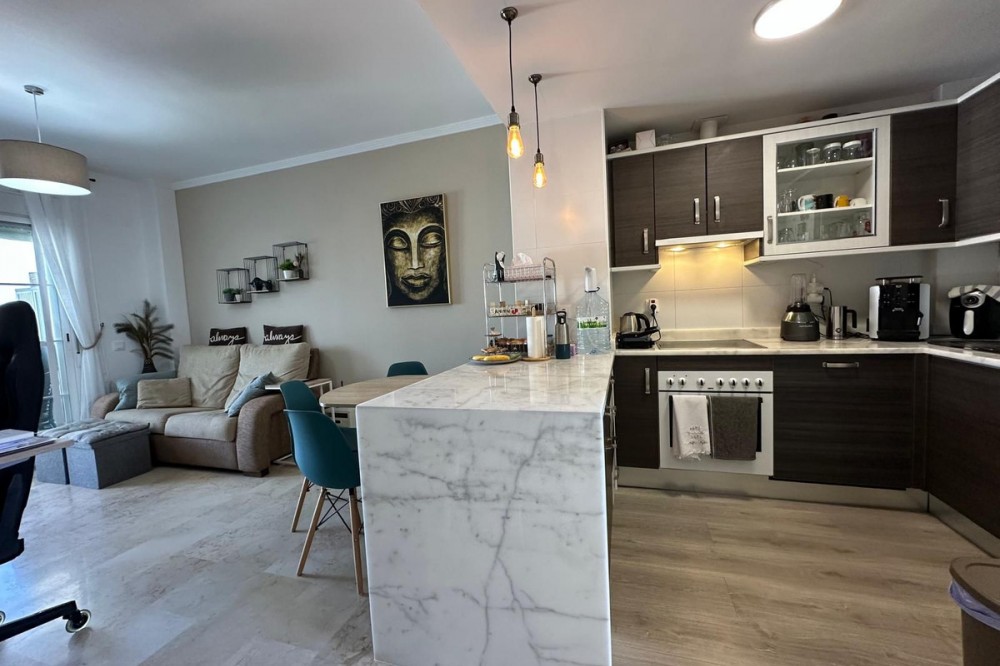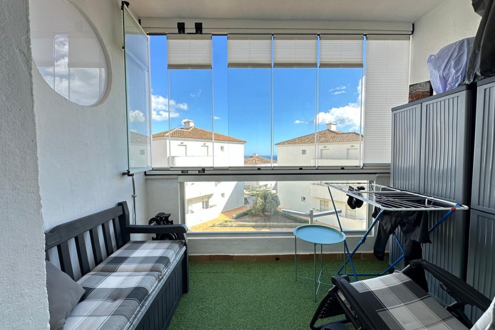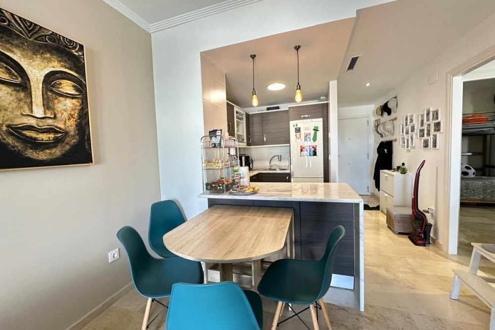 - , Manilva, Costa del Sol. 2 Bedrooms, 2 Bathrooms, Built 67 m², Terrace 7 m². Setting : Urbanisation. Orientation : South East. Condition : Good. Pool : Communal. Climate Control : Air Conditioning. Views : Sea, Mountain. Features : Covered Terrace, Lift, Utility Room, Ensuite Bathroom, Marble Flooring. Furniture : Fully Furnished. Kitchen : Fully Fitted. Parking : Communal. Utilities : Electricity, Drinkable Water. Category : Investment, Resale.