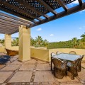 - Large, three-bedroom penthouse with impressive countryside and sea views, located within walking distance of the beach in Casares Costa, in the well-maintained and luxurious community of Majestic Hills. The property occupies the entire top floor of the block and is presented furnished, though the furniture is optional. There is a large, double-aspect lounge and dining room with an open fireplace, excellent natural light, and direct access to the terrace. The kitchen is oversized, fully fitted with Bosch appliances, and includes a separate utility and laundry area. Natural light reaches every room, including the kitchen and all bathrooms. The property has three double ensuite bedrooms, including the master suite with a large private bathroom featuring a corner jacuzzi bath, walk-in shower, and double basins. Each bedroom has direct access to the extensive terrace. There is also a separate guest toilet. Air-conditioning is installed throughout, with underfloor heating in the bathrooms. The terrace is mainly uncovered and offers several areas for outdoor dining, entertaining, and sunbathing, while enjoying open mountain views, including Los Reales, as well as some sea views. The property is sold with two underground parking spaces and an underground storeroom. There is also access to additional off-street parking for guests. Majestic Hills offers two swimming pools (one open all year, though not heated) and beautifully maintained tropical gardens. Viewings are highly recommended.