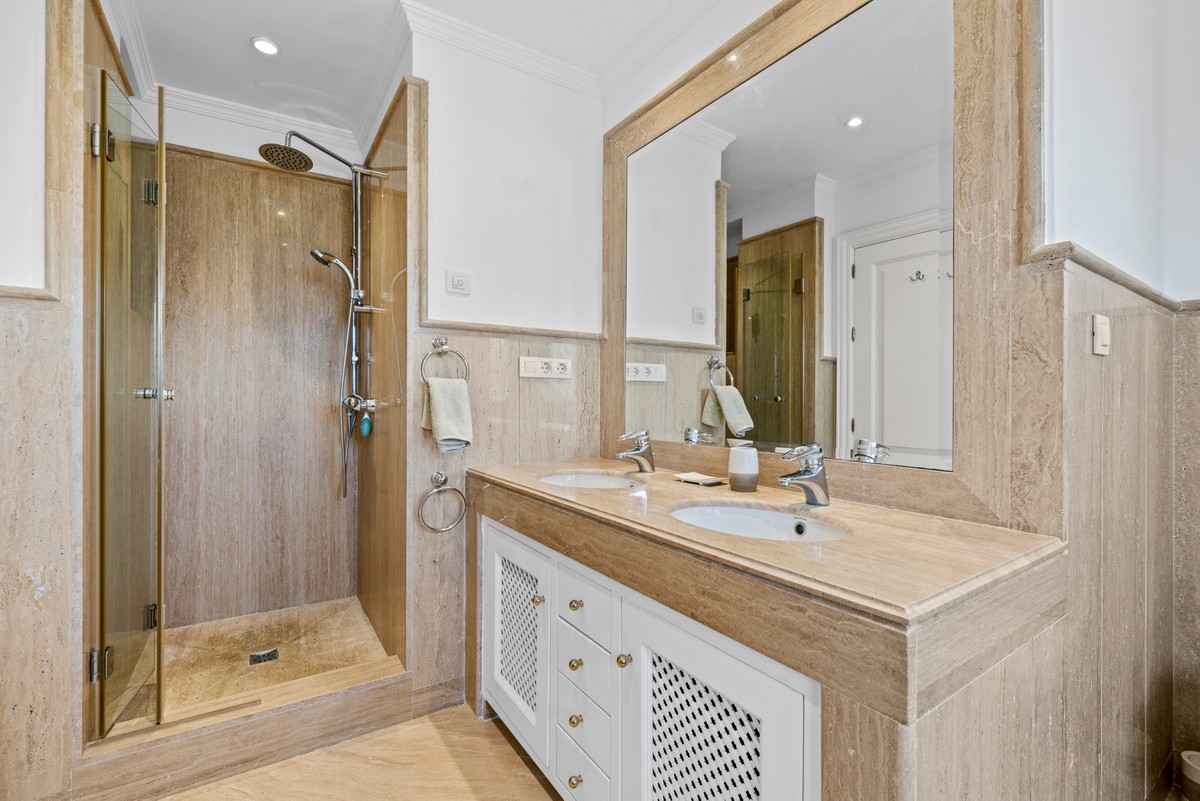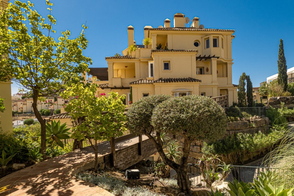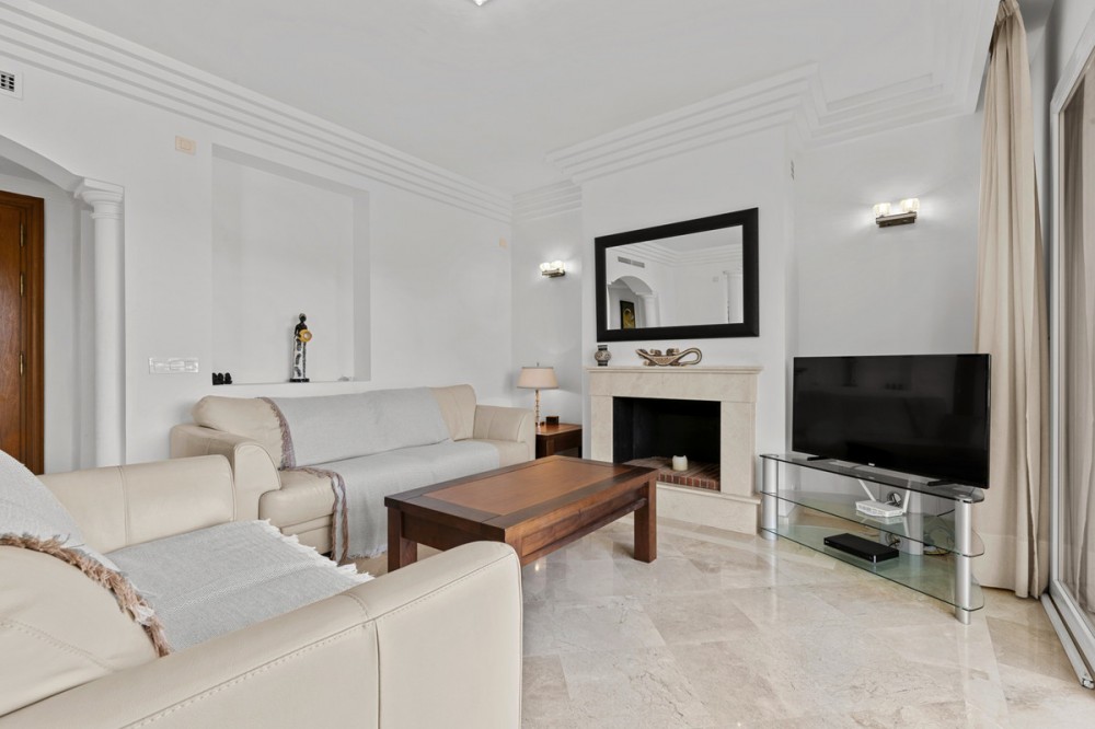 - Large, three-bedroom penthouse with impressive countryside and sea views, located within walking distance of the beach in Casares Costa, in the well-maintained and luxurious community of Majestic Hills. The property occupies the entire top floor of the block and is presented furnished, though the furniture is optional. There is a large, double-aspect lounge and dining room with an open fireplace, excellent natural light, and direct access to the terrace. The kitchen is oversized, fully fitted with Bosch appliances, and includes a separate utility and laundry area. Natural light reaches every room, including the kitchen and all bathrooms. The property has three double ensuite bedrooms, including the master suite with a large private bathroom featuring a corner jacuzzi bath, walk-in shower, and double basins. Each bedroom has direct access to the extensive terrace. There is also a separate guest toilet. Air-conditioning is installed throughout, with underfloor heating in the bathrooms. The terrace is mainly uncovered and offers several areas for outdoor dining, entertaining, and sunbathing, while enjoying open mountain views, including Los Reales, as well as some sea views. The property is sold with two underground parking spaces and an underground storeroom. There is also access to additional off-street parking for guests. Majestic Hills offers two swimming pools (one open all year, though not heated) and beautifully maintained tropical gardens. Viewings are highly recommended.