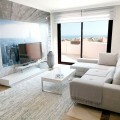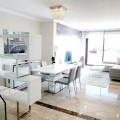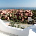 - For sale a stylish, fully renovated 3-bedroom penthouse in the prestigious gated community Las Nayades on the New Golden Mile, just a two-minute walk from the beach. The complex offers top-class amenities: 24/7 security, beautifully maintained tropical gardens, an outdoor pool, heated indoor pool, gym and sauna. The promenade with shops, cafés and restaurants is right nearby. The duplex penthouse features: — A spacious living-dining area with panoramic sea views and access to a sunny south-facing terrace — A modern fully equipped kitchen — Two bedrooms on the main floor (one with an en-suite bathroom) plus an additional bathroom — A third bedroom on the upper level with access to an impressive private solarium overlooking the sea and Gibraltar Extras include: smart home system, hot/cold air conditioning, alarm system, fitted wardrobes, electric shutters, and a private underground parking space. An ideal property for those seeking comfort, quality and a prime seaside location with stunning sea views.