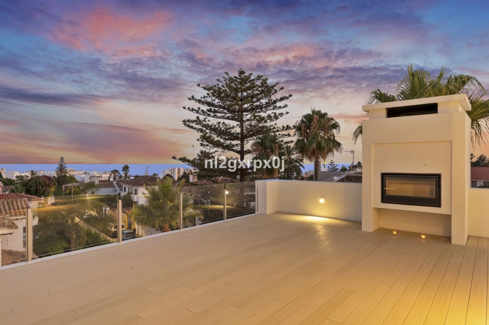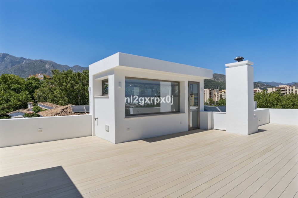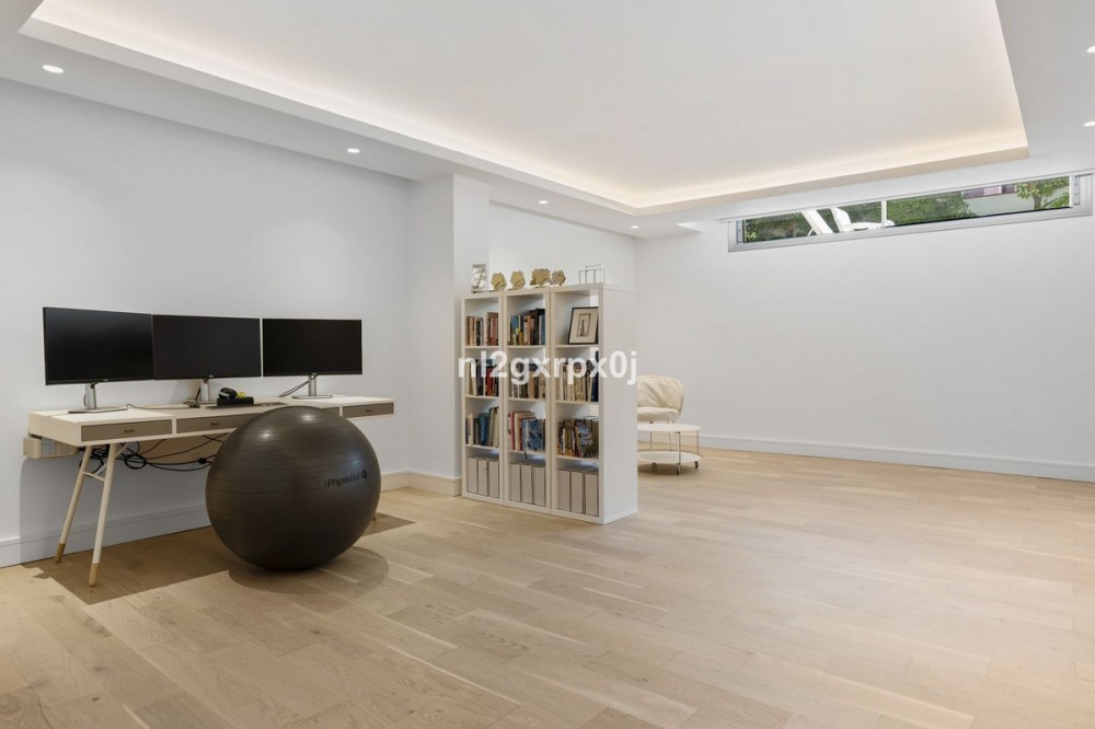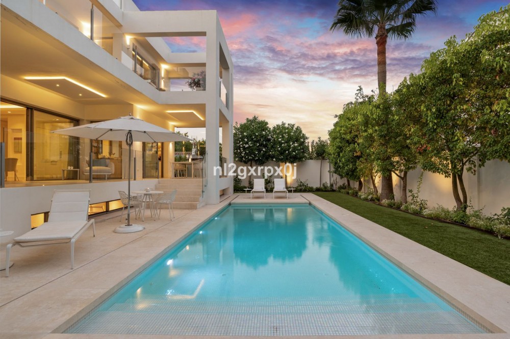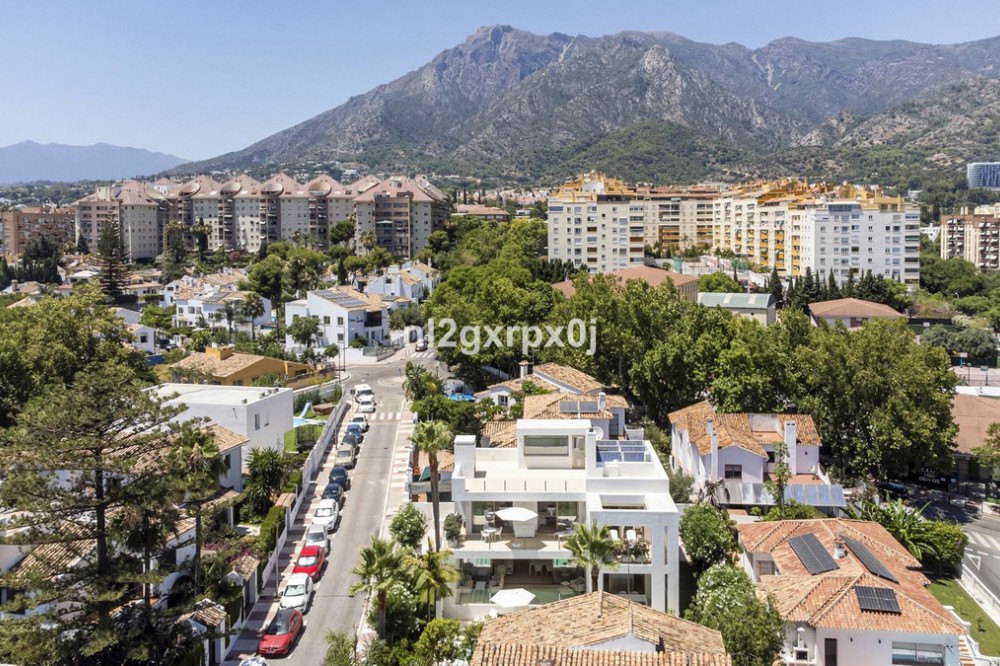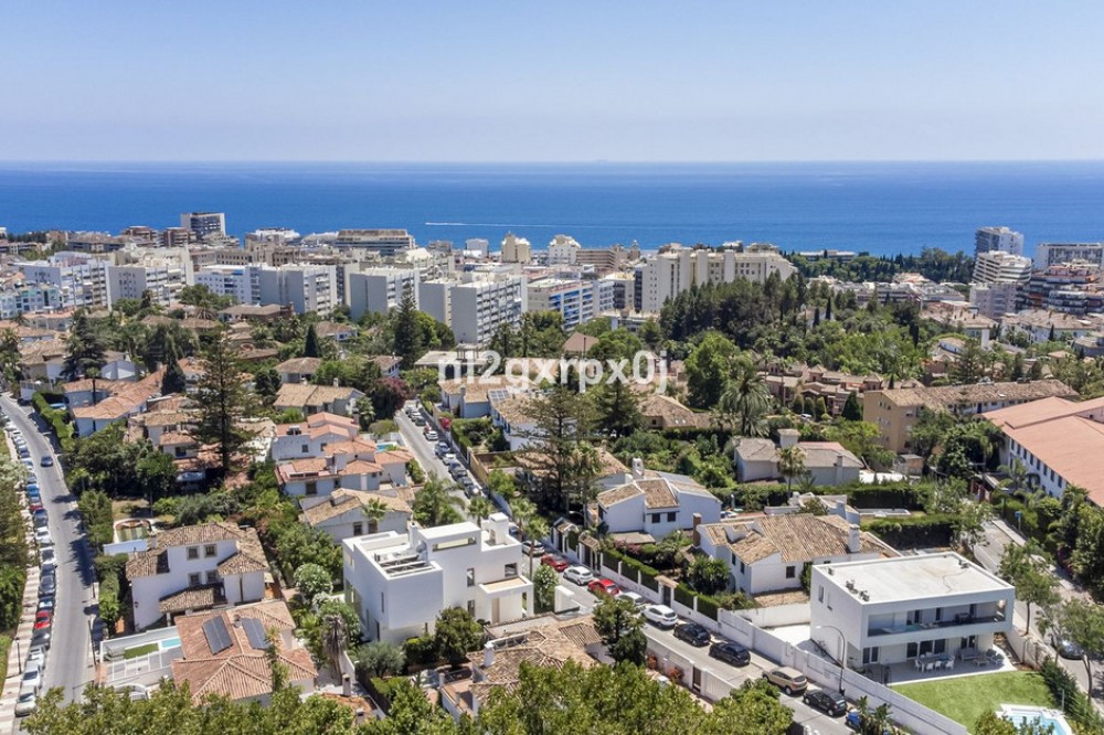 - Modern Villa in Marbella. This villa represents an good opportunity to enjoy modern luxury in one of Marbella’s most sought-after central addresses. to a high level of comfortable living, and plenty of privacy, within walking distance to the beautiful old town, beaches, central market, banks, farmacies, restaurants, shops, and all types of services, it offers the convenience living in a quite area of the city. The property sits on a 553 m² plot with 398 m² of built space and 197 m² of terraces. It features one bedroon in the ground floor, guest toilet, in the frist floor we find a very wide master bedroom with bathroom en suite, with connections prepared for a fourth bedroom. And in the semi-basement is the 3 bedroom with a fully bathroom, and is also posible to organise a fifth bethroom with bathroom ensuite in this level, ample gym and engine room complete this level. Interiors are designed with oak parquet floors and natural stone, while the open-plan kitchen includes a stainless-steel island and premium appliances from Miele, Neff, and Siemens. Outdoor spaces invite year-round enjoyment with four terraces, easy manintenace garden, and a saltwater pool equipped with counter-current system, lighting, and cleaning jets. From the first floor upwards, panoramic views embrace Marbella, La Concha, Gibraltar, and the mountains of Morocco. Additional highlights include: Alarm system and outside cameras Solar panel system (6 panels) Split air con (warm-cold) Underfloor heating throughout the house Insulated glass windows and sliding doors Video-intercom Decalcification system Water pressure control Grohe filter faucets RED and BLUE