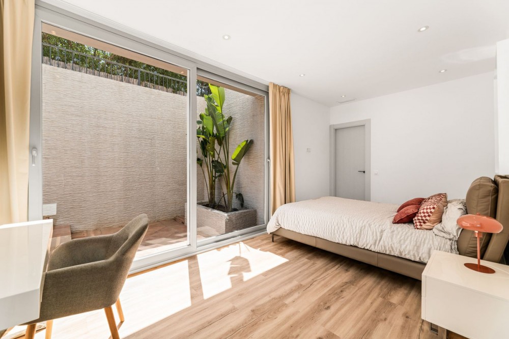 - Situated in the coveted San Pedro de Alcántara beachside area in Marbella, this newly built contemporary residence offers an exceptional blend of modern design, privacy, and coastal living. Its south-facing orientation ensures bright interiors throughout the year, while the neighbourhood provides immediate access to the promenade, restaurants, sports clubs, and the vibrant charm of San Pedro. Overview of the Home 5 Bedrooms | 5.5 Bathrooms | 450 m² Interior | 220 m² Terraces | 610 m² Plot Spread across three levels, this modern home is designed to maximize natural light, comfort, and seamless indoor–outdoor living. High-quality finishes, spacious suites, and thoughtfully planned living spaces make it ideal for year-round enjoyment. Main Floor – Elegant Everyday Living The main level serves as the heart of the home, offering 122 m² of bright, open-plan living complemented by 124 m² of generous terraces. A contemporary open living and dining area designed for natural flow and comfort Fully equipped premium kitchen with a separate pantry Floor-to-ceiling sliding glass doors that open the entire space to the terrace and garden Stylish guest bedroom with an adjacent bathroom Elegant guest toilet Direct access to the parking area A sculptural staircase leading to the upper floor This level is defined by light, spaciousness, and effortless connection to the outdoors. First Floor – Private Bedroom Suites The first floor offers 90 m² of tranquil private living, featuring two beautifully appointed bedroom suites: A main suite with a luxurious dressing area and a bathroom finished with refined materials A second en-suite bedroom with spacious wardrobes Both bedrooms open onto a stunning 77 m² terrace, accessed through expansive floor-to-ceiling glass doors Abundant sunlight and serene open views create an atmosphere of quiet relaxation This level is designed for comfort, privacy, and stylish indoor-outdoor living. Garden Level – Versatile Living & Wellness Spaces The garden level provides 239 m² of flexible living areas, perfect for entertainment, wellness, or multi-generational living. Bright lounge and dining area connected to an open kitchen Direct access to a charming patio that flows into the garden and pool area A spacious suite with its own sitting area, dressing room, and elegant bathroom A second en-suite bedroom with ample wardrobe space A large open space ideal for a gym, spa area, cinema room, games room, or studio This floor adapts effortlessly to personal lifestyle needs. Outdoor Spaces – Sun, Privacy & Mediterranean Living Designed for year-round enjoyment, the outdoor areas enhance the home’s warm, modern atmosphere: Landscaped Mediterranean garden with a private swimming pool Multiple sun-drenched terraces ideal for dining, lounging, and entertaining Fluid transition between indoor living areas and garden spaces South-facing orientation for maximum light and warmth The outdoor layout completes the home’s contemporary architecture and offers a peaceful retreat just minutes from the sea.