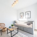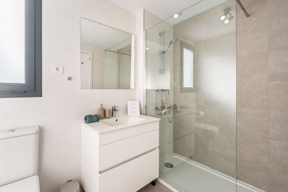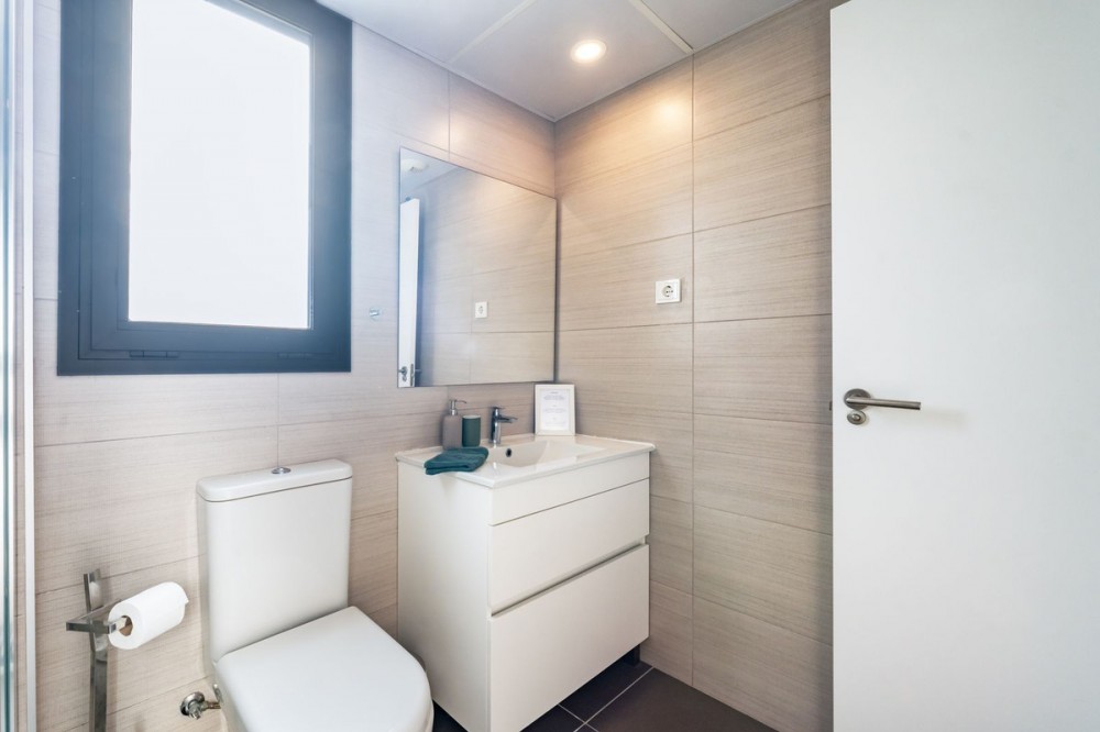 - Fantastic 3-Bedroom, 2-Bathroom Apartment We are pleased to present this wonderful apartment, offering generous space, excellent natural light, and a very functional layout. Upon entering, you are welcomed by an elegant entrance hall that leads into a large living–dining room. This bright space features a wide window that opens onto a southwest-facing covered terrace, perfect for enjoying the sun throughout the day. The property includes a very spacious kitchen, fully equipped with all necessary appliances, as well as a separate utility room. The kitchen also features a dining table, making it comfortable for everyday meals. All three bedrooms come with built-in wardrobes. The master bedroom includes an en-suite bathroom, and both bathrooms feature walk-in showers. The apartment is tastefully decorated, offering a warm and stylish atmosphere. The community areas include extensive landscaped gardens, a children’s playground with swings and play areas, and a sports area with a football field. There is also a large swimming pool with adapted access for seniors and people with reduced mobility, as well as a children’s pool. The complex is a fully gated community, providing enhanced privacy and security.