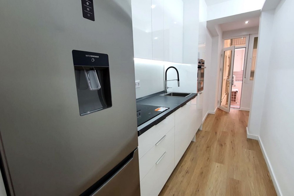 - Completely renovated apartment walking distance to the beach and train station. The property offers 2 double bedroom and1 single bedroom, 1 bathroom, fully equipped kitchen diner with access to a communal patio, and a good size lounge dining with small terrace. The bedrooms have fitted wardrobes and A/C all of them, the poperty has new plumbing and new eletric, double glazed windows and spots lights through out. It is a first floor no lift as it is an old building but with excellent location close to all amenities. Middle Floor Apartment, Fuengirola, Costa del Sol. 3 Bedrooms, 1 Bathroom, Built 70 m², Terrace 2 m². Setting : Town, Commercial Area, Close To Port, Close To Shops, Close To Sea, Close To Marina. Orientation : South. Condition : Excellent, Recently Renovated. Climate Control : Air Conditioning. Views : Street. Features : Fitted Wardrobes, Near Transport, Wood Flooring, Double Glazing. Furniture : Not Furnished. Kitchen : Fully Fitted. Security : Entry Phone. Utilities : Electricity. Category : Holiday Homes, Investment, Resale.