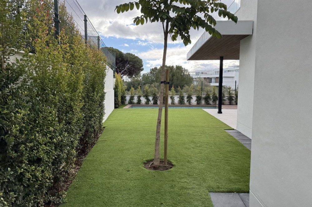 - Apartment located in the prestigious Santa Clara Homes development, this exceptional garden duplex apartment offers a rare combination of generous indoor - outdoor living, contrmporary desygn and complete privacy. Resales from Owner. Open plan living area with floor-to-ceiling windows that seamlessly connect to a large 74sq m terrace and private garden with private swimming pool.. The modern kitchen is fully equipped with premium appliances and elegant finishes. All three bedrooms are bright and well proportioned, each with its own bathroom.The master suite offers direct access to the outdoor space and includes a luxurious bathroom and ample built in wardrobes. A standout feature of this home is the large lower lever , offering a versatile multi-purpose space that can be customized as a home cinema, playroom, gym, or additional entertainment zone. High energy efficiency, premium materials, top quiality insulation, and access to communal pools, landscaped gardens and 24 hours security. The location is unbeatable: just five minutes by car from Marbella’s finest sandy beaches and surrounded by top class golf courses, including Santa Clara Golf, Marbella Golf Country Club, Rio Real Golf, etc.