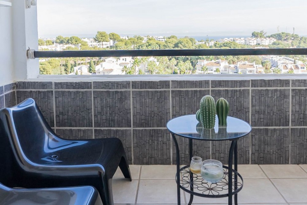 - This bright 87 m² apartment blends the serenity of its natural surroundings with the comfort of modern living. Located in the exclusive area of Ribera del Sol (Mijas), it enjoys a southwest orientation that ensures sunshine all day long and spectacular views of both the Mediterranean Sea and the Cerro del Águila mountain. The property has been tastefully refurbished, optimising every space. It offers two bedrooms and a spacious bathroom —originally two separate ones— now transformed into an elegant wellness area featuring a jacuzzi and hydromassage shower. The master bedroom boasts stunning panoramic views of the sea and the mountains, while the second bedroom opens directly onto the garden and the communal pool, creating a refreshing and peaceful atmosphere. It includes a private parking space within the gated community. The property is located just 1.3 km from the sea —approximately 3 minutes by car, 5 minutes by bike, or a 20-minute walk— in a well-maintained residential area with excellent connections. Situated only 2 minutes from the prestigious Miraflores Golf Club and just 5 minutes from both the motorway and the highway. Within 2 minutes you will find a shopping centre with restaurants, supermarkets, and bars, and within 5 minutes, the Miraflores Shopping Centre, Max Beach Club, a wide range of dining options, and pharmacies. The apartment is sold unfurnished and is in excellent condition —an ideal choice as a permanent residence, investment opportunity, or second home on the Costa del Sol.