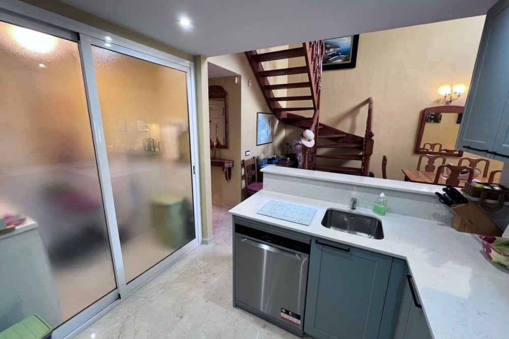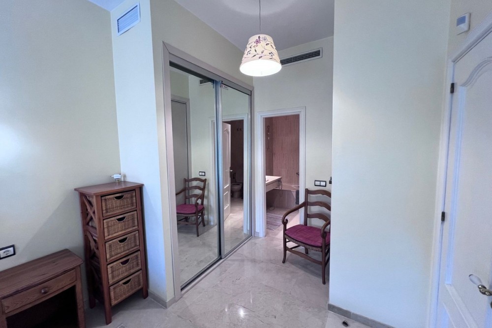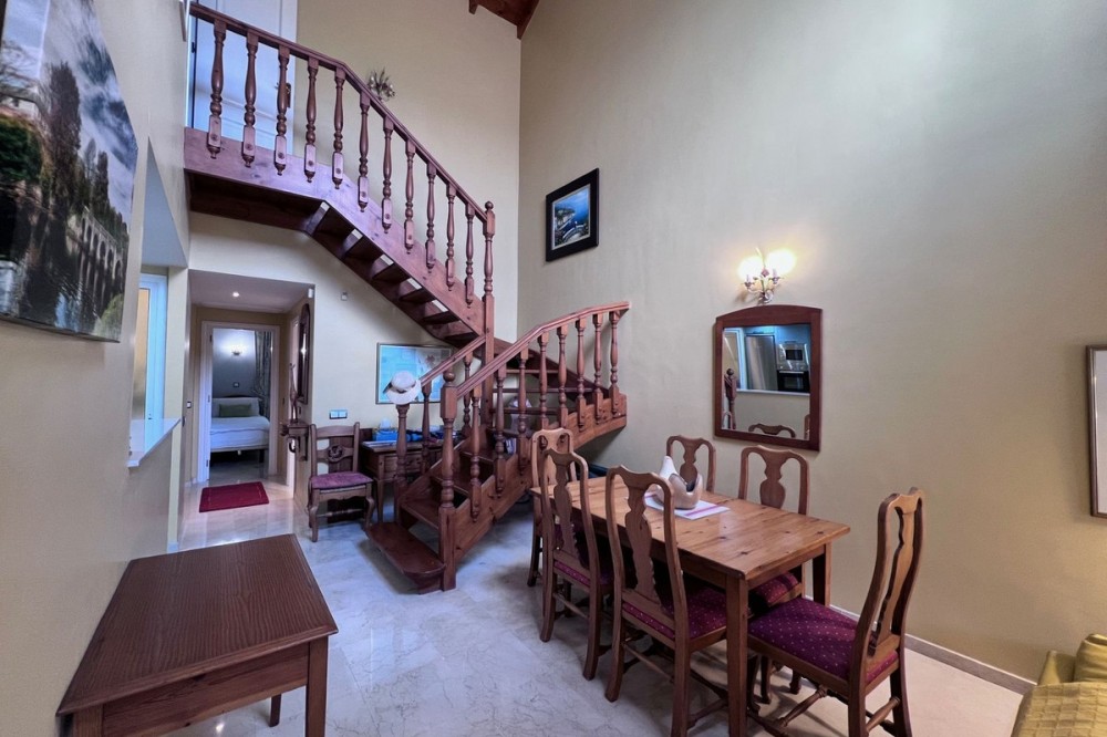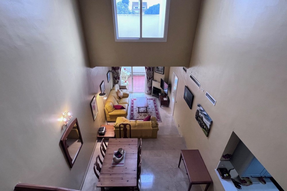 - Welcome to this extremely spacious beach-side duplex penthouse, located in the ever popular Carib Playa, "Fairways" close to Cabopino & Elviria. On the main level this stunning apartment offers, 2 double bedrooms, one at each end of the apartment, the master bedroom has its own en-suite bathroom plus there is an additional full shower room servicing the second bedroom, a brand new fully fitted kitchen including new appliances, Oven, dishwasher, microwave etc. Off the kitchen there is a separate utility room housing the washing machine, tumble dryer & storage, then a split level lounge/dining area with its double height ceiling leading to the south facing double terrace with partial awning that spreads across both the lounge & master bedroom, This terrace offers lovely views of the communal gardens & pool area. back inside a wooden stair case leads up to the top floor offering yet another double bedroom with full bath & shower en-suite with a velux sky light, this bedroom also has access to its own private south facing terrace. This apartment also includes a good size underground garage parking space & large storage room along with a lift. Further features include, Air conditioning throughout, Electric window shutters,fitted wardrobes to all bedrooms, double glazing,upgraded electric fuse board, close to numerous golf courses, walking distance to the beach, shops, bars, public transport & just a few minutes drive away from the lovely Cabopino Marina, a short drive to Marbella & just a 30 minute drive to Malaga airport. To be sold fully furnished. Due to its generous size this apartment would make an ideal full time residence or indeed a spacious holiday home offering your guests plenty of comfortable space to enjoy a fabulous holiday close to the beach.