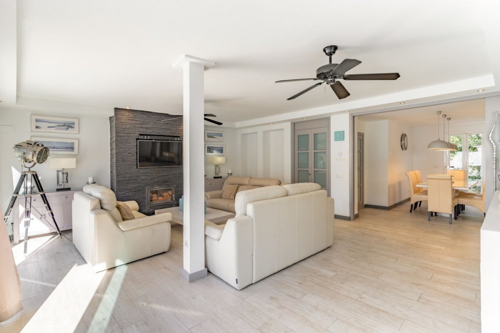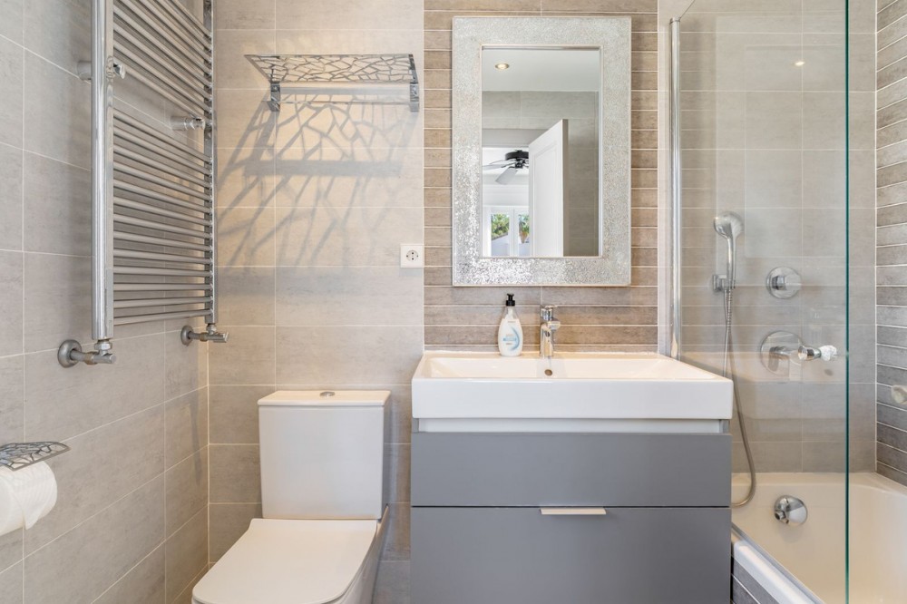 - Discover your dream home in the heart of Estepona, where modern comfort meets Mediterranean charm. This detached luxury villa offers privacy, space, and elegance – perfect as a family home or a holiday retreat. Property Highlights: • Large private swimming pool surrounded by a beautifully landscaped garden • Detached villa with separate guest house for family, friends, or staff • Spacious garage with room for two cars • Main Villa Entry Level: • Welcoming entrance hall • Fully equipped kitchen & dining room • Bright and spacious lounge with garden views • Comfortable bedroom and stylish bathroom Upper Level: • Elegant entrance hall leading to three bedrooms • Two modern bathrooms • Two private balconies, overlooking the pool and gardens Guest House / Garden Apartment • 1 cozy bedroom • 1 private bathroom This exceptional property combines stylish design with functional living, offering plenty of space for relaxation and entertaining. With its generous layout, beautiful gardens, and prime location in Estepona, this villa is a true gem on the Costa del Sol. Location: Just minutes from Estepona’s beaches, golf courses, restaurants, and international schools, with Marbella and Puerto Banús nearby.
