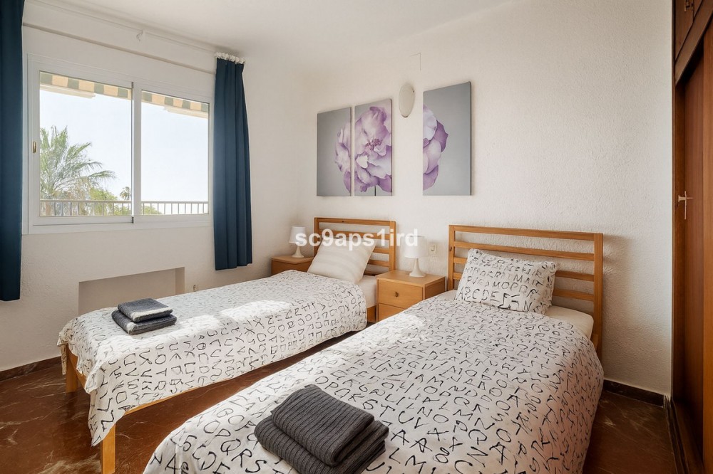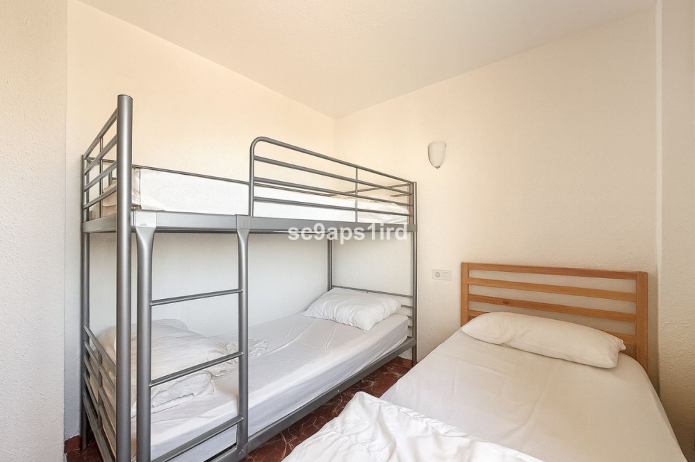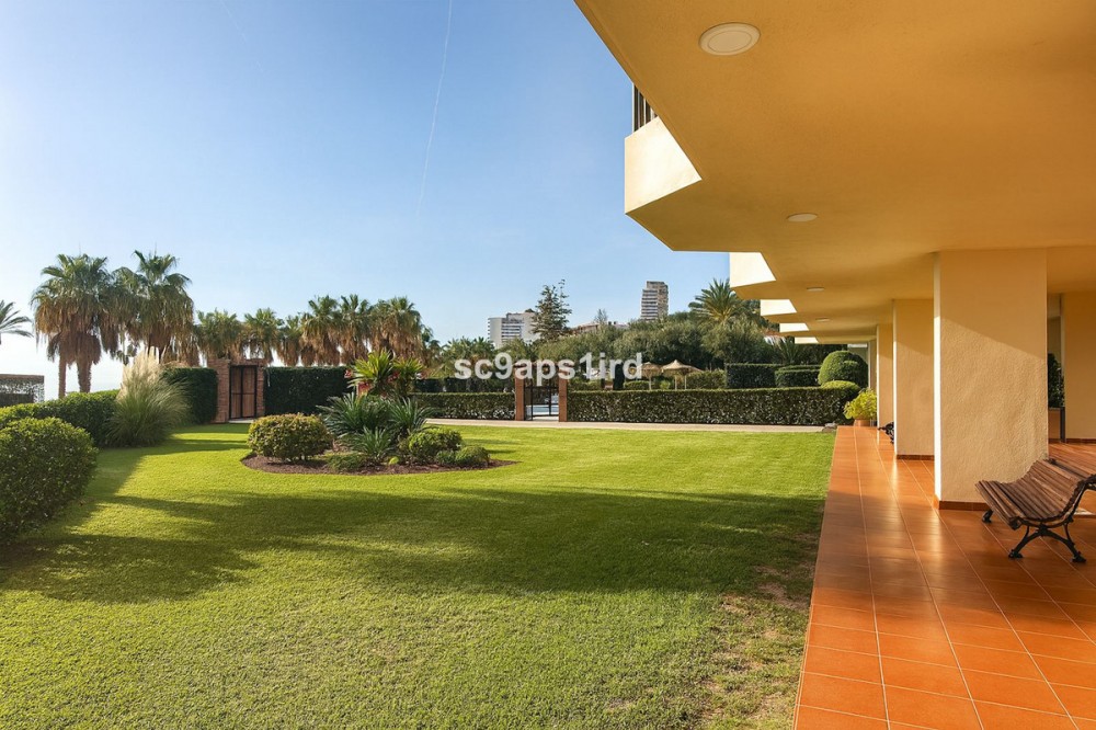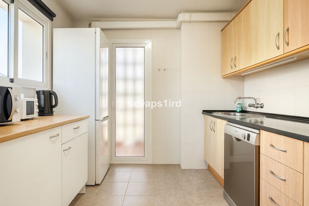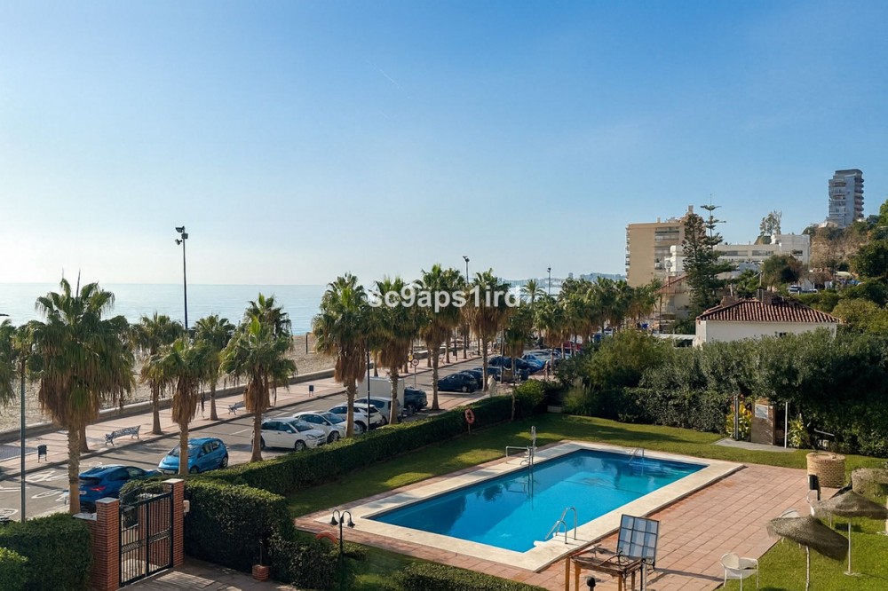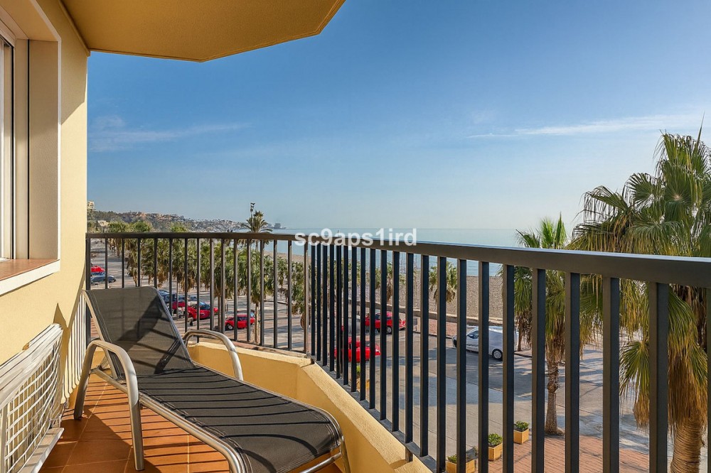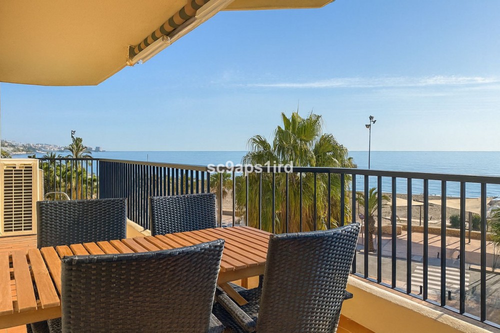 - This well-located middle-floor apartment enjoys a truly privileged frontline position on the Paseo Marítimo in Fuengirola, directly opposite the beach and just a short walk from Carvajal train station. The property offers 94 m² plus a south-facing terrace of 18 m², with open views across the Mediterranean and towards the Sierra Nevada mountains. The terrace is ideal for outdoor living and is equipped with a retractable awning for shade when desired. Inside, the apartment features three bedrooms and two bathrooms, with all bedrooms including fitted wardrobes. The layout is practical and comfortable, with a separate kitchen that includes a utility/laundry room. Built in 1980, the apartment forms part of a secure, gated residential complex offering well-maintained communal gardens, a swimming pool and communal parking. With the beach literally on the other side of the road, and walking distance to the train, shops, restaurants and everyday amenities, this property represents an excellent opportunity as a permanent residence, holiday home or investment in one of Fuengirola’s most convenient seaside locations.