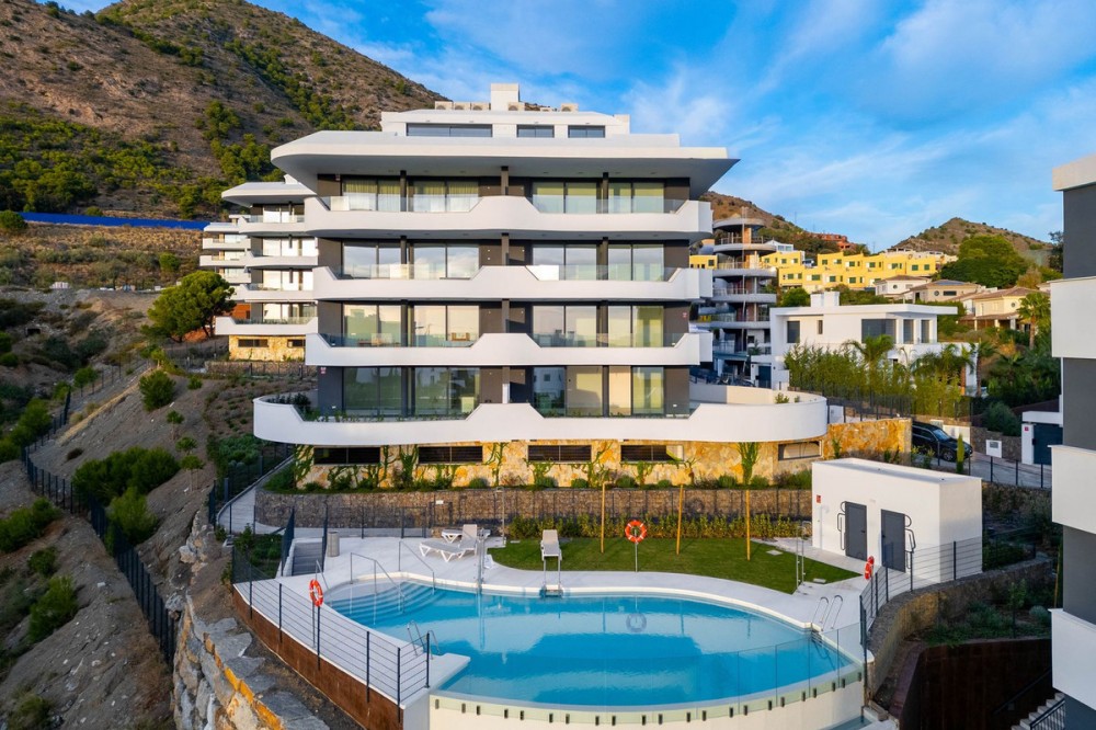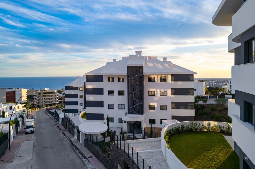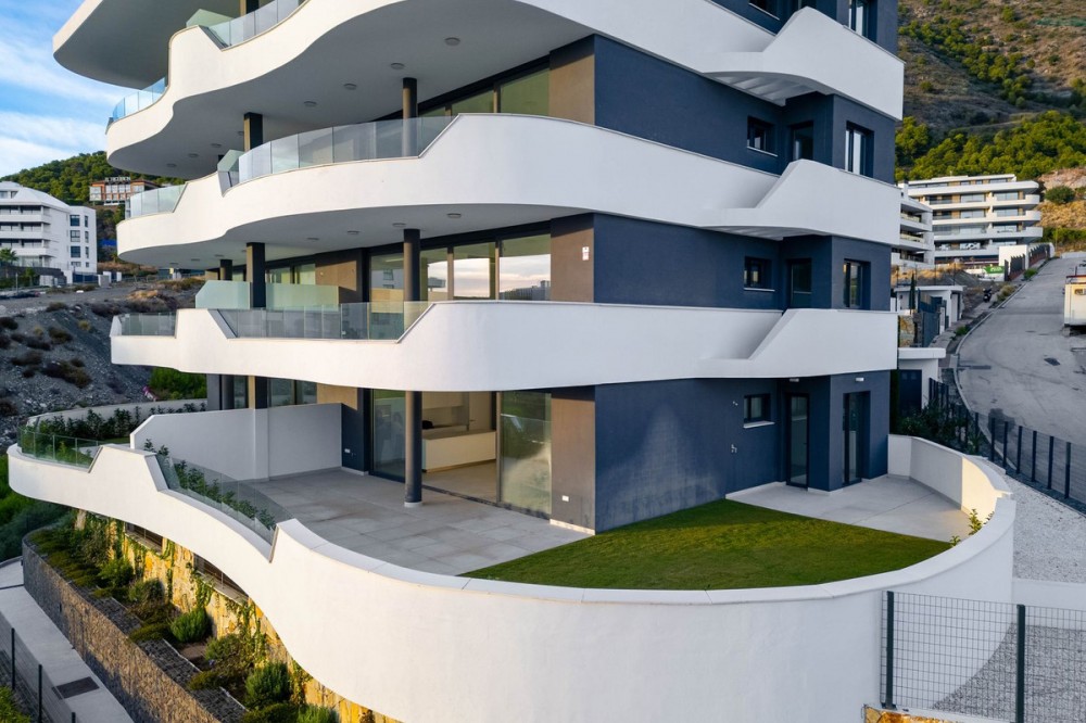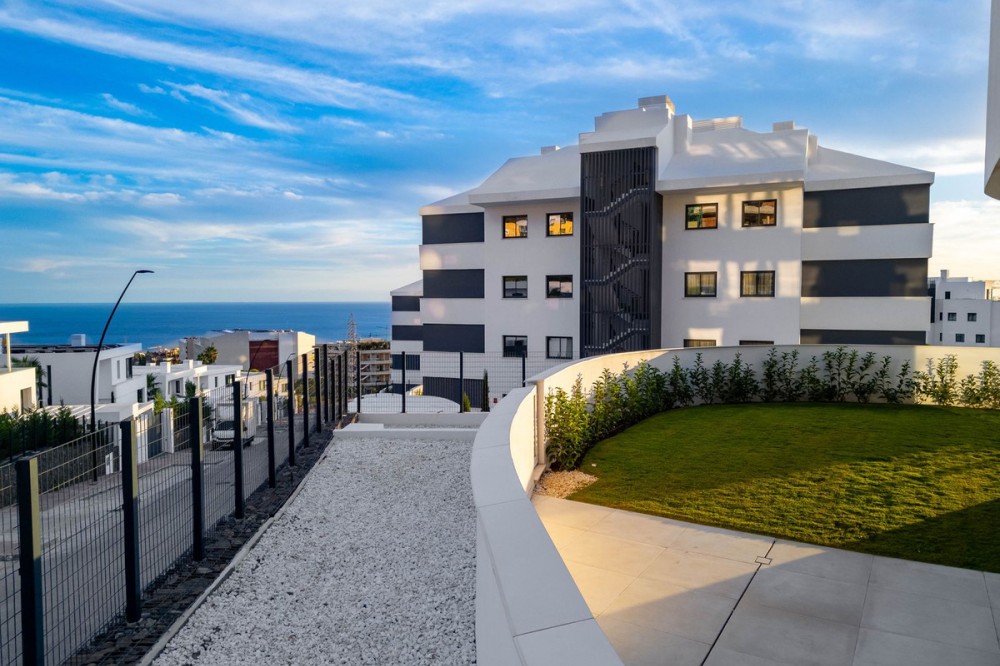 - Welcome to a beautifully positioned southwest-facing garden apartment in the heart of Higuerón — a home that offers both privacy and extraordinary views. Located on the eastern corner of the building, this residence is one of only two ground-floor apartments, creating a unique sense of exclusivity and tranquility. The apartment features 2 bedrooms and 2 bathrooms, thoughtfully designed with comfort, natural light, and modern living in mind. The interior feels spacious and serene, with large sliding doors that connect the living areas seamlessly to the outdoors. The property is brand new and has never been lived in, offering a fresh canvas for its future owners. A generous 53 m² covered terrace extends the living space beautifully, ideal for relaxing, dining, or enjoying the warm afternoon sun thanks to its southwest orientation. Beyond the terrace, a 69 m² private garden creates a peaceful green retreat with open sea views and an unobstructed outlook across the valley and the communal pool. Whether for quiet mornings, long outdoor lunches, or sunset evenings, this exterior space truly enhances the lifestyle of the home. The Higuerón community is known for its carefully designed environment that promotes both relaxation and active living, with landscaped walkways, gardens, and excellent facilities nearby. From this apartment, you are especially close to the Higuerón Hotel, offering convenient access to restaurants, wellness facilities, sports amenities, and spa services. The apartment is equipped with: • Full hot and cold air conditioning • Advanced domotic home-automation system • Two private parking spaces (one underground and one outdoor) • One private storage room With easy access to Málaga Airport, beaches, the train station, and all services within the Higuerón area, this home is ideal as a permanent residence or as a secure lock-up-and-leave holiday property. A brand-new home, exceptional outdoor space, and a stunning southwest orientation — this is a rare opportunity to own a private, bright, and perfectly located property on the Costa del Sol.