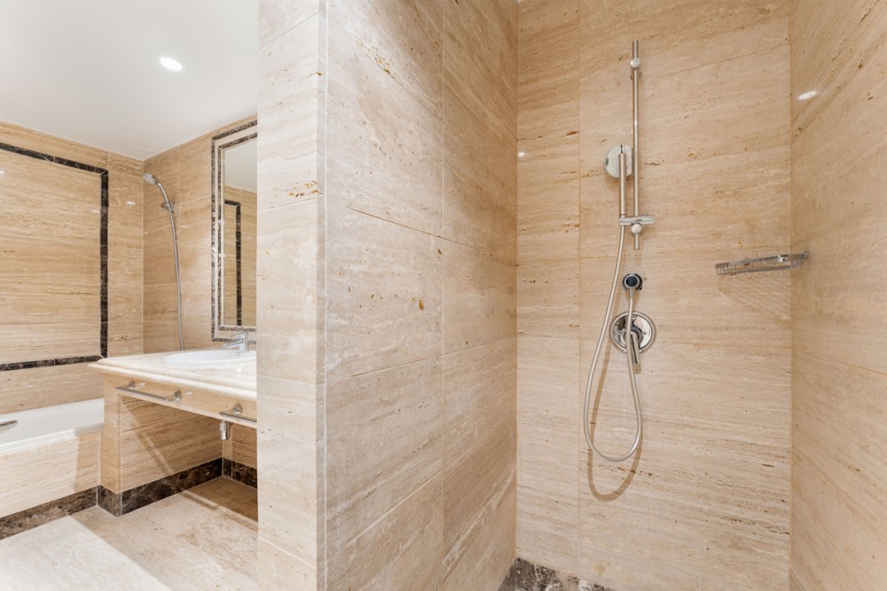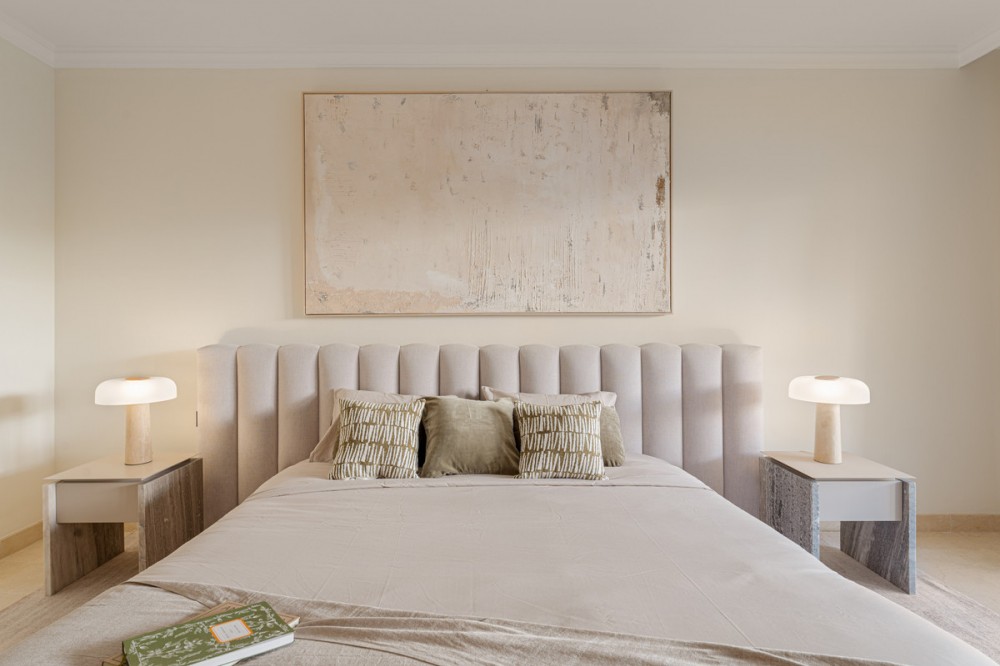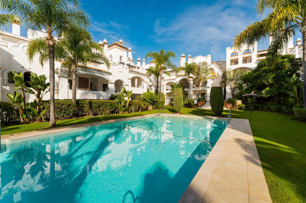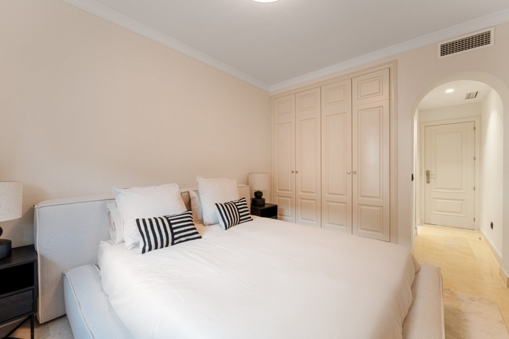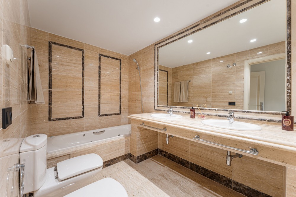 - Apartment Bellomonte is a luxurious apartment located in the prestigious Sierra Blanca area of the Golden Mile. This elevated ground-floor apartment is perfect for buyers seeking comfort, privacy, and an elegant lifestyle. The property offers 173 square meters of interior space, including a 28 m² terrace, creating a harmonious layout ideal for both living and leisure. The entrance opens onto a spacious hallway that immediately conveys the apartment’s generous character. To the right is the main living room with a separate dining area, a large space enriched with natural light and direct access to the covered terrace and private garden. This outdoor extension offers an ideal setting for morning coffee, relaxed reading, or quiet evenings overlooking the landscaped surroundings. On the opposite side of the living room is the kitchen with a breakfast area. The adjoining laundry room is discreetly positioned, supporting the home’s clean aesthetic and keeping household tasks out of sight. The property features three bedrooms, two of them en-suite, and a third bathroom located next to the third bedroom, which serves both privately and for the rest of the apartment. The master bedroom stands out for its generous size, walk-in closet, and direct access to the terrace. The remaining bedrooms maintain the same level of quality, with built-in wardrobes, abundant natural light, and a sense of privacy that makes them suitable for family members or guests. Throughout the interior, the combination of marble floors, wood finishes, and soft neutral tones creates a calm, contemporary atmosphere. Practical features such as electric shutters, bathrooms with underfloor heating, and air conditioning contribute to everyday comfort, ensuring that the apartment remains pleasant in every season. In addition the property has a private underground parking, and storage room, Montebello Las Colinas is known for its secure environment and elevated position, offering residents far-reaching views and a sense of tranquility. The gated community provides 24-hour security with controlled access and CCTV monitoring. Within the development, beautifully maintained gardens surround two large pools that capture panoramic views of the Mediterranean Sea, Gibraltar, and the North African coastline. The setting encourages a low-stress lifestyle while still offering plenty of amenities nearby. The surrounding area of Sierra Blanca is one of the most desirable neighborhoods on the Golden Mile, characterized by luxury villas, high-end apartment complexes, and an atmosphere of exclusivity. Its position at the foot of La Concha mountain provides not only scenic beauty but also immediate access to outdoor activities, including hiking routes leading into the Sierra de las Nieves National Park. Families appreciate the proximity to respected educational institutions such as Swans International School and Laude San Pedro International College, both accessible from the development. Dining and shopping options are particularly strong in this part of the coast. Within a short walk, residents can enjoy renowned restaurants such as Ta-Kumi Japanese Restaurant, Villa Tiberio, and other well-established venues along the Golden Mile. Luxury boutiques and designer stores in Puerto Banús are also nearby, offering a premium retail experience. Transport connections are efficient, with main road access facilitating quick travel throughout the region and direct routes to Málaga–Costa del Sol Airport. With private underground parking, a dedicated storage room, and easy access to all community facilities, Apartment Bellomonte offers a compelling blend of comfort, security, and location advantages. It is an excellent opportunity for buyers seeking a refined home in one of the most established and prestigious residential settings on the Costa del Sol.
