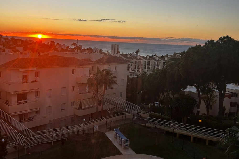 - Experience Mediterranean living at its best in this beautiful fully renovated 2-bedroom, 1-bathroom apartment, ideally situated between Fuengirola and Marbella. Flooded with natural light, the home features a spacious glazed terrace with panoramic, unobstructed sea views, creating a serene atmosphere throughout the property. Inside, you’ll find a master bedroom with a custom-built wardrobe, a stylish bathroom finished with high-quality porcelain, and a modern kitchen equipped with a sleek Silestone countertop—perfect for those who appreciate both elegance and practicality. This apartment also includes a private outdoor parking space, a storage room, and access to the communal swimming pool within the urbanization, ideal for enjoying the warm Costa del Sol climate. Located just 10 minutes from La Cala de Mijas and close to local hotspots such as Miraflores Golf, Sport Riviera Gym, and the popular Max Beach Club, you’ll have all essential services and leisure options within easy reach. A fantastic opportunity to enjoy comfort, sunlight, and breathtaking views in one of the most sought-after areas of the Costa del Sol.