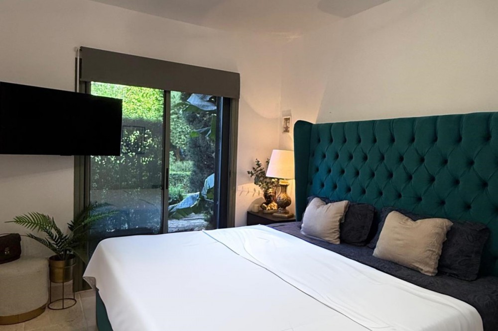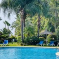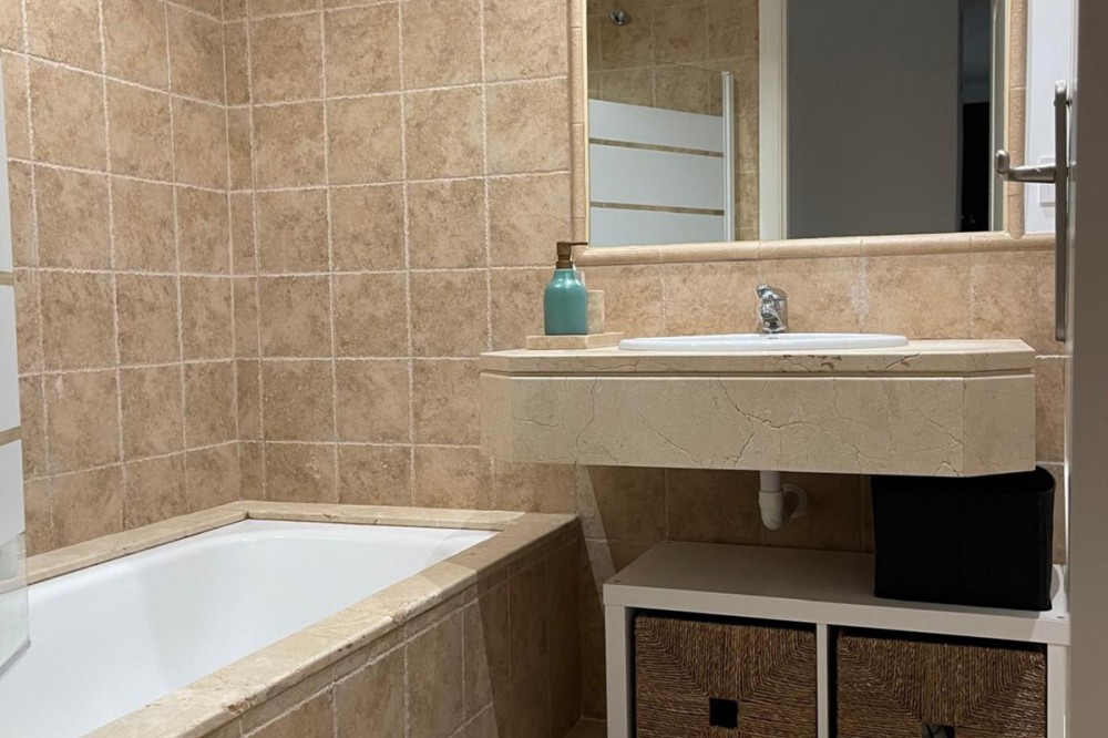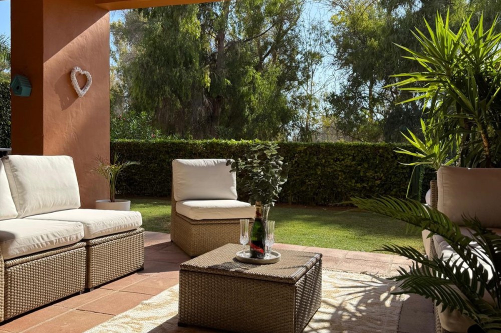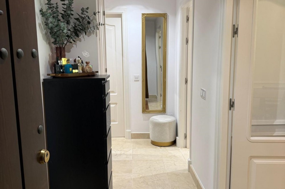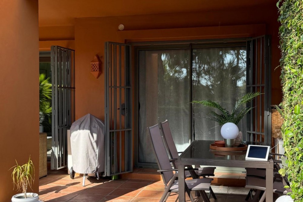 - Presenting an elegant, recently built apartment located in the prestigious Benatalaya development, in the eastern area of Estepona, Málaga. Boasting a privileged frontline golf location and surrounded by all necessary amenities, this property stands out for its comfort and excellent connectivity to public transport as well as the main commercial, educational, and leisure areas of the city. The apartment, with a built area of 140 m² (99 m² of interior space and 41 m² of a spacious private terrace), offers 2 bedrooms and 2 full bathrooms. The interior is characterized by its brightness and functional layout, featuring a spacious living room, fully equipped kitchen, built-in wardrobes, and high-quality finishes such as double-glazed windows and electric shutters. Residents enjoy an array of extraordinary amenities within a gated and secure community, including outdoor and indoor communal swimming pools, gym, sauna, jacuzzi, mature landscaped gardens, and a nearby children's playground. The entrance is equipped with a concierge, elevator, and adapted access, as well as communal garage and storage room. Security is ensured through 24-hour surveillance and assistance, as well as an access control system. This property represents an excellent opportunity for those seeking a high quality of life next to the golf course, surrounded by well-maintained gardens and a tranquil atmosphere, without sacrificing proximity to restaurants, schools, and shops. Its excellent condition, golf and garden views, and location close to all amenities make this apartment an ideal option both as a permanent residence and as an investment.