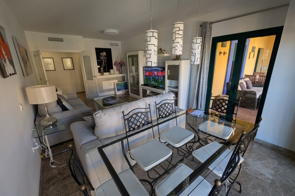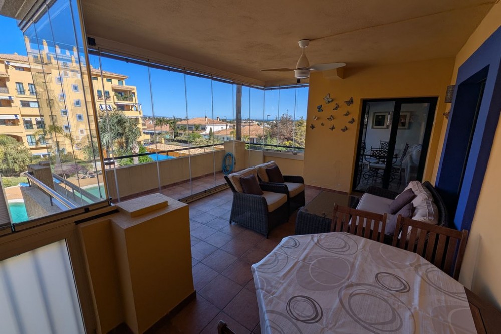 • Discover this exclusive apartment in one of the most sought-after residential areas of Nueva Alcántara, San Pedro de Alcántara. This exceptional property stands out for its generous layout, unbeatable location, and high-quality finishes throughout. With a total built area of 104 m², complemented by a spectacular 28 m² terrace enclosed with Lumon glass, the apartment offers a bright, versatile, and comfortable living space perfect for year-round enjoyment. The property features two spacious bedrooms and two modern bathrooms, designed to provide both functionality and style. The independent kitchen is fully equipped with high-end Italian cabinetry and top-brand appliances, ideal for those who appreciate quality and design. The cozy living-dining area enjoys direct access to the terrace, creating a seamless indoor-outdoor flow that enhances the sense of space and light. Sold fully furnished with tasteful, high-quality furniture, this apartment is ready to move into immediately. Additional features include a private underground parking space, video intercom system, built-in safe, and air conditioning for maximum comfort. Set within a secure gated complex, residents benefit from concierge service, beautifully maintained gardens, and communal swimming pools. Its prime location places you within walking distance of San Pedro Boulevard, the promenade, and the beach, as well as close to restaurants, supermarkets, and international schools. An outstanding opportunity for both permanent living and investment. Contact us today to arrange a viewing.