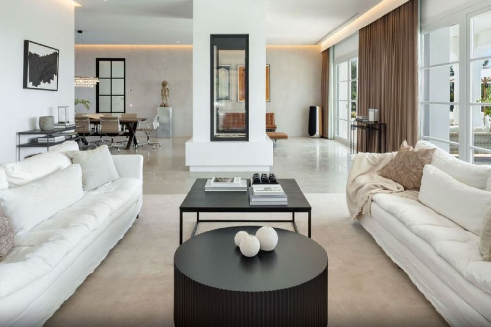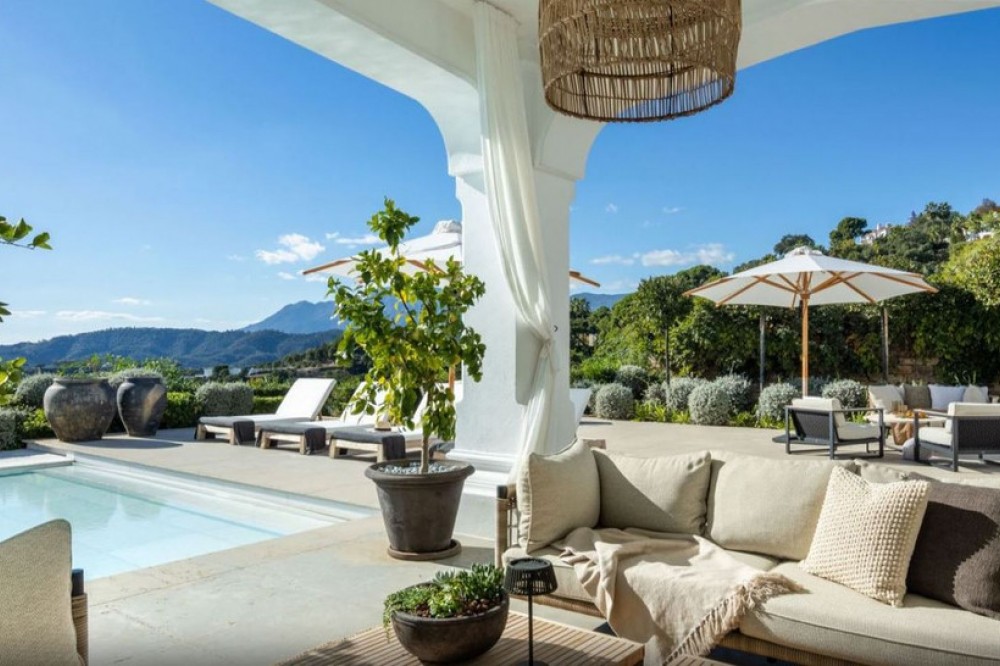 - Set within the prestigious, 24-hour secure enclave of the Marbella Club Golf Resort, this Andalusian-inspired yet contemporary mansion offers an extraordinary fusion of timeless elegance and modern luxury. The exclusive resort is home to an exceptional 18-hole golf course designed by the legendary Dave Thomas, alongside renowned equestrian facilities that host the Spanish Show Jumping Championships. Upon entering, you are greeted by an expansive lounge featuring a sleek glass fireplace that frames stunning views of the 113 m² pool, manicured gardens, and the Mediterranean Sea. The pool area has been enhanced with premium features, including a heated system, electric cover, and solar panels dedicated to water heating, ensuring year-round enjoyment with exceptional energy efficiency. Adjacent to the main living space, a private TV room and a sophisticated formal dining area provide ideal settings for both relaxation and entertaining. The ground floor also includes two spacious en-suite bedrooms, each with direct access to the landscaped gardens adorned with exquisite stonework, creating a serene atmosphere. The open-plan modern kitchen, equipped with high-end Gaggenau appliances, combines sleek Scandinavian design with superior functionality, making it perfect for daily use or hosting guests. Upstairs, the master suite impresses with a bespoke dressing room and a luxurious marble bathroom, featuring a sculptural bathtub with panoramic views of the sea and Gibraltar. Two additional bedrooms and a fully appointed bathroom complete this level, ensuring comfort and privacy throughout. Leisure and wellness features include a private gym, sauna, steam room, and a dedicated cinema room fitted with Bang & Olufsen technology. Outdoors, generous terraces and a built-in kitchen with barbecue offer breathtaking views of the sea, Gibraltar, and North Africa, with a south-facing orientation ensuring sun from sunrise to sunset. Security and convenience are paramount, with perimeter alarms, surveillance cameras, and parking for up to ten vehicles, including a closed garage and covered carports. Residents also enjoy access to the resort’s clubhouse, acclaimed for its elevated Mediterranean cuisine and tranquil lake views. With six bedrooms, six bathrooms, premium finishes, advanced technology, and thoughtfully designed leisure spaces, this mansion offers an exceptional lifestyle of privacy, style, and sophistication in one of the Costa del Sol’s most sought-after locations.