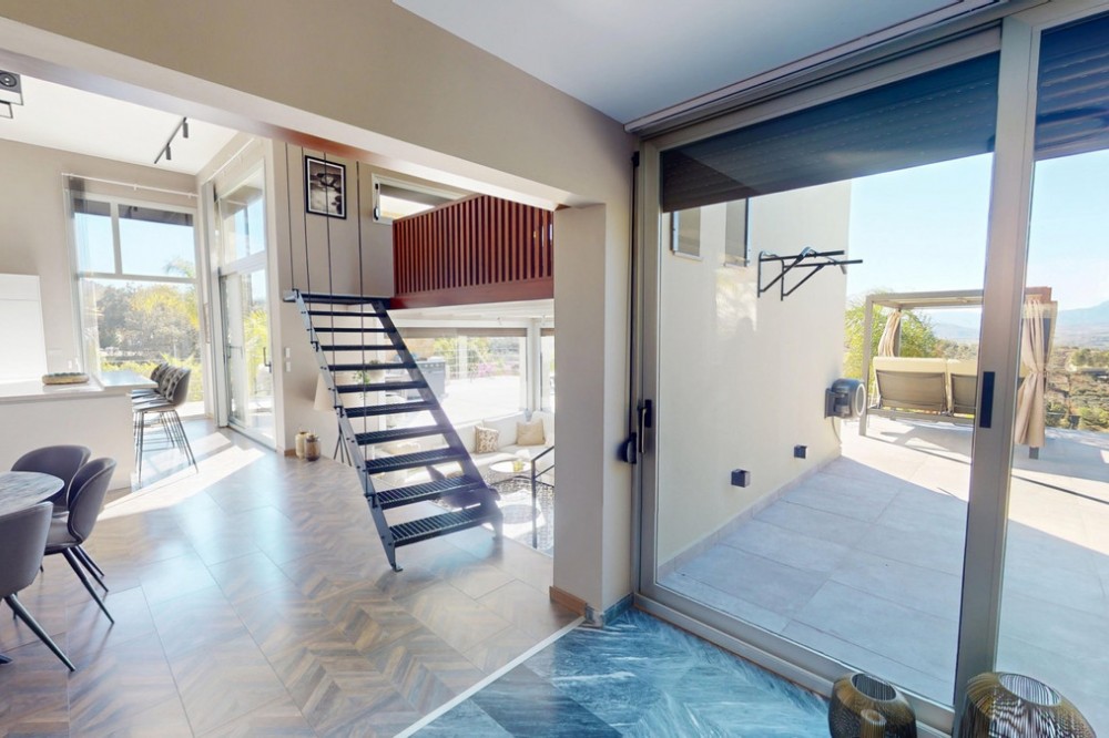 • Exclusive Estate with Guest Apartment and Equestrian Facilities in Álora This exceptional estate in Álora combines generous living spaces, absolute privacy, and a privileged natural setting ideal for those seeking comfort, tranquillity, and versatile usage possibilities at a high level. Surrounded by breathtaking scenery, this property offers a truly unique lifestyle in the heart of Andalusia. The main residence impresses with its spacious layout and abundant natural light. It features a large open-plan living and dining area with kitchen, forming the heart of the home, as well as a second living room on a bright mezzanine level, ideal as a lounge or private retreat. The house offers three bedrooms, two full bathrooms, and a guest toilet. The master suite includes an en-suite bathroom and a walk-in dressing room, ensuring maximum comfort and privacy. From the kitchen, you step out onto a generous terrace with stunning mountain views, perfect for a chill-out area or an elegant outdoor dining and BBQ space surrounded by nature. Outside, the property features a separate guest apartment with a full bathroom, ideal for visitors, family members, or staff. A swimming pool, harmoniously integrated into the surroundings, completes the outdoor area. Beneath the main house lies a large area with multiple potential uses, which can be customized according to the future owners needs such as a gym, studio, workshop, or leisure space. In addition, there is a garage that could easily be converted into another guest apartment with spectacular views by adding windows. One of the standout features of this estate is the extensive plot, offering complete privacy and excellent conditions for horse keeping. The property includes a riding arena, stables, ample space for paddock grazing, and holds an official license for up to five horses a rare opportunity for equestrian enthusiasts and nature lovers alike. This is far more than a home it is a lifestyle concept, where freedom, nature, and exclusive living come together in perfect balance. We would be delighted to present this remarkable property to you, either in person or via virtual viewing. Because this world is unique just like our Axarquía. In Andalusia. On the Costa del Sol. Here, on the sunny side of life.