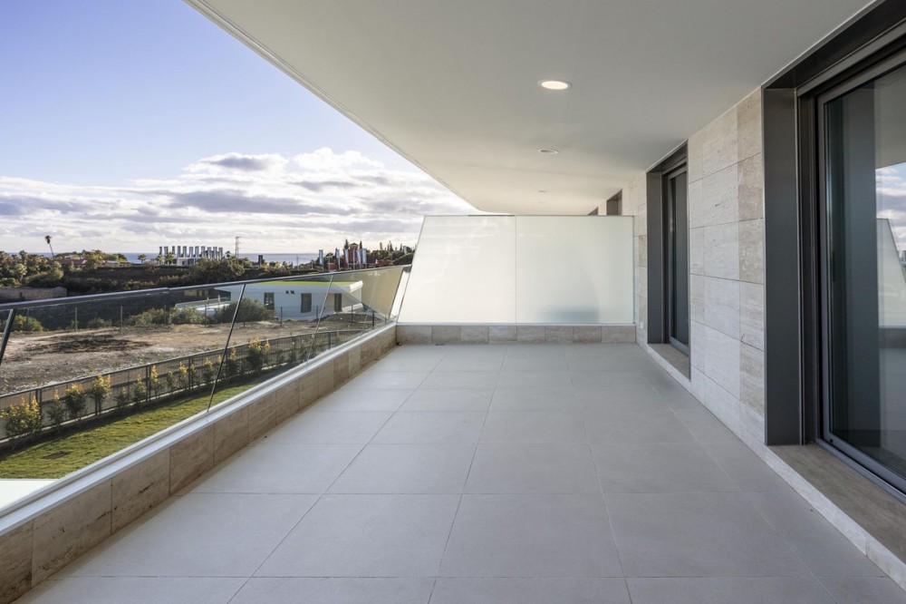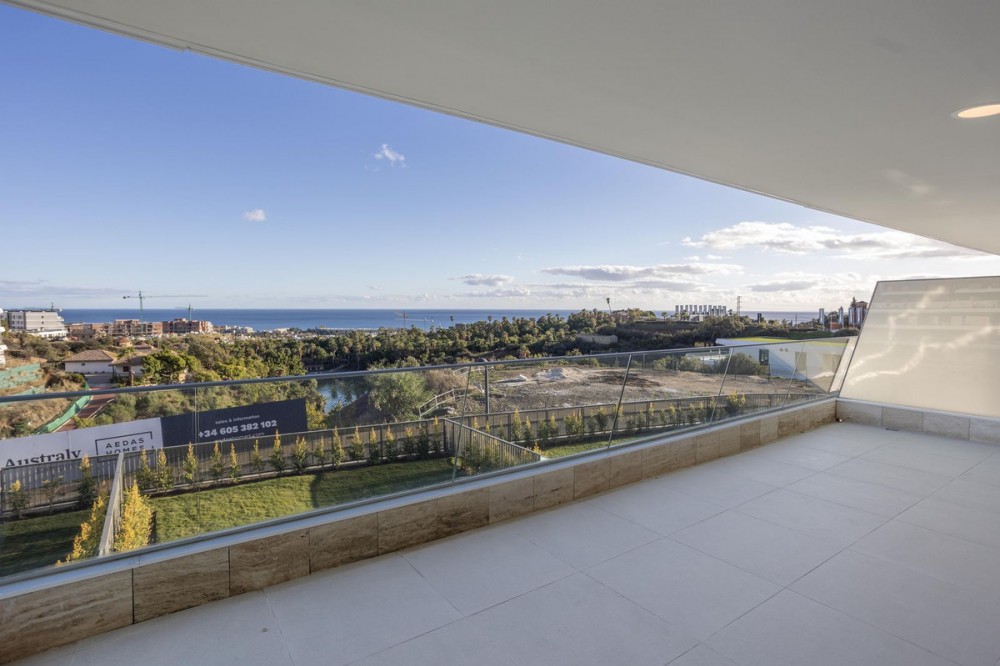 - Luxury Two-Bedroom Apartment with Panoramic Sea Views Experience refined Mediterranean living in this elegant two-bedroom, two-bathroom apartment, set within an exclusive, newly built luxury complex, perfectly positioned between San Pedro de Alcántara and Estepona on the New Golden Mile. Designed with a spectacular modern yet timeless architectural style, the residence combines clean lines, natural materials, and generous open spaces to create a sophisticated and enduring aesthetic. Completed in December 2025, the development offers a contemporary lifestyle defined by comfort, light, and quality. The apartment is south-facing, enjoying all-day sun, and features a spacious private terrace ideal for outdoor living. From the terrace, living room, and master bedroom, you are treated to stunning panoramic sea views over a beautiful green valley with a lake. Inside, the home offers a stylish open-plan layout with floor-to-ceiling windows and high-quality materials and finishes throughout the entire apartment. Both bedrooms are generously sized, with the master suite offering an en-suite bathroom and direct access to the terrace. Residents benefit from outstanding wellness and leisure facilities, including: - Indoor swimming pool - State-of-the-art fitness centre - Sauna and spa - Beautifully landscaped communal areas - Secure, modern surroundings designed for privacy and comfort Despite its peaceful and elevated position, the beach is just 2 km away, providing easy access to sandy beaches, beach clubs, and coastal promenades. A perfect harmony of architecture, nature, light, and beautiful sea views.