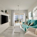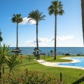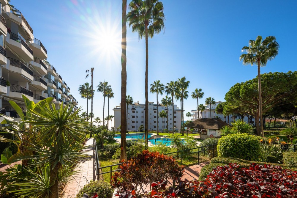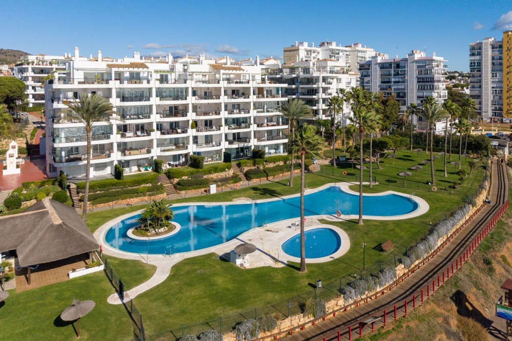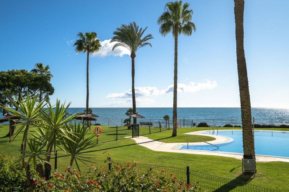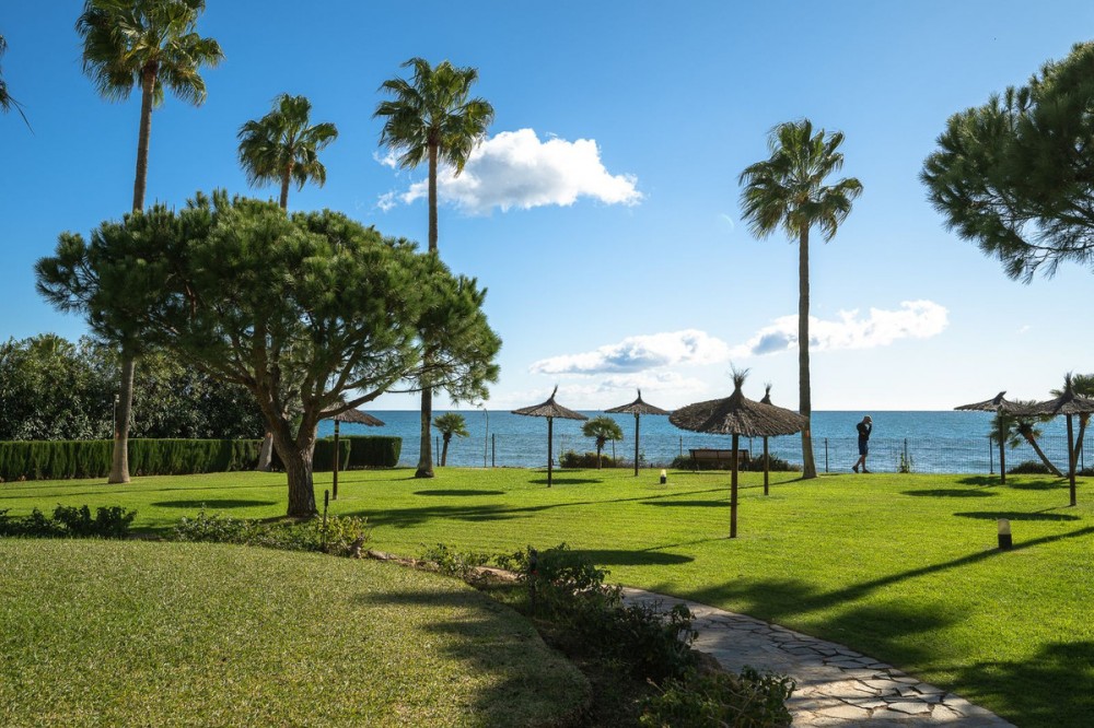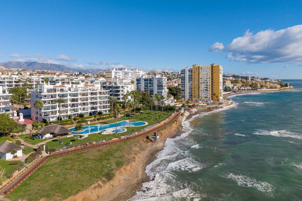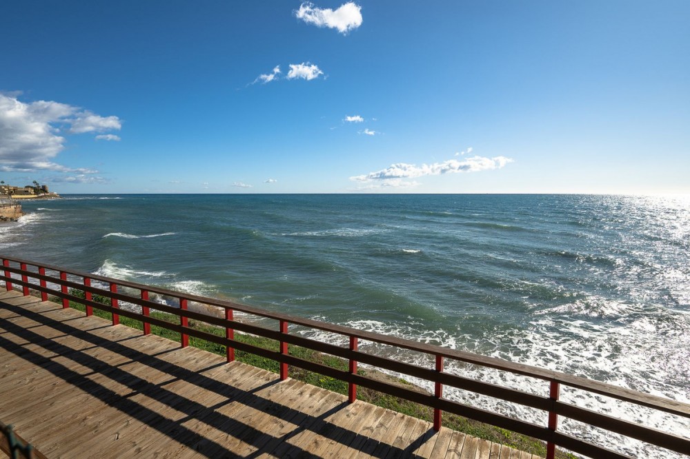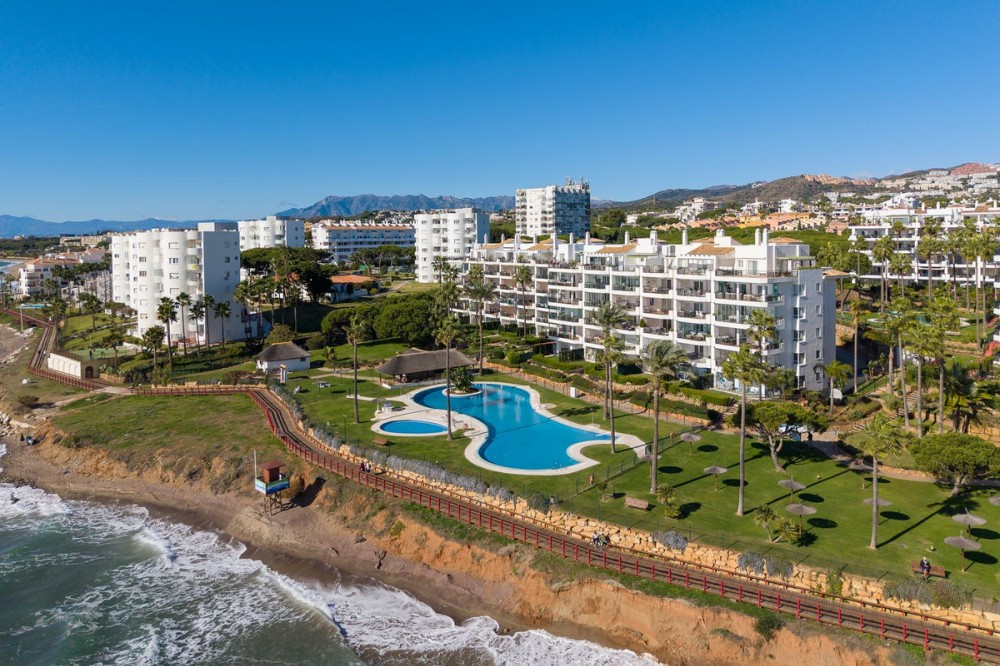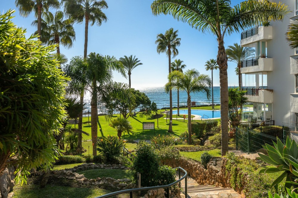 - Frontline Beach 2-Bedroom Apartment in Mi Capricho, Calahonda We are delighted to present this beautiful 2-bedroom, 2-bathroom beachfront apartment, ideally located in the prestigious and well-established Mi Capricho urbanisation in Sitio de Calahonda, Mijas Costa. Set within an exclusive gated community with direct access to the promenade and beach, this property offers an exceptional blend of lifestyle, comfort, and investment potential on the Costa del Sol. Positioned on the second floor and accessible by both lift and stairs, the apartment is ready to move into and is sold fully furnished, featuring tasteful finishes and exclusive details throughout. The bright and spacious living area opens seamlessly onto a large private terrace with both dining and lounge areas, where you can enjoy stunning views of the Mediterranean Sea, the communal swimming pools, and the beautifully landscaped gardens accompanied by refreshing sea breezes and the gentle sound of the waves. The apartment offers two generous bedrooms, both with built-in wardrobes. The master bedroom features an en-suite bathroom and direct access to the terrace, while the second bedroom is fitted with two single beds that can be arranged together or separately. Both bathrooms have been stylishly renovated and include underfloor heating, adding an extra level of comfort and luxury. A separate fully equipped kitchen and utility room complete the interior layout. The Mi Capricho community is renowned for its excellent maintenance and welcoming atmosphere. Residents enjoy 24-hour security, daytime concierge service, and nighttime caretaking, along with two large swimming pool areas for adults, separate children’s pools, lush manicured gardens with flowers, lawns, palm trees, playgrounds, a fenced children’s ball court, guest parking, and a poolside bar serving food and drinks. The upper pool is open year-round, while the lower pool operates from April to October with lifeguard supervision. Conveniently, there are also two communal toilets within the complex. The entire development faces the sea and offers expansive outdoor areas with benches and ample space for sun loungers, whether in shaded areas or full sun. Residents may use their own loungers or rent them directly from the pool bar. The complex features two direct exits to the beachfront promenade, one of which is equipped with a wheelchair- and stroller-friendly ramp. From here, you can enjoy scenic walks stretching from Fuengirola and La Cala de Mijas to Cabopino and Marbella. Additional features include an underground garage parking space, also accessible by lift. For those who prefer not to drive, bus stops and taxi ranks are within easy walking distance, offering direct connections to Fuengirola and Marbella. The Seamen’s Church is nearby and hosts regular events and activities for both adults and children, with numerous restaurants, bars, shops, and services located along the way. Ideally situated within walking distance of La Cala de Mijas, with its charming village atmosphere, beaches, restaurants, and amenities, and just 39 km from Málaga Airport, this apartment is perfectly positioned for year-round living or rental demand. Whether you are seeking a luxury holiday home, a stylish permanent residence, or a strong rental investment, this exceptional frontline beach apartment truly ticks every box.