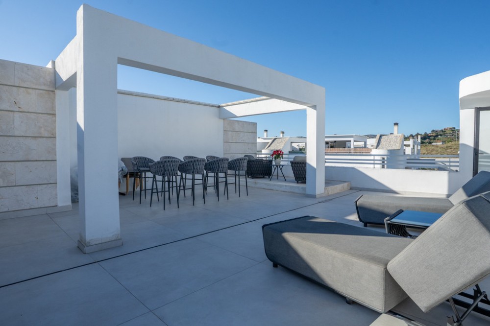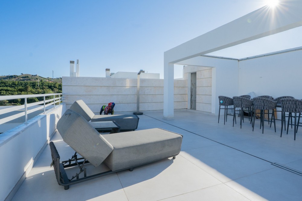 - This exceptional luxury apartment offers an inviting blend of sophistication and comfort, perfect for those seeking an elegant lifestyle on the Costa del Sol. With its generous proportions and beautifully designed spaces, this residence is ideal for enjoying both tranquil moments and lively gatherings. The property’s expansive private terrace and stunning mountain views create a serene atmosphere, while the proximity to amenities, golf courses, and the beach ensures a vibrant and convenient lifestyle. The apartment comprises two spacious bedrooms and three modern bathrooms, all finished to the highest standards. The interior spans 155m², complemented by a remarkable 96m² terrace, providing ample space for relaxation and entertaining. The living room is bright and airy, seamlessly connecting to the private terrace, and features double glazing and fitted wardrobes for added comfort and practicality. The property has been recently renovated and is presented in excellent condition, reflecting a commitment to quality and style. Residents benefit from a wealth of communal facilities, including a beautifully maintained pool and garden, all within a secure gated community. The building is equipped with a lift and offers a private garage, ensuring convenience and peace of mind. Security is paramount, with a 24-hour service, alarm system, security shutters, and a secure entrance, allowing residents to enjoy their home with complete confidence. Additional features include air conditioning, a smart home system, solarium, and covered terrace, enhancing the overall living experience. The apartment is ideally situated close to schools, the sea, and renowned golf courses, making it a superb choice for families, professionals, or anyone seeking a luxurious and carefree lifestyle in one of the most desirable areas of the Costa del Sol. This is a sole agency opportunity not to be missed for discerning buyers looking for a premium property in a prime location.