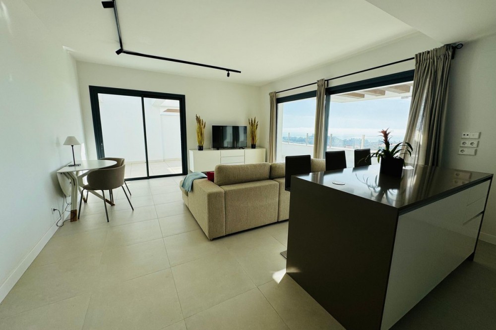 - This impressive modern penthouse apartment is located in la Cala de Mijas. This attractive gated complex enjoys a gym spa and indoor heated pool. The apartment itself really has the wow factor with panoramic views and open plan kitchen and living rooms. 2 massive terraces ,morning and afternoon sun with the amazing view to the Mediterranea sea on one side and to Mijas Pueblo on the other side .This is a 2.beds / 2 bathrooms Apartment in Ipanema ,a few minutes away from the lovely fishing village of La Cala de Mijas ,close to Calanova golf with the best local Restaurant in walking distance. Lots of light and opportunity to do a 3 rd room from one of the terraces-This is a property to be seen to get the right feeling Underground garage ,Storage room,Sauna,Hammam turkish sauna,hot indoor pool, Fitness centre....... Easy viewing 24/7