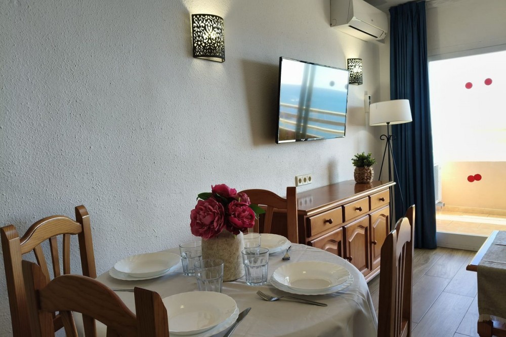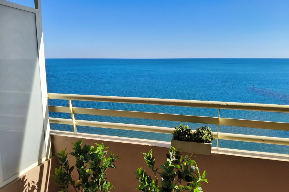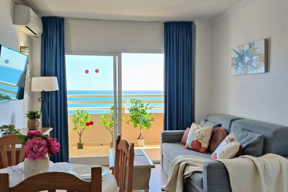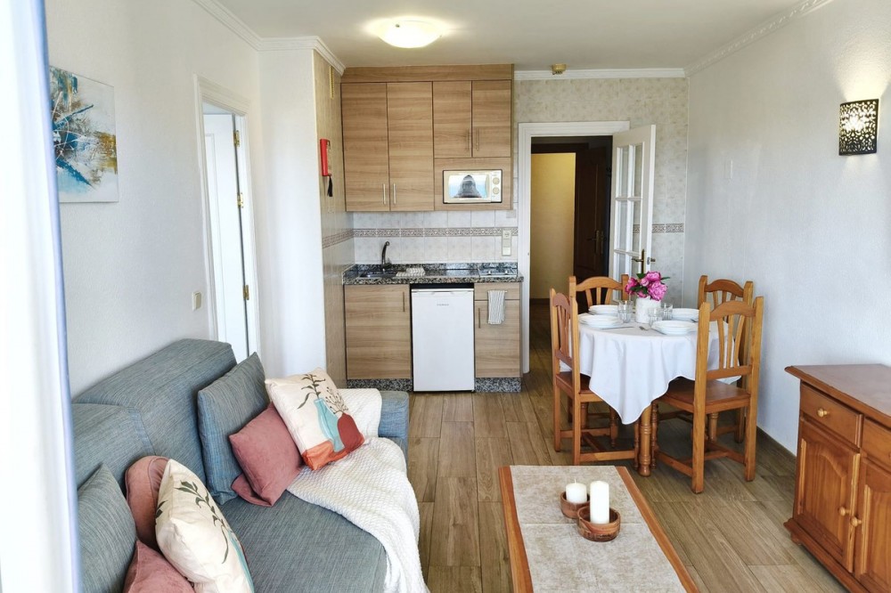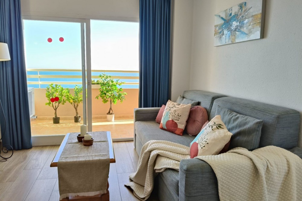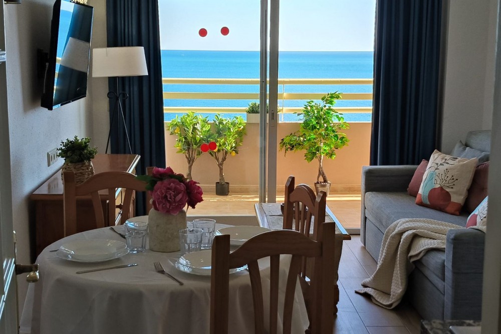 - Middle Floor Apartment, Fuengirola, Costa del Sol. 1 Bedroom, 1 Bathroom, Built 51 m², Terrace 8 m². Setting : Beachfront, Town, Commercial Area, Port, Close To Shops, Close To Sea, Close To Town, Close To Schools, Urbanisation, Front Line Beach Complex. Orientation : South East. Condition : Excellent. Pool : Communal. Climate Control : Air Conditioning. Views : Sea, Beach, Panoramic, Street. Features : Covered Terrace, Lift, Fitted Wardrobes, Near Transport, Private Terrace, WiFi, Access for people with reduced mobility, 24 Hour Reception, Restaurant On Site, Courtesy Bus, Near Church. Furniture : Part Furnished. Kitchen : Fully Fitted. Security : Gated Complex, 24 Hour Security. Parking : Street. Utilities : Electricity, Drinkable Water. Category : Beachfront, Resale.