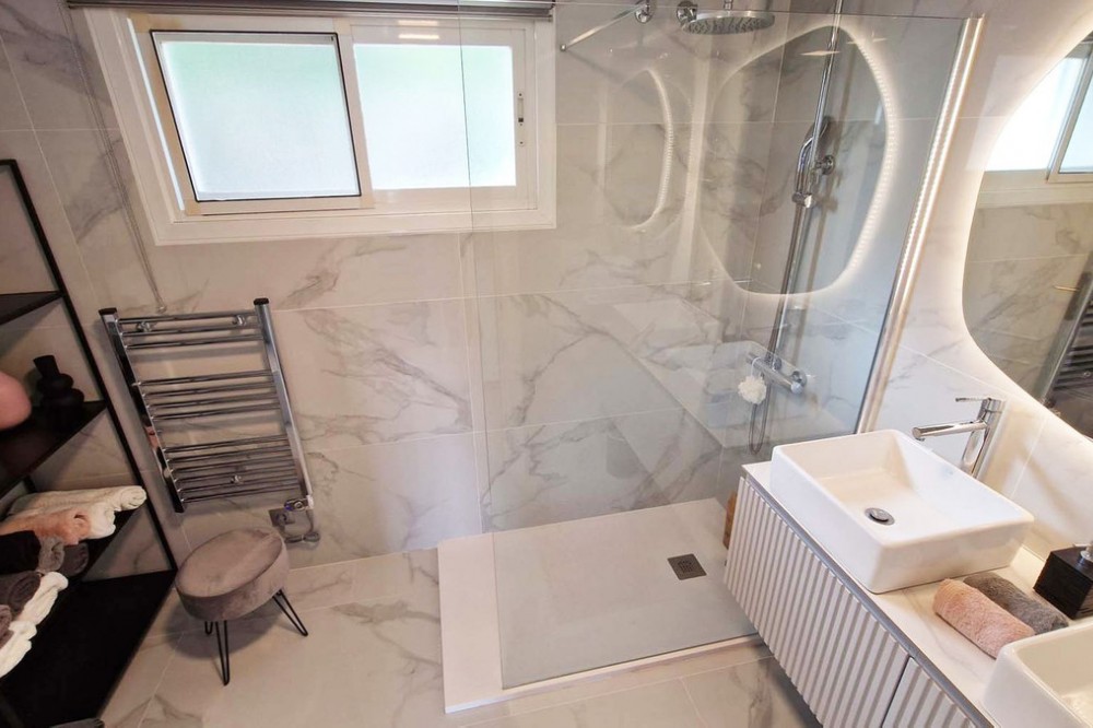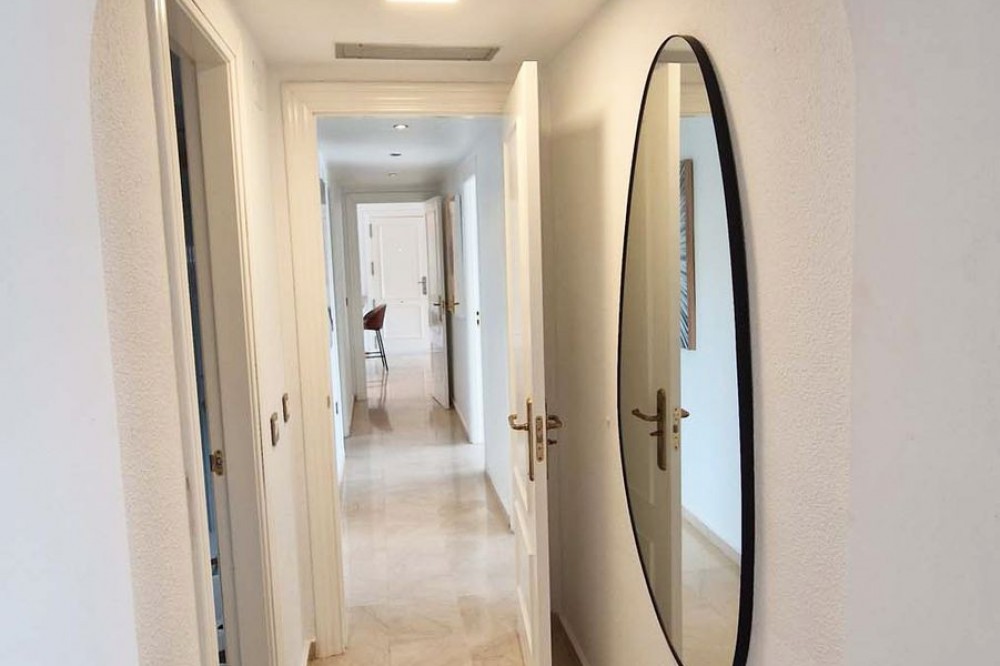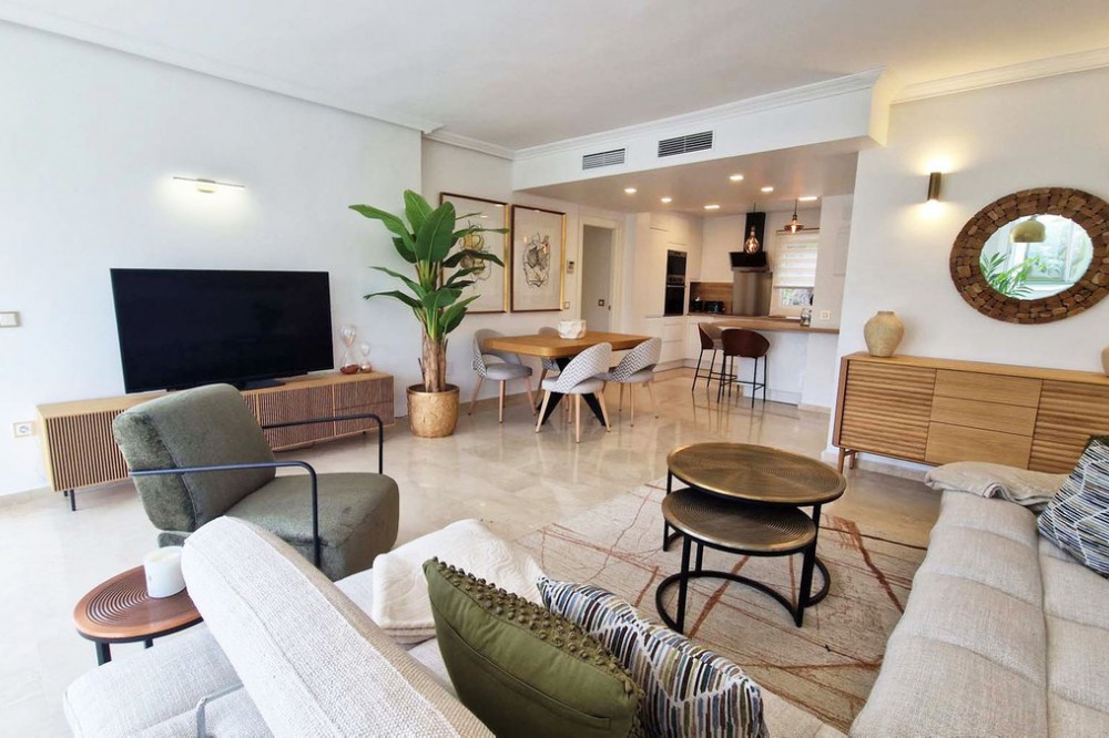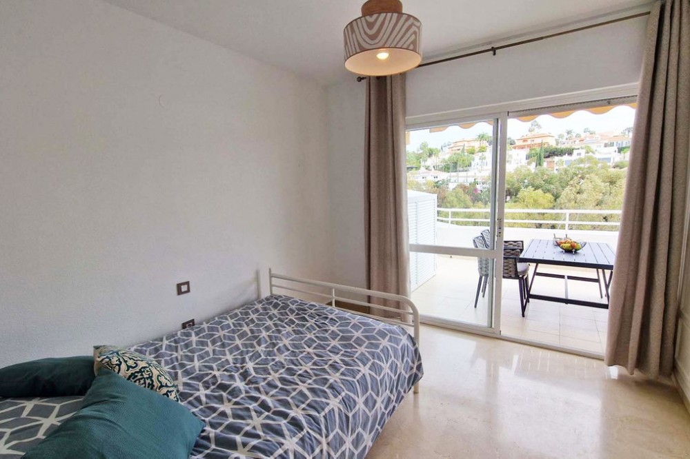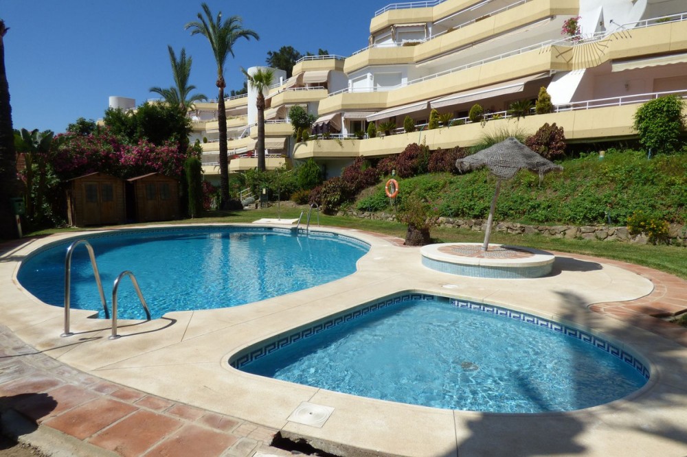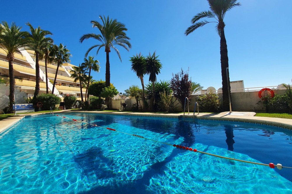 - Very nice renovated 3 bed 2 bath (one in suite) penthouse for sale just 300 meters from the seafront and the beach in Benalmaadena Costa. This property has been renovated by the current owners. Electricity, plumbing, new kitchen, bathrooms completely changed also. Air conditioning system is also distributed in all the rooms. Electric shutters in all rooms. If you are looking for a property in perfect condition, this should be the one for you! Just in front of the golf course of Torrequebrada, so nothing can be constructed in front of this apartment. It enjoys very good sunshine and enjoys a very pleasant view of the golf course of Torrequebrada and the sea from the very large terrace and the roof-top. It is sold with a parking space included in the sale price. The urbanisation (secured) has two swimming pools for adults and a small swimming pool for children. Very quiet and relaxing place, secure, with two large supermarkets within 2 minutes by car, various restaurants, pharmacies, hairdresser, bazar etc... Three international colleges are present in a very close perimeter as well as hotels. Very rare quality apartment in a nice location. Sold fully furnished. Malaga airport at just 20 minutes driving distance.