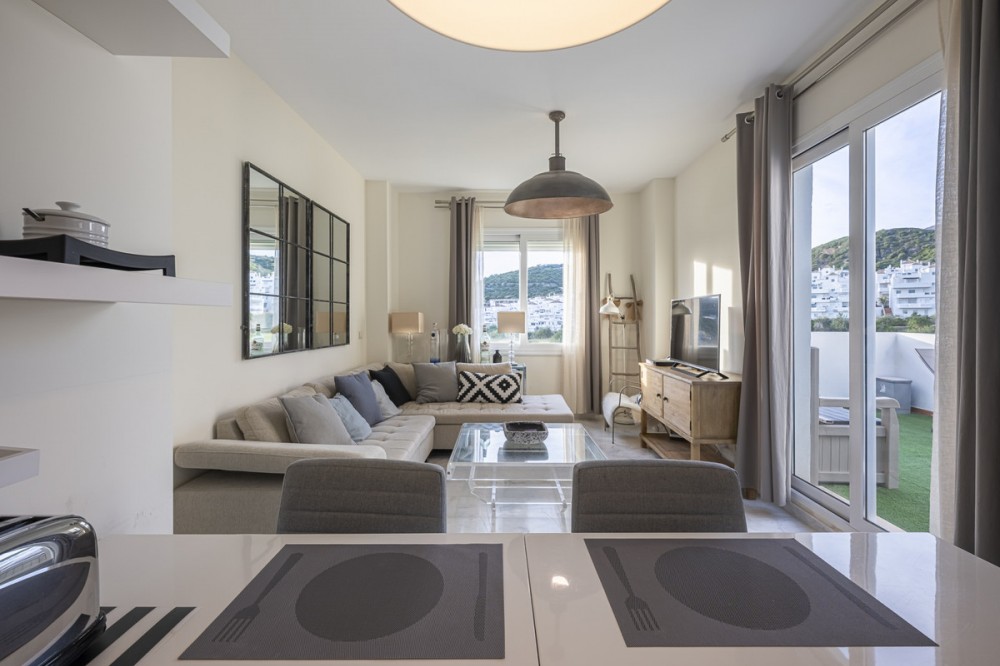 - This bright and stylish two-bedroom apartment features a spacious master bedroom with an ensuite bathroom, a modern fully equipped kitchen, and a comfortable open-plan living area that leads onto a southwest-facing terrace with fantastic views over the Valle Romano Golf Course. Ideally located just moments from the supermarket and the golf clubhouse, the property offers exceptional convenience. It is only a 10-minute drive from Estepona, giving you quick access to the beach, marina, and vibrant town centre. The apartment is sold furnished with high-quality, contemporary furniture and is presented in excellent condition throughout. Both bedrooms are bright and airy, making this a perfect home, holiday retreat, or rental investment on the Costa del Sol.