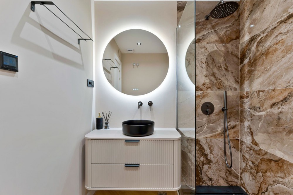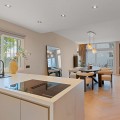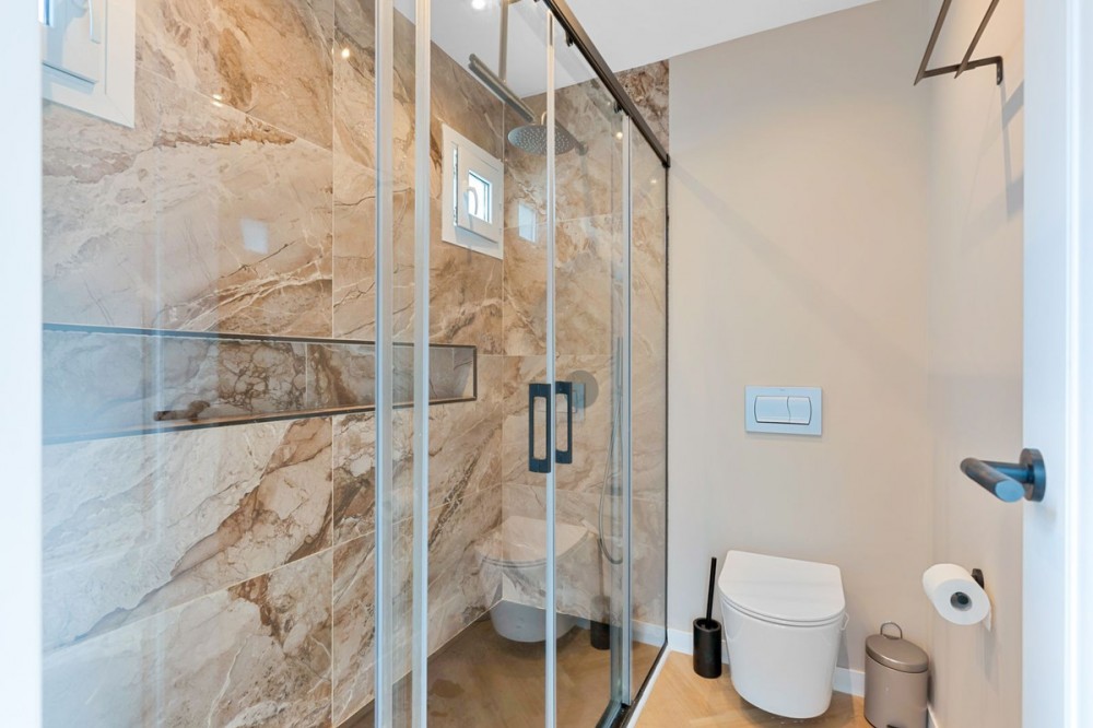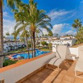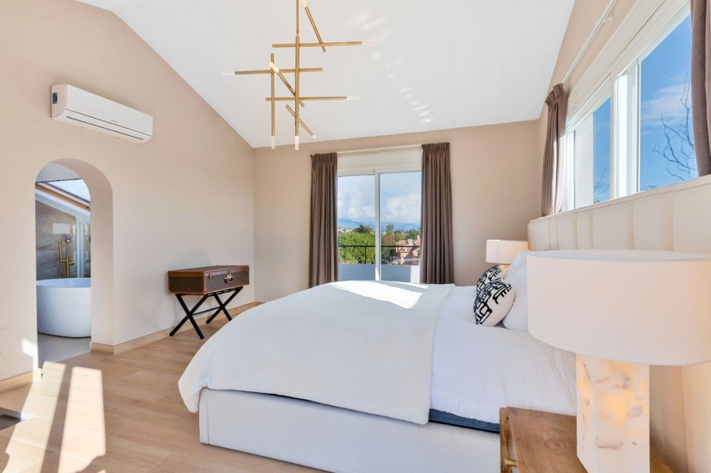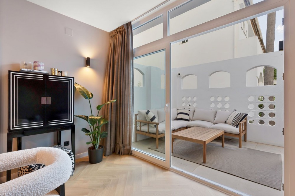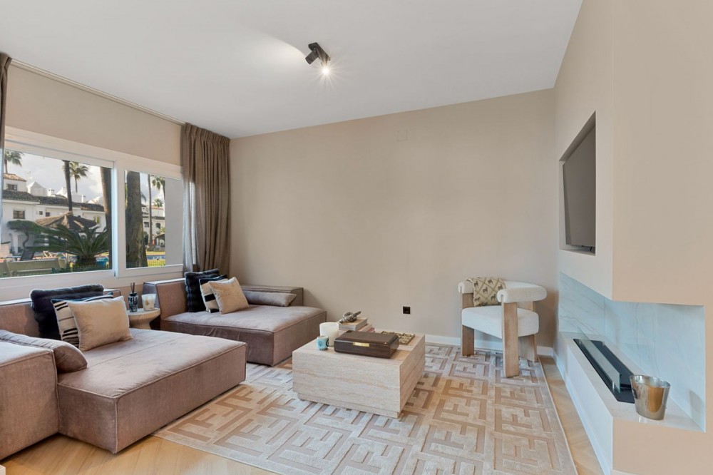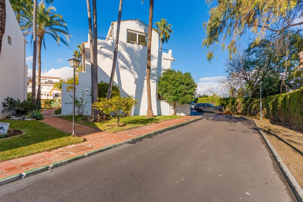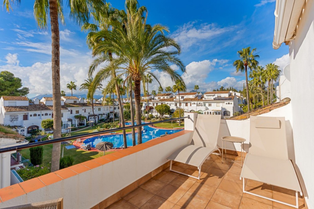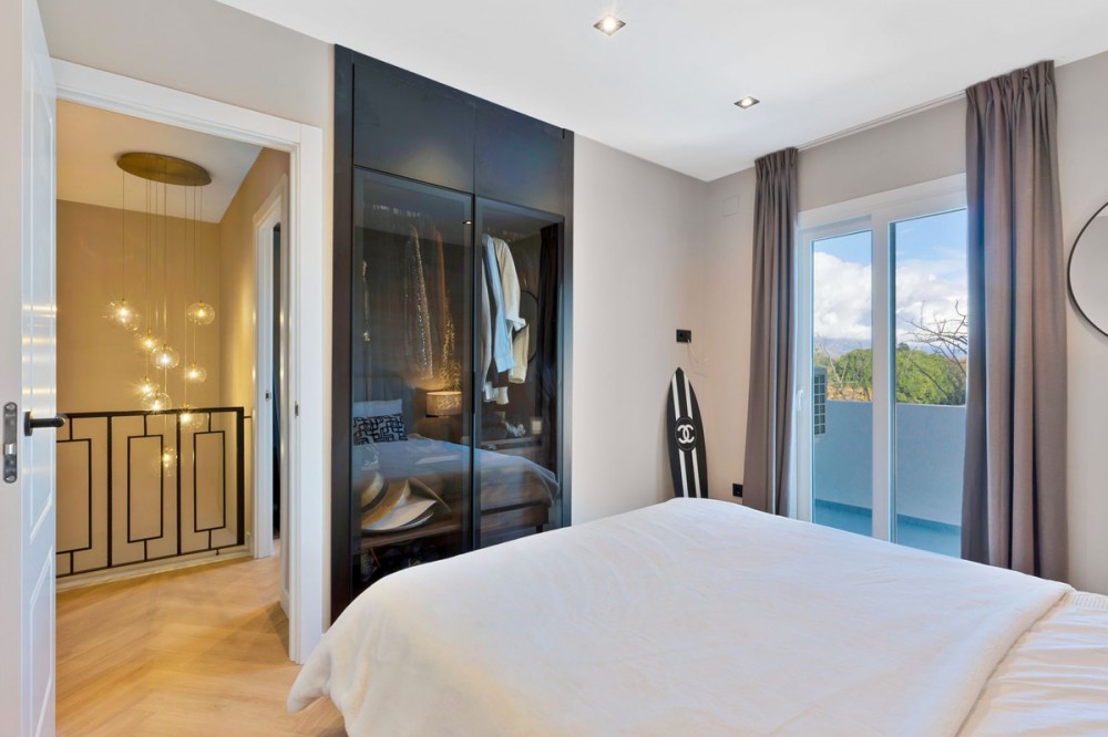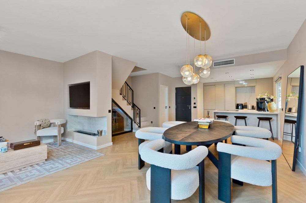 - Beachside townhouse with luxury finishes ideal for residential use or as a holiday home. Corner townhouse located in Atalaya-Isdabe one step away from Guadalmina Baja a short stroll from the beach, with excellent nearby facilities such as shops, supermarket and restaurants as Salduna. A connected beachfront promenade runs all the way to Estepona, perfect for walking, jogging, or cycling on a sunny day. Parking is conveniently located directly in front of the house, with a second parking space just around the corner. Short-term rentals are not permitted. What does this property offer: 160 m² built | 40 m² outdoor space 4 Bedrooms | 3.5 Bathrooms 2 Patios | 4 Balconies 2 Outdoor Parking Spaces Completely modernized | Underfloor heating High en kitchen appliances | Induction with integrated ventilation Central AC on the ground floor | Individual AC units in bedrooms Quiet community with large garden | Communal swimming pool Storage space on ground and top floor South, East, West orientation (corner house) Ground Floor The spacious living room seamlessly integrates with the dining area, creating a warm and inviting openliving space. A cleverly designed layout enhances both comfort and functionality, with natural light flows throughout the room. The modern open-plan kitchen is finished with clean, contemporary materials and offers pleasant outdoor views while cooking. Underfloor heating throughout the living area ensures year-round comfort. A stylish bio-ethanol fireplace adds a cosy focal point to the space. A dedicated space with a steel-framed glass door has been prepared for a temperature-controlled wine cabinet positioned under the stairs, providing a unique and elegant feature for wine enthusiasts. Practical storage and a washing machine are discreetly located behind the kitchen area, keeping the space uncluttered. A separate guest toilet with a sink is conveniently located for visitors. The living area connects beautifully to the outdoor spaces, featuring a private terrace at the entrance and an additional private terrace at the rear, directly accessible from the dining area, offering a perfect connection to the outdoor area and the communal swimming pool. First Floor This level is arranged around a central hallway and staircase, providing access to the private sleeping quarters. It features three bedrooms, each benefiting from natural light and built-in wardrobe space. Bedroom 1: Direct access to a ensuite bathroom with a double shower head, spacious build in wardrobe, and views over the communal garden and swimming pool. Bedroom 2: Centrally positioned and ideal as a guest room or child’s bedroom, includes a build in wardrobe, small outdoor space and views of La Concha and access to a shared bathroom. Bedroom 3: Currently used as a walk-in closet, could also be perfect as a kids bedroom or home office, with views of La Concha. All bedrooms are equipped with individual air conditioning and underfloor heating. The second floor includes an extra bathroom on the hallway, conveniently positioned to serve the two other bedrooms. A well positioned staircase ensures smooth circulation to the next level. Overall, this level offers a practical and comfortable layout, combining privacy, natural light, and functionality ideal for family living or guests. Second Floor (bedroom 4) The top floor offers a generous 20 m² bedroom with ensuite bathroom designed for full privacy and comfort. Large windows offer breathtaking panoramic views, filling the space with natural light and creating a seamless connection to the outdoors. The suite is complemented by two terraces. One terrace overlooks the communal swimming pool with stunning sea views, while the second terrace offers stunning mountain views of La Concha ideal for enjoying both sunrise and sunset in complete privacy. Furniture is not included in the price, but this can be discussed.