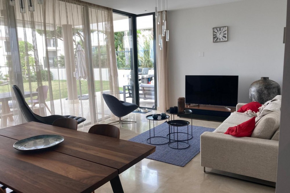 - A rare opportunity to won a really good ground floor apartment in Cabopino, with 3 bedrooms and 2.5 bathrooms, and with an expansive private garden. The apartment is facing west and is elevated and very secure due to it's location within the community and not on the outside of it.