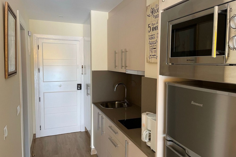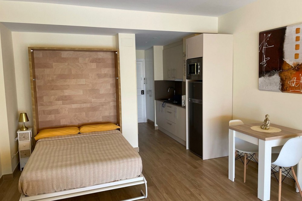 - Renovated Studio Apartment with Sea Views in Torremolinos Beautiful 40 m² studio apartment for sale in Torremolinos, ideal for both living and investment. Built in 1974, this fully renovated apartment is ready to move into. It features a full bathroom with a shower, a furnished and equipped kitchen, and a pleasant living area with laminate flooring. It also has split-type air conditioning for added comfort. The apartment boasts a terrace with awnings and beautiful sea views, perfect for enjoying the Costa del Sol climate. Located in a gated community with a communal swimming pool and gardens, it's ideal for relaxing or enjoying the summer months. Community fees are €120/month. The apartment is being sold fully furnished, making it an excellent opportunity as a second home or for holiday or long-term rentals. Don't miss this opportunity in one of the most sought-after areas of Torremolinos! In accordance with Decree 218/2005 of October 11, which approves the Regulation on Consumer Information in the Sale and Rental of Housing in Andalusia, the client is hereby informed that notary fees, registration fees, property transfer tax (ITP), and other expenses inherent to the sale or rental are not included in the price. Brokerage fees are included in the price. The information provided, including surface areas, prices, conditions, and availability of the property, is for informational purposes only and does not constitute a binding contractual offer. It may be subject to change without prior notice, and the availability of the property must be confirmed at the time of inquiry. Energy performance certificate pending.
