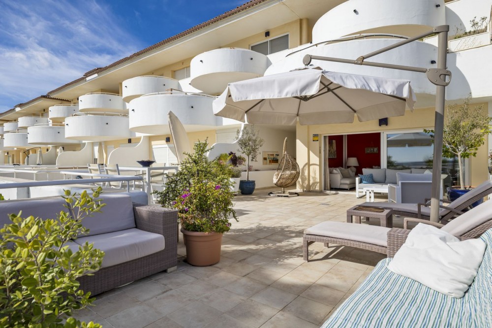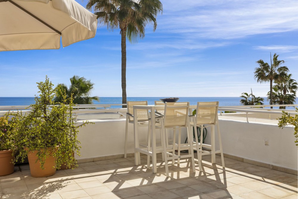 - Set in the highly desirable beachfront area of Buenas Noches, Estepona, this exceptional frontline beach apartment offers direct access to the Mediterranean Sea and breathtaking uninterrupted panoramic sea views. Designed for relaxed coastal living, the property features two generous bedrooms and two modern bathrooms, providing comfort and functionality throughout. The bright interior includes a spacious open-plan living and dining area that opens onto a large private terrace, where floor-to-ceiling windows flood the home with natural light and showcase stunning views of the coastline. The well-designed kitchen is both practical and inviting. The highlight of this apartment is the expansive terrace overlooking the beach, perfect for outdoor dining, sunbathing, or enjoying the sound of the waves just steps away. Residents benefit from beautifully maintained communal gardens, a swimming pool with sea views, and secure parking. With easy access to public transport, local shops, restaurants and amenities, this move-in-ready property represents a rare opportunity for true beachfront living in Estepona, ideal as a permanent residence, holiday home or high-quality investment on the Costa del Sol.
