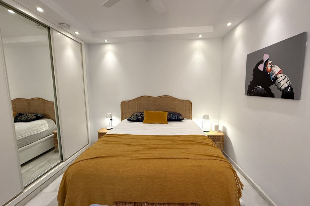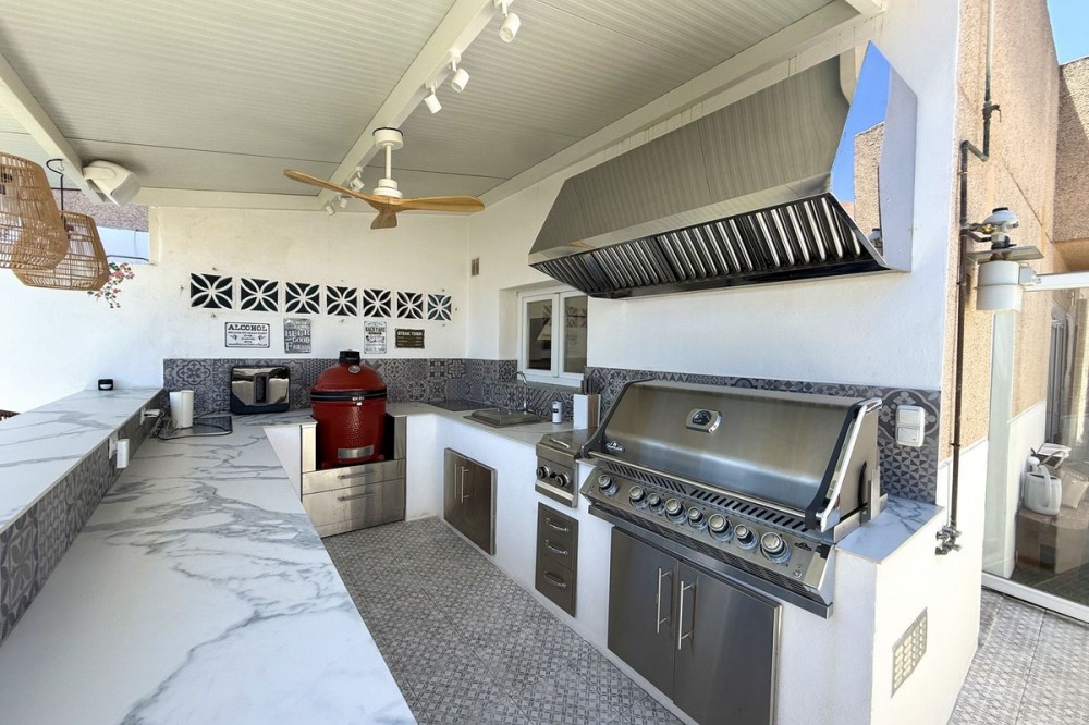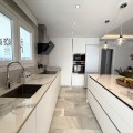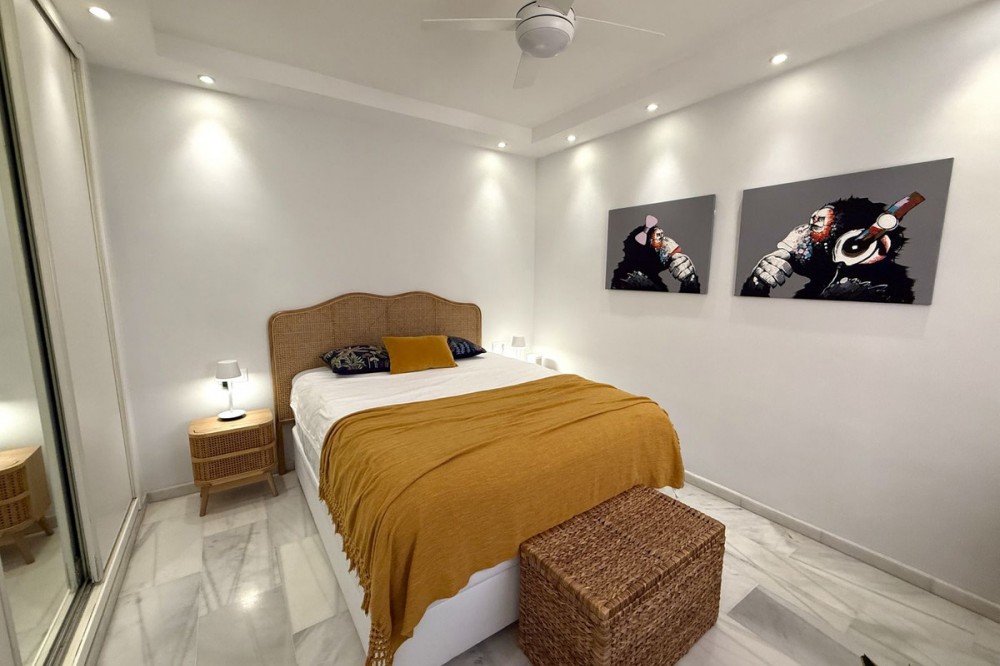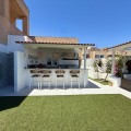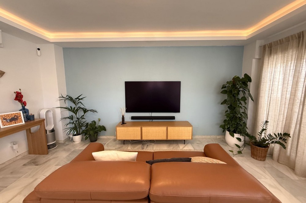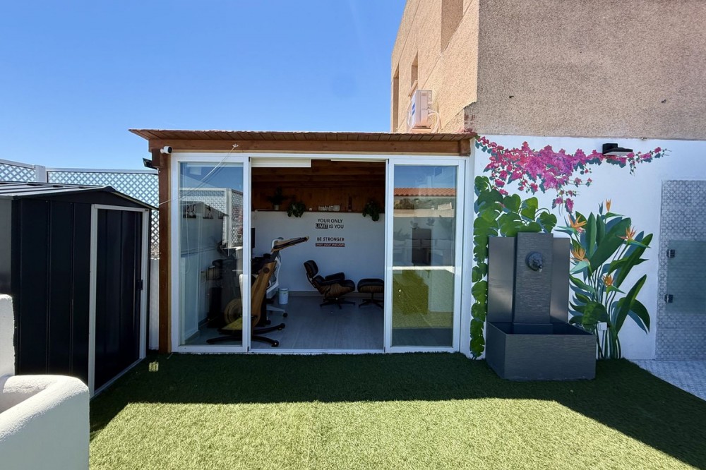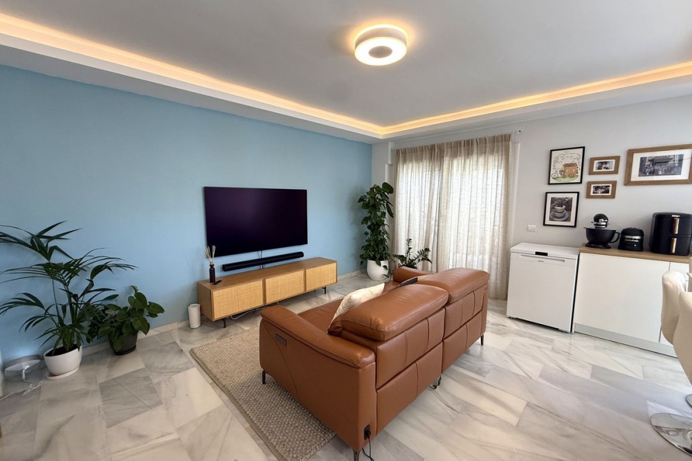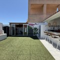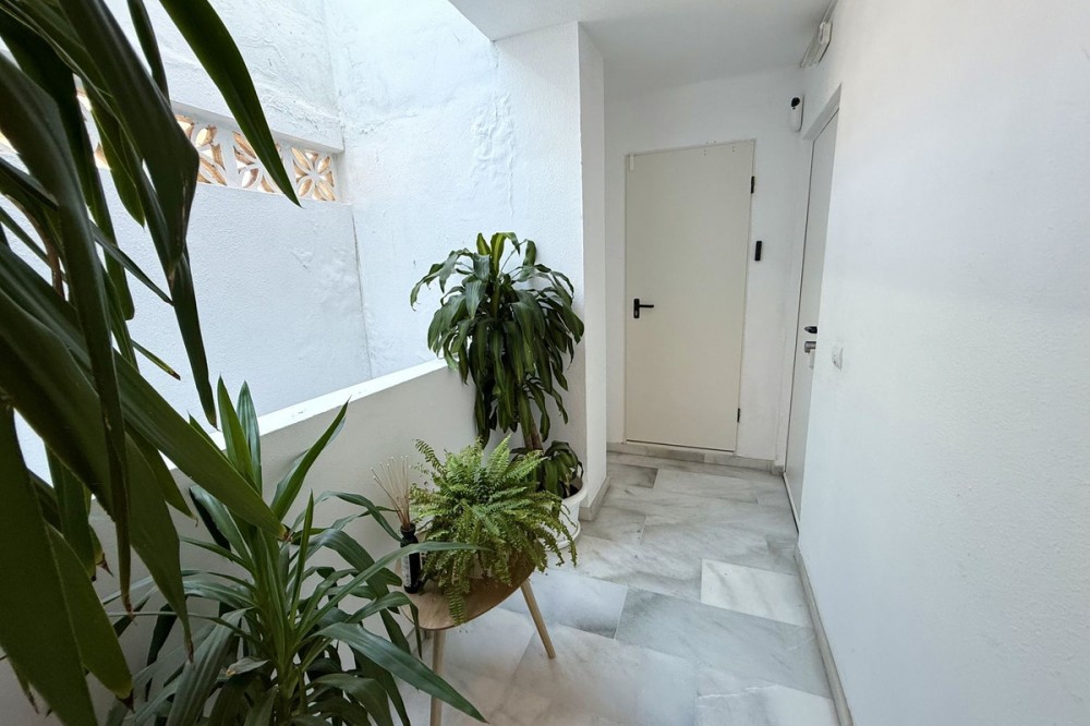 - Penthouse in Central Estepona with 98 m² Terrace, Fully Equipped Outdoor Kitchen, Gym Area & Rental License! Welcome to this stylish and fully renovated penthouse with three bedrooms and two bathrooms, ideally located in the heart of Estepona – just a short walk from the charming Old Town, the beach, restaurants, and shops. The apartment features a bright and open layout between the kitchen and living area, with tasteful materials and modern finishes throughout. All bedrooms include built-in wardrobes and air conditioning. An elevator provides direct access from the garage to the top floor, where the property comes with a double parking space for two cars. The 98 m² terrace, located on the same level as the apartment, extends the living space outdoors. It includes a fully equipped outdoor kitchen with barbecue, sink, and fridge, a dining area for six, a bar section, outdoor shower, and even a private gym. Part of the terrace is enclosed in glass and currently used as a home office with AC – which can also serve perfectly as an extra guest room. The property holds a valid tourist rental license, making it an excellent choice as a permanent residence, holiday home, or investment with high rental potential. Contact us to schedule a viewing and experience the best of Estepona from above!