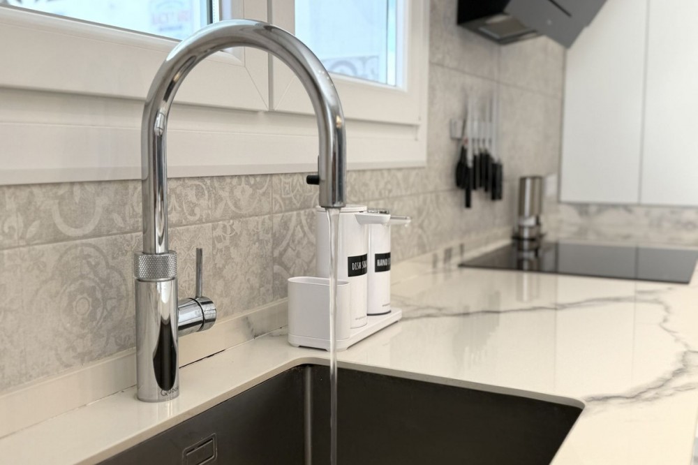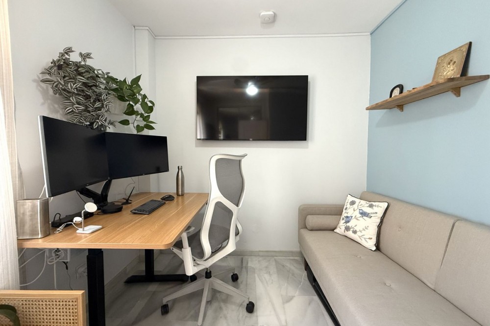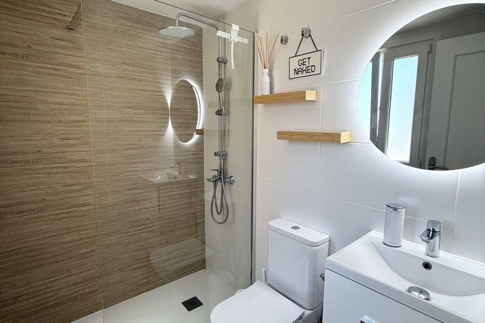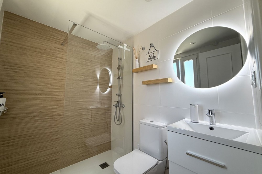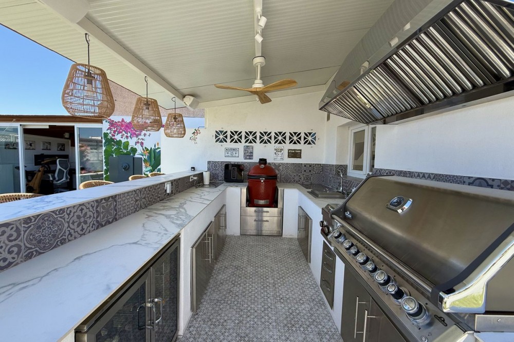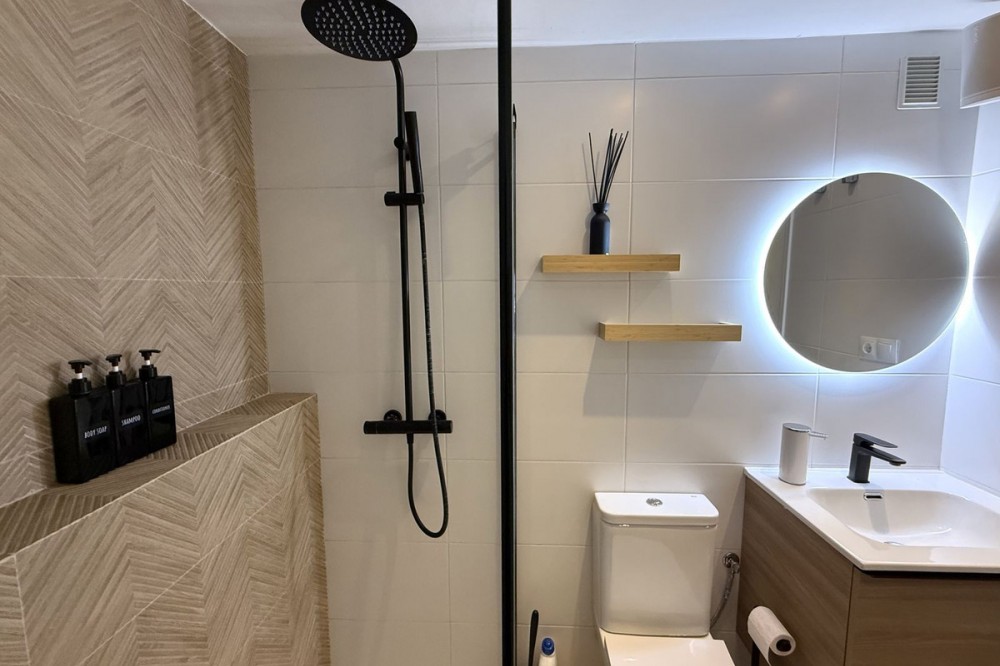 - Penthouse in Central Estepona with 98 m² Terrace, Fully Equipped Outdoor Kitchen, Gym Area & Rental License! Welcome to this stylish and fully renovated penthouse with three bedrooms and two bathrooms, ideally located in the heart of Estepona – just a short walk from the charming Old Town, the beach, restaurants, and shops. The apartment features a bright and open layout between the kitchen and living area, with tasteful materials and modern finishes throughout. All bedrooms include built-in wardrobes and air conditioning. An elevator provides direct access from the garage to the top floor, where the property comes with a double parking space for two cars. The 98 m² terrace, located on the same level as the apartment, extends the living space outdoors. It includes a fully equipped outdoor kitchen with barbecue, sink, and fridge, a dining area for six, a bar section, outdoor shower, and even a private gym. Part of the terrace is enclosed in glass and currently used as a home office with AC – which can also serve perfectly as an extra guest room. The property holds a valid tourist rental license, making it an excellent choice as a permanent residence, holiday home, or investment with high rental potential. Contact us to schedule a viewing and experience the best of Estepona from above!