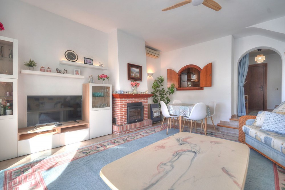 - 3 Bed Semi-Detached Townhouse for Sale in Valle Verde II, Mijas Golf Located in the popular Valle Verde II community in Mijas Golf, this south-west facing, semi-detached end-of-row townhouse offers space, privacy, and views across the golf course and surrounding mountains. With just 40 properties in the complex, residents enjoy a peaceful, well-maintained environment featuring landscaped communal areas, decorative fountains, and a large swimming pool, all within a secure gated setting. The entrance level welcomes you with a hallway leading into a bright and spacious lounge-dining area complete with a fireplace. From here, sliding doors open onto a generous terrace equipped for outdoor living, ideal for dining, entertaining, or enjoying the sunset. This level also includes a large independent kitchen with a serving hatch to the lounge, a guest toilet, and excellent storage. The first floor hosts two bedrooms with built-in wardrobes and two bathrooms, including a main bedroom with an en-suite, dressing area, and private terrace overlooking the golf course. The top floor is dedicated entirely to the master suite, featuring an en-suite bathroom and a private terrace with elevated panoramic views. Additional features include communal parking within the gated complex and convenient access to public transport, with a bus stop located nearby. The property is just 4 km from the beaches and amenities of Fuengirola and approximately 12 minutes by car from the charming seaside village of La Cala de Mijas. This is an ideal home or investment for buyers seeking quality, location, and lifestyle on the Costa del Sol. Summary: Semi-detached end-of-row townhouse in Valle Verde II, Mijas Golf 3 bedrooms and 3.5 bathrooms across three levels South-west facing with golf and mountain views Spacious lounge-diner with fireplace and terrace access Large independent kitchen with serving hatch Multiple private terraces including master suite solarium Gated community of only 40 homes with pool and fountains Close to beaches, Fuengirola, La Cala de Mijas, and public transport