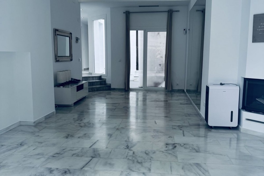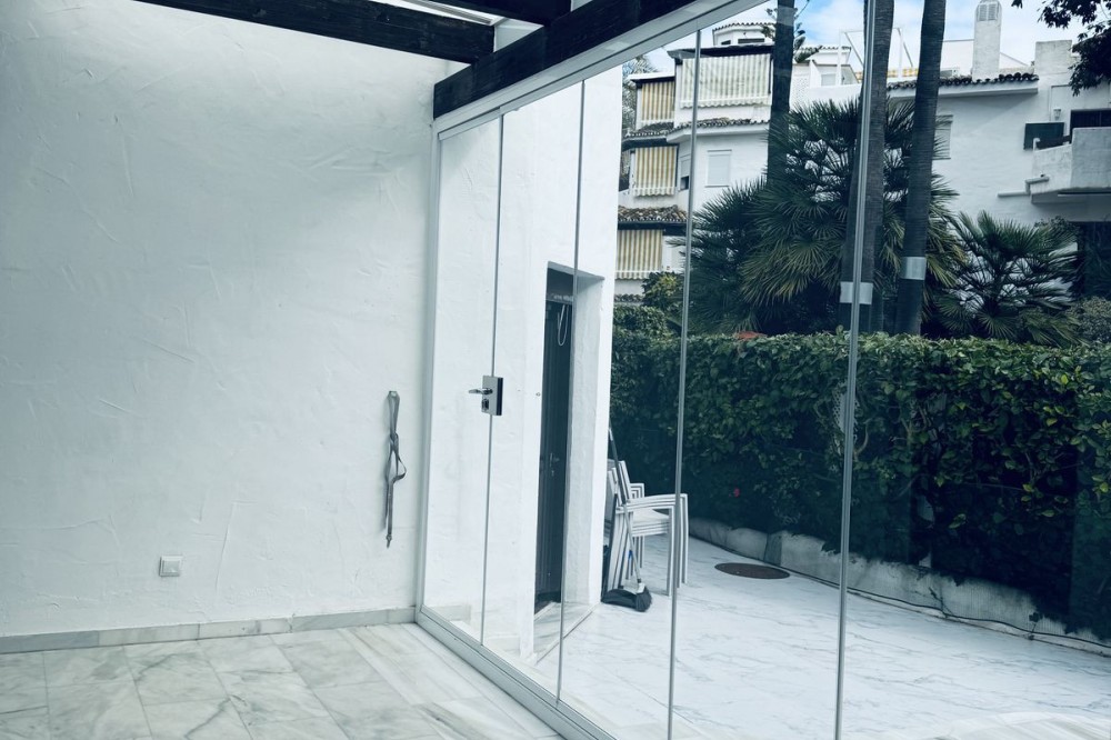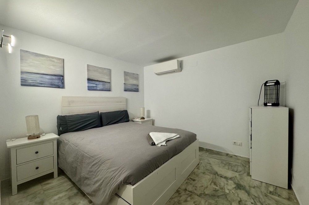 - WONDERFUL APARTMENT LOCATED IN A BEACHFRONT DEVELOPMENT, FROM THE GARDEN GATE, ABOUT 50 METERS AWAY, YOU HAVE ACCESS TO ONE OF THE BEST BEACHES IN MARBELLA. Located in a secure tropical complex with three swimming pools, including a children's pool, and gardens with streams and fountains. The interior layout consists of a foyer, hall, hallway, kitchen/dining room, living room, a very spacious bedroom with a sitting/rest area (previously two bedrooms), two bathrooms, and a toilet. On the same ground floor, accessed through another entrance, there is a small living room with an open kitchen, a bedroom, and a bathroom. ON THE UPPER FLOOR there is a bedroom, a dressing room, and a bathroom, connected to the main floor by an internal staircase. Currently, the property has the peculiarity of being divided into three apartments, as it has separate doors for each one. This is because it has a tourist license, and due to its excellent location, it is perfect for renting out as separate apartments. High profitability proven in vacation rentals. Likewise, if you are thinking of making it your primary residence, it is also ready for that. Whether you are looking to invest or disconnect. From the garden gate, you can access a spectacular residential complex with tropical gardens and swimming pools, all very well maintained. 150 m from beach bars and restaurants: Chiringuito Las Mimosas, La Plage Casanis, The Beach House, Perla Blanca.100 m from the best restaurants in the area. 700 m from the pharmacy. 500-800 m from Lidl, Mercadona, Carrefour, and Supercore Express. 2 km from the Santa Clara golf course. 5 km from the center of Marbella. 35 km from Malaga airport.