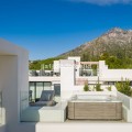 - The ultimate in contemporary Andalusian living. Step into this exceptional 4-bedroom, 4,5-bath residence within the Le Blanc estate, perched on the hillside of Sierra Blanca above Marbella’s Golden Mile. Floating on the horizon, the Mediterranean, Gibraltar and distant North Africa form your ever-changing vista. Feel the light flood through full-height glass doors that connect the open-plan living and dining space directly to a broad terrace and garden—ideal for effortless indoor-outdoor living. The designer kitchen, finished in top-tier appliances and materials, is a joy for culinary enthusiasts and entertaining alike. A cinema room, two saunas (steam and infrared), and a lift are some of the standout features that add exceptional comfort and luxury to the home. Retreat to the master suite with its dressing room, luxury en-suite and terrace where you wake to the sea. Two further bedrooms share a stylish bathroom; a fourth guest suite offers true flexibility for family or visitors. The basement garage accommodates multiple(2) vehicles and offers ample storage. The crowning jewel: a rooftop solarium designed for leisure and luxury. Picture yourself here—sun loungers, al-fresco dining, a built-in BBQ or outdoor kitchen, Jacuzzi beneath the stars, all while soaking in uninterrupted sea-to-mountain views. With refined finishes throughout, under-floor heating, smart home comforts, and the peace of a secure gated community complete with a landscaped pool, this is more than a house—it’s a lifestyle. All just minutes from the beach, Marbella’s fine dining and international schools.