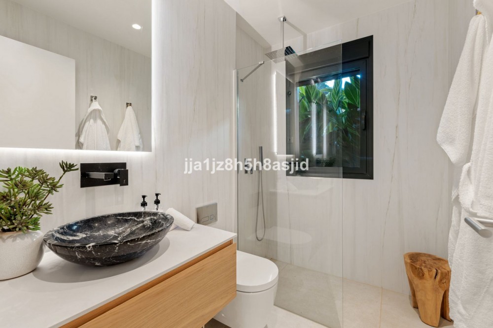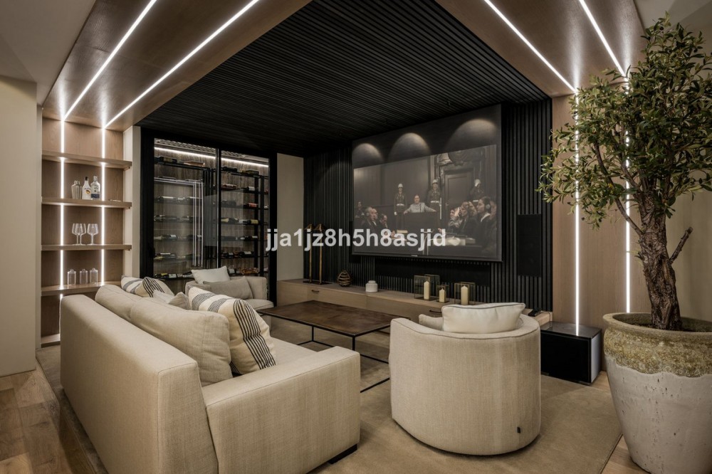 - The ultimate in contemporary Andalusian living. Step into this exceptional 4-bedroom, 4,5-bath residence within the Le Blanc estate, perched on the hillside of Sierra Blanca above Marbella’s Golden Mile. Floating on the horizon, the Mediterranean, Gibraltar and distant North Africa form your ever-changing vista. Feel the light flood through full-height glass doors that connect the open-plan living and dining space directly to a broad terrace and garden—ideal for effortless indoor-outdoor living. The designer kitchen, finished in top-tier appliances and materials, is a joy for culinary enthusiasts and entertaining alike. A cinema room, two saunas (steam and infrared), and a lift are some of the standout features that add exceptional comfort and luxury to the home. Retreat to the master suite with its dressing room, luxury en-suite and terrace where you wake to the sea. Two further bedrooms share a stylish bathroom; a fourth guest suite offers true flexibility for family or visitors. The basement garage accommodates multiple(2) vehicles and offers ample storage. The crowning jewel: a rooftop solarium designed for leisure and luxury. Picture yourself here—sun loungers, al-fresco dining, a built-in BBQ or outdoor kitchen, Jacuzzi beneath the stars, all while soaking in uninterrupted sea-to-mountain views. With refined finishes throughout, under-floor heating, smart home comforts, and the peace of a secure gated community complete with a landscaped pool, this is more than a house—it’s a lifestyle. All just minutes from the beach, Marbella’s fine dining and international schools.