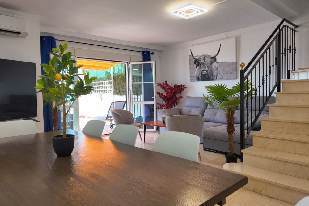 - BEACHFRONT LIVING ON THE COSTA DEL SOL Discover this stunning frontline beach property, offering the perfect combination of comfort, style, and an unbeatable location. With four spacious bedrooms, this exceptionally bright home is ideal both as a permanent residence and as a high-yield rental investment. The property features a large private terrace, fully furnished for relaxing and enjoying the breathtaking sea views, allowing you to embrace the Mediterranean lifestyle to the fullest. Inside, the apartment boasts a modern, newly renovated kitchen, stylish contemporary furniture, and air conditioning throughout, ensuring year-round comfort. The property also includes a generous private parking space of 60 m², a rare and highly valuable feature for a beachfront home. Set within a well-maintained community, residents enjoy communal gardens, a large adult swimming pool, and a separate children’s pool, creating a true resort-style environment. The apartment is within walking distance to the beach, shops, restaurants, and all amenities, making everyday life easy and car-free. A key highlight is that rental licenses are already in place, making this a turnkey investment with immediate rental potential. Bright, peaceful, and perfectly located, this beachfront property offers a rare opportunity to own a true seaside oasis on the Costa del Sol. Townhouse, Benalmadena, Costa del Sol. 4 Bedrooms, 2.5 Bathrooms, Built 154 m². Setting : Beachfront, Town, Beachside, Close To Golf, Close To Port, Close To Shops, Close To Sea, Close To Town, Close To Schools, Close To Marina, Urbanisation, Front Line Beach Complex. Orientation : South. Condition : Excellent. Pool : Communal, Children`s Pool. Climate Control : Air Conditioning, Hot A/C, Cold A/C. Views : Sea, Beach, Garden, Urban, Street. Features : Covered Terrace, Fitted Wardrobes, Near Transport, Private Terrace, Utility Room, Double Glazing. Furniture : Fully Furnished. Kitchen : Fully Fitted. Garden : Communal. Security : Gated Complex, Alarm System. Parking : Underground, Garage, Covered. Utilities : Electricity. Category : Beachfront, Holiday Homes, Investment.