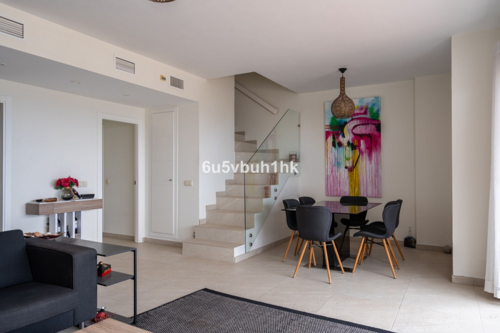 - Located in the highly sought-after Las Lagunas area of Mijas Costa, on the border of Fuengirola, this bright duplex penthouse with sea views offers an excellent combination of space, comfort, and everyday convenience. All amenities are within easy reach, while Fuengirola’s beaches and lively promenade are just a pleasant 10–15 minute walk away. The property offers approximately 91 m² built, distributed over two well-planned levels that provide both privacy and functionality. The lower level (approx. 65 m²) features a bright living and dining area, a separate fully equipped kitchen, one bedroom, and a bathroom. From the living area, direct access leads to a spacious 33 m² terrace, ideal for outdoor dining, relaxing afternoons, and enjoying the Mediterranean lifestyle year-round. The upper level (approx. 26 m²) is dedicated to the master bedroom with en-suite bathroom, opening onto a private 11 m² balcony — a perfect spot to enjoy open views and beautiful sunsets. The well-maintained community offers excellent facilities, including: 3 swimming pools 2 saunas Gym Good security The property also includes: Parking spaces for two cars Large private storage room With its panoramic sea views, generous outdoor spaces, high-quality communal facilities, and prime location close to beaches, shops, and transport links, this duplex penthouse is an excellent choice for comfortable everyday living, enjoyable holidays, or a solid investment on the Costa del Sol.