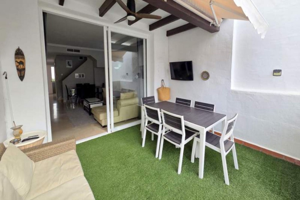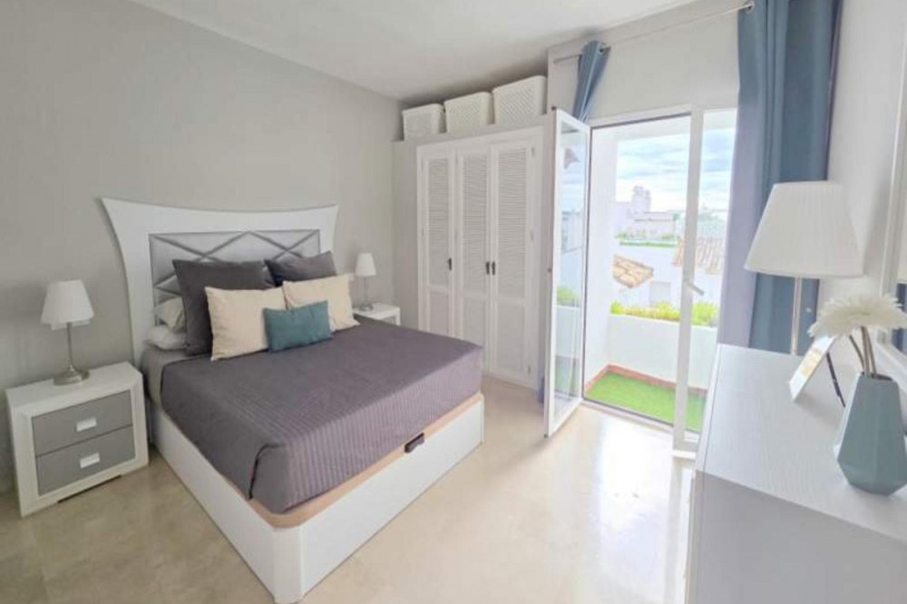 - ***Stunning Duplex Penthouse in Fuentes de la Duquesa*** Located in the highly sought-after Fuentes de la Duquesa, this beautifully presented 2-bedroom, 2-bathroom duplex penthouse offers the perfect blend of privacy, sunshine, and coastal living. Located just a short stroll from the lively Duquesa square with its selection of bars and eateries, and only 15 minutes on foot to the vibrant Duquesa Marina, this home is ideally positioned to enjoy the best of both worlds. The entrance leads to a spacious, well-appointed kitchen with a separate utility room. The open-plan living area is bright and inviting, with patio doors leading out to a southeast-facing terrace, offering tranquil views of Duquesa Golf. A stunning marble staircase takes you up to the mid-level, where you'll find two generously sized bedrooms, each with built-in wardrobes and private balconettes. The master suite boasts a beautifully refurbished en-suite bathroom with a sleek walk-in shower, while the family bathroom is stylishly designed to complement the space. Continue upstairs to the exceptional roof terrace—an entertainer’s dream—with panoramic views that stretch across the coastline, creating the ultimate spot to unwind and enjoy the Mediterranean lifestyle. The property is being sold partially furnished, with the added benefit of secure, gated communal parking. This is an opportunity not to be missed for those looking to embrace the charm of this vibrant part of the coast. Come see for yourself and discover your perfect retreat in Duquesa!