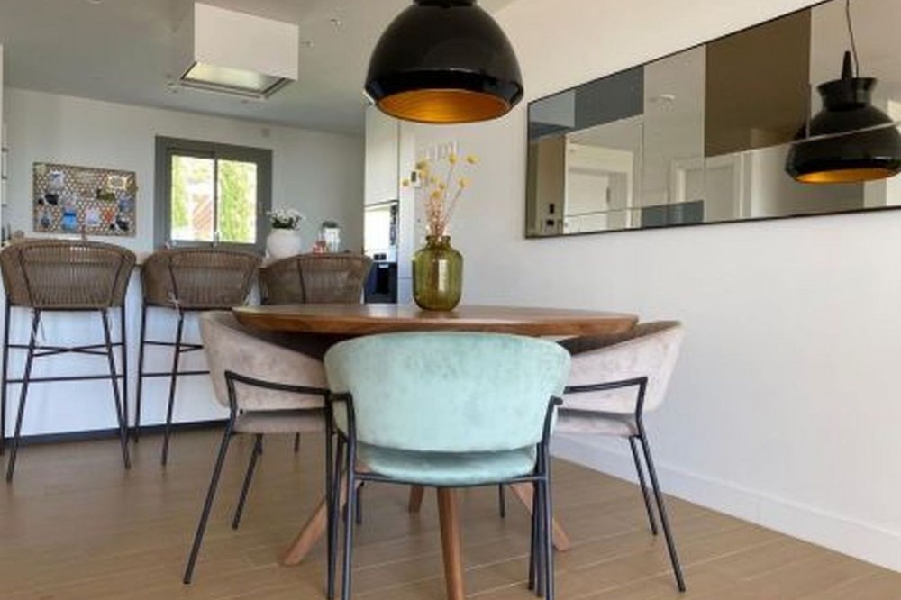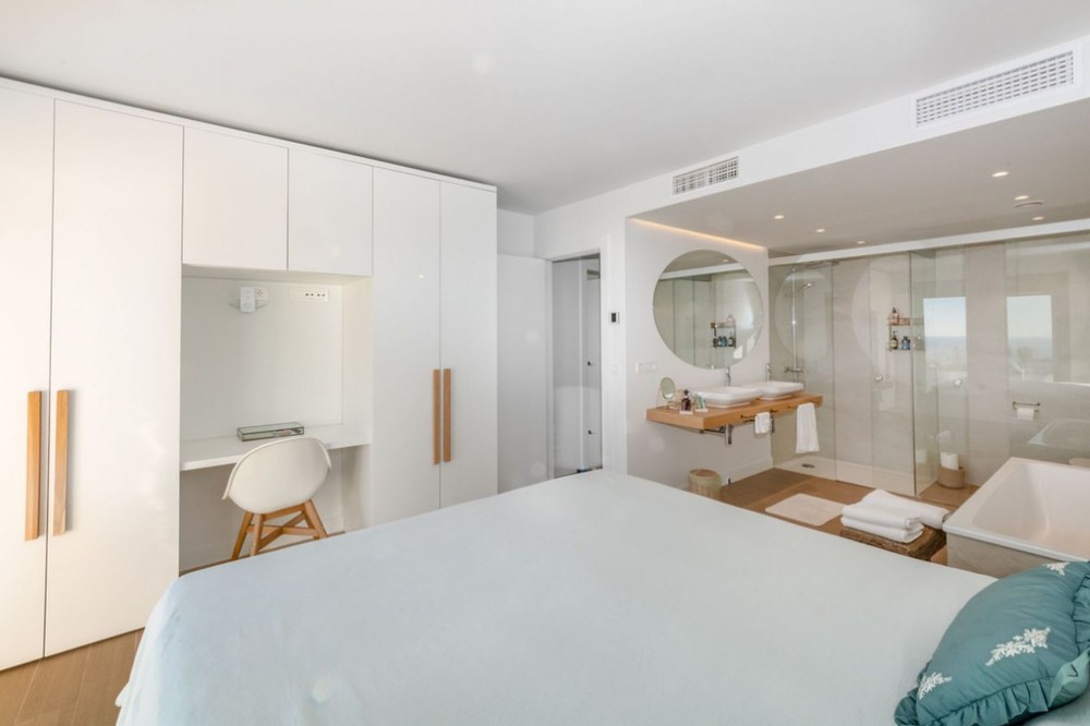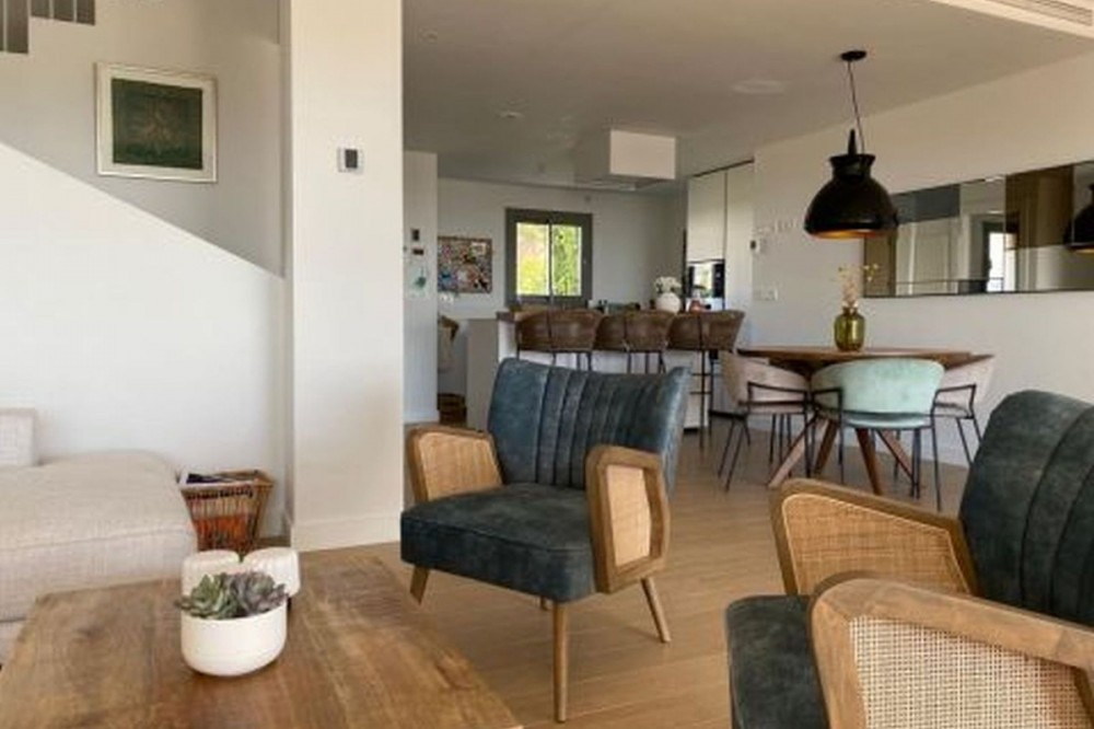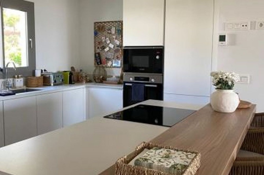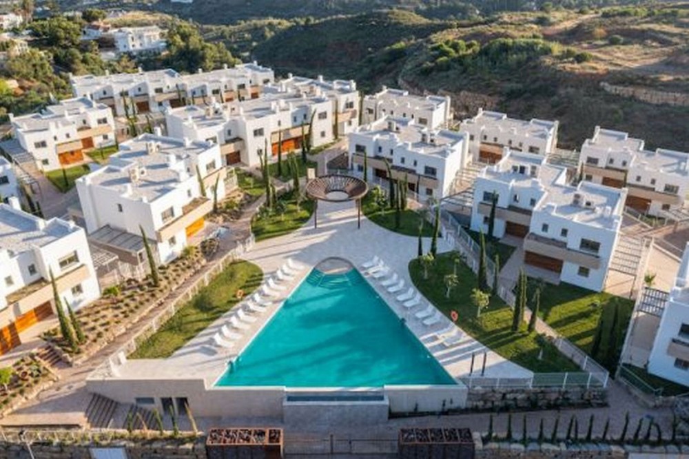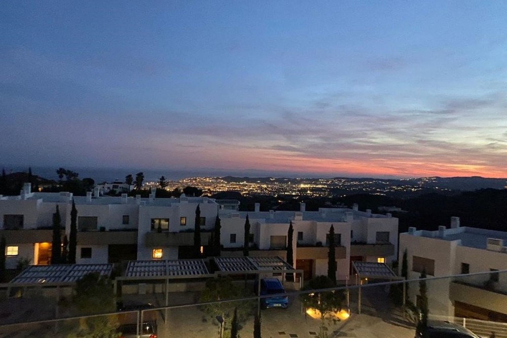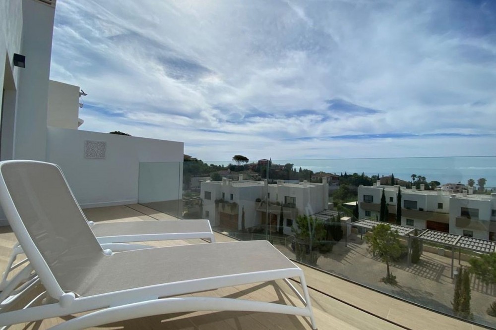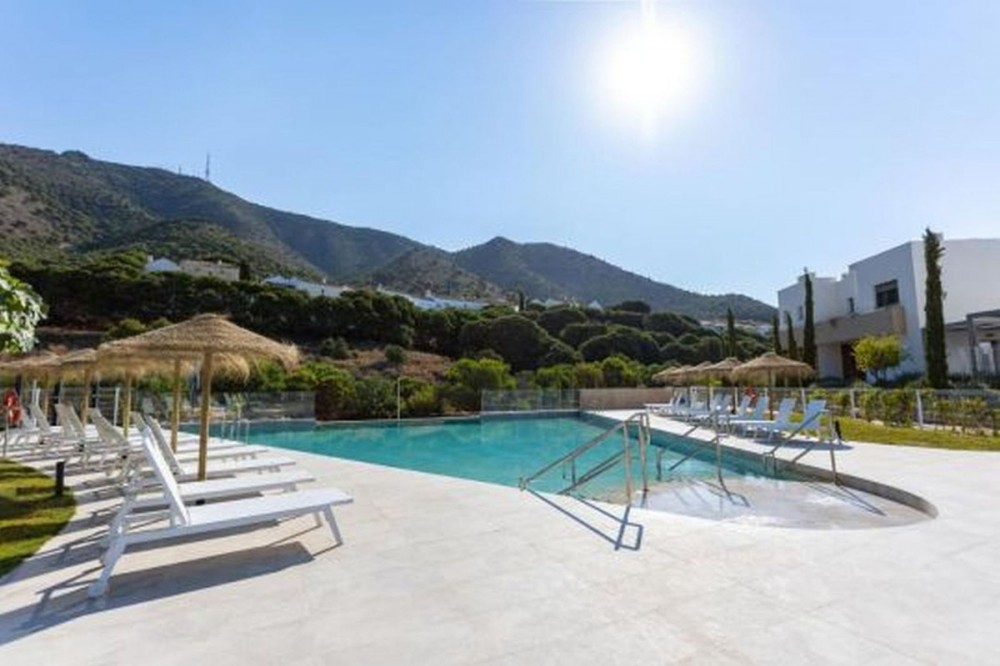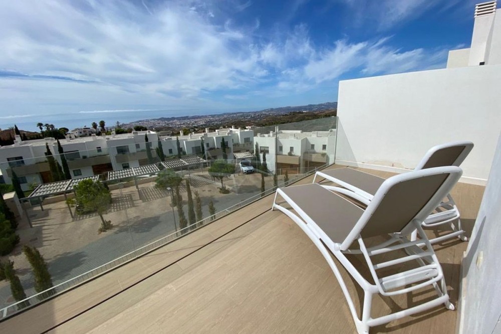 - Stunning modern townhouse built in 2021, located in the exclusive Nature Collection Homes development (Higueron). With 202 m² of interior space and 75 m² of terraces, the property stands out for its modern design and high-quality finishes. From every corner, you'll enjoy spectacular views encompassing nature, the sea, and the mountains, creating an ideal environment to relax and enjoy life. The main floor features a spacious living room and an open-plan kitchen, perfect for sharing unforgettable moments with friends and family. The wood-burning fireplace adds a cozy touch to your evenings. The large terrace is the perfect place to enjoy al fresco dining while taking in the breathtaking views. A guest toilet is also located on this floor. Upstairs, you'll find three bedrooms, including a master suite with a private bathroom featuring a shower and bathtub. The other two bedrooms share an additional full bathroom. Two of the bedrooms have access to another large terrace, perfect for soaking up the sun and enjoying the views. The basement offers a spacious garage with room for two vehicles and additional storage space. If you wish, you can personalize this space by adding an extra room, such as a storage room, office, or playroom. The community boasts a beautiful swimming pool and landscaped gardens with fruit trees, creating the perfect setting for enjoying the outdoors. With monthly community fees of just €165, this property is a unique opportunity to live in a privileged location, just minutes from the charming towns of Benalmádena, Mijas, and Fuengirola. Don't miss this opportunity and come visit your future home!